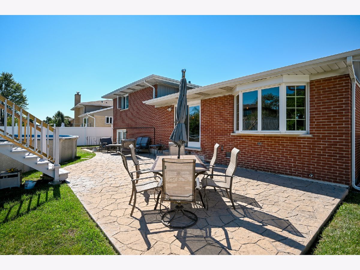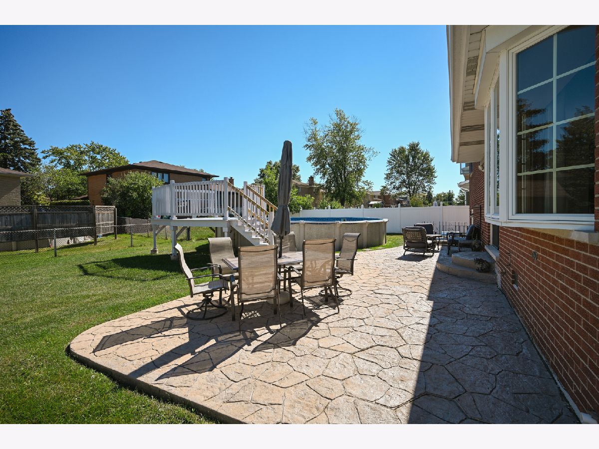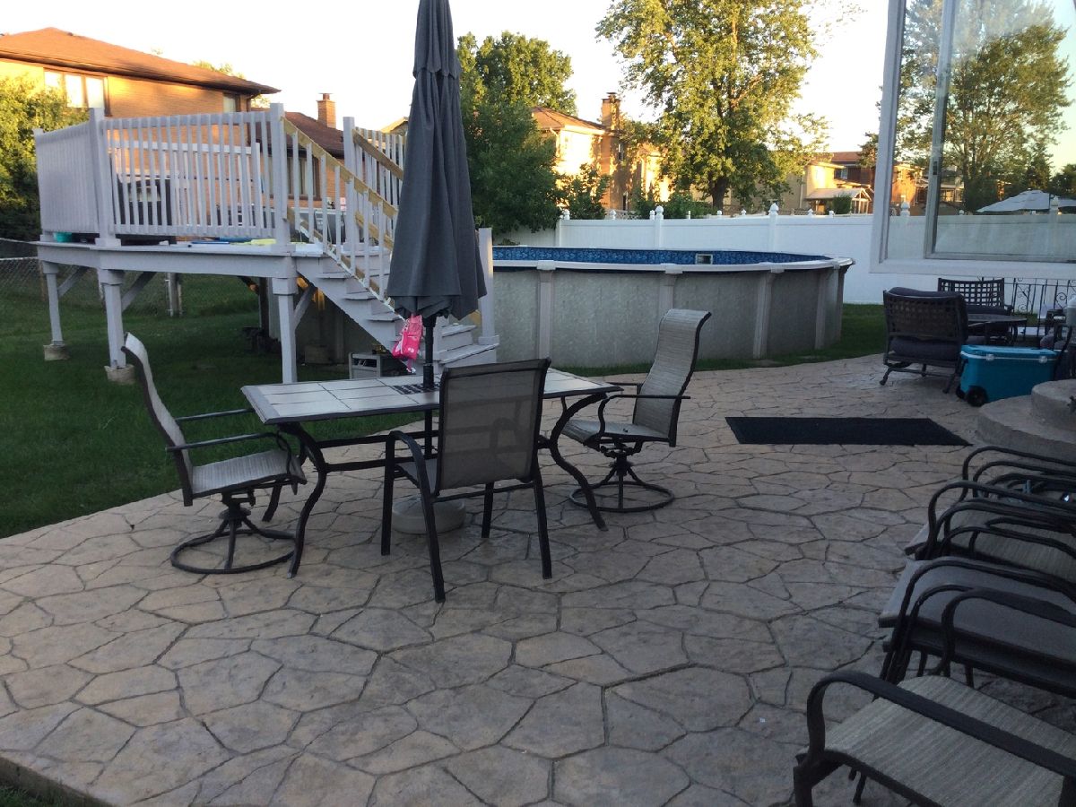 | Patio, Stamped Concrete Patio, Above Ground Pool | |