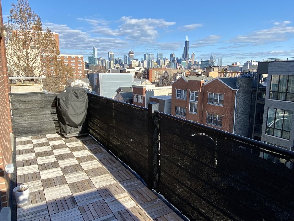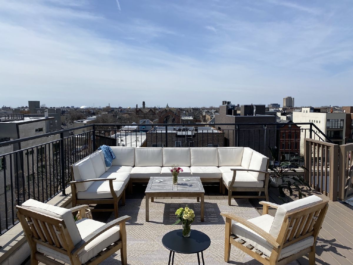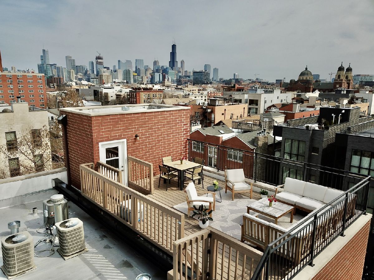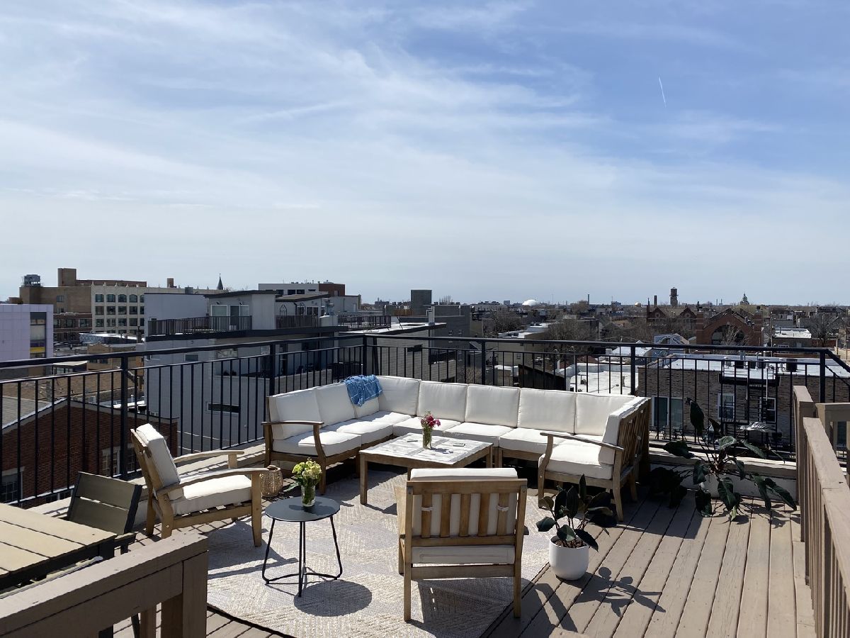 BEAUTIFUL PENTHOUSE unit with PRIVATE ROOFTOP DECK! This spacious open concept living and extra-wide 2-bed/2-bath layout featuring completely renovated custom bathrooms and newly refinished hardwood floors throughout. Huge light-filled open kitchen with granite counter tops, breakfast bar, stainless-steel appliances, and abundant cabinet storage. Adjoining extra-large living room features cozy gas fireplace, Juliette balcony, and ample space for your formal separate dining area. Large master suite contains two professionally organized closet systems. Luxurious ensuite bathroom features dual vanities, glass-enclosed shower, and separate Jacuzzi tub. Unit features large rear balcony with access from the master bedroom or the back hallway spanning the entire sun-filled southern exposure, providing rare and gorgeous panoramic views of the Chicago skyline. Unit has PRIVATE ACCESS TO ROOFTOP space that has recently been finished with wrought iron railing, maintenance free wood decking & stairs to the flat surface (great for bags game set - includes storage shed to keep all your cushions & toys in) ..... providing even more outdoor entertaining space to lounge and dine with stunning 360 degree city views. Dedicated attached 1 car garage spot, additional exterior driveway for a second tandem car parking space, and interior private closet storage unit with floor to ceiling shelving. Close to West Town and Division Ave amenities, Blue Line, and highway access!! **MOTIVATED SELLER**