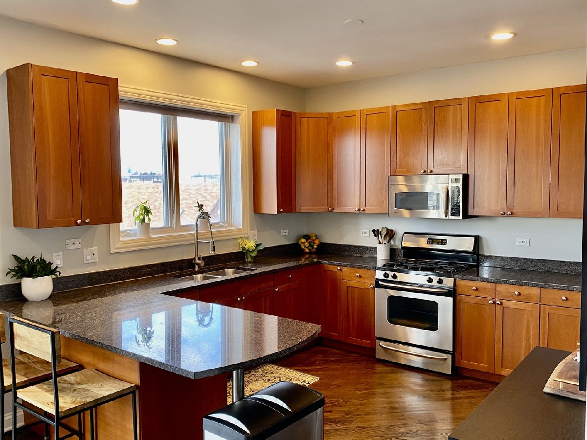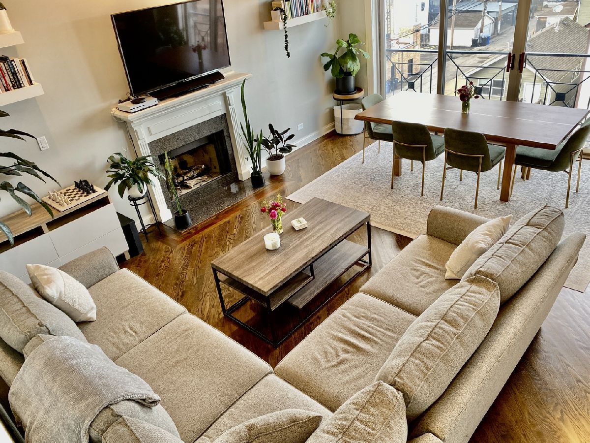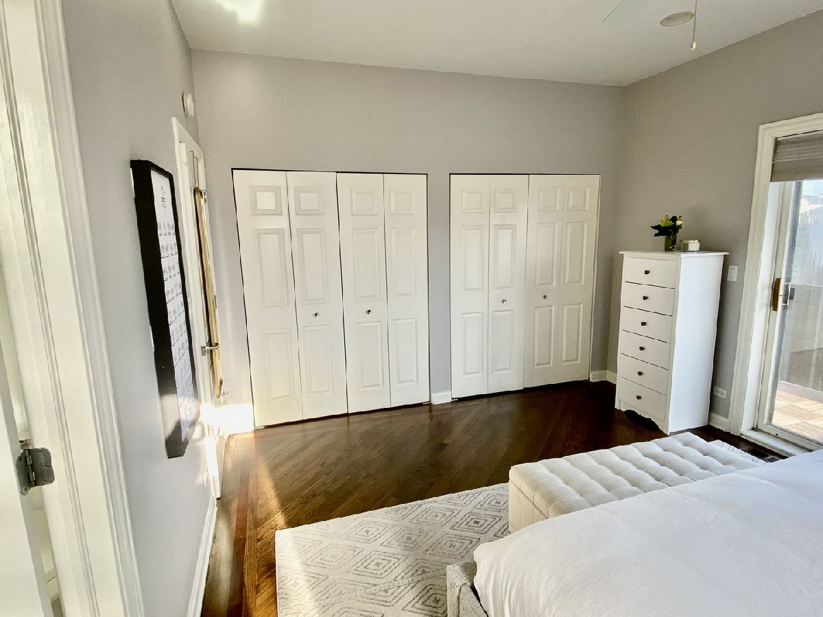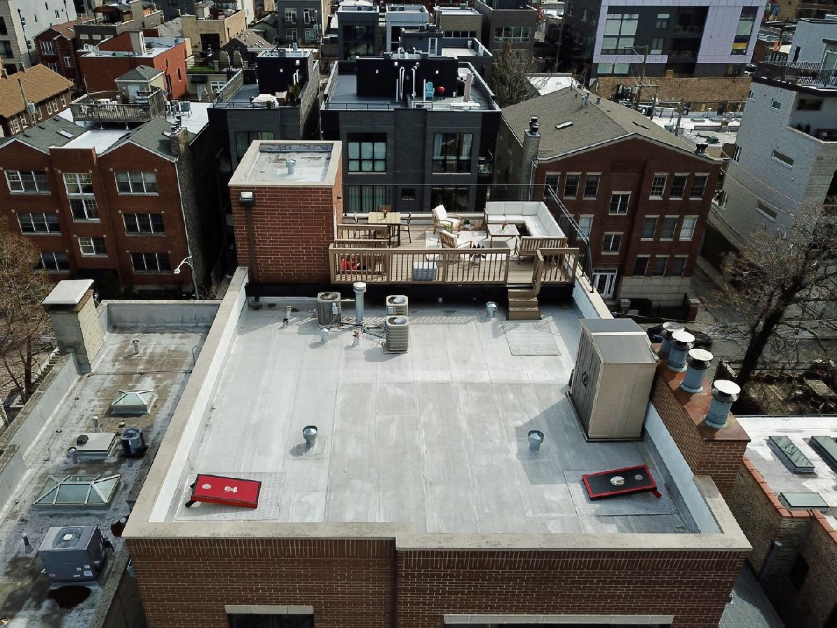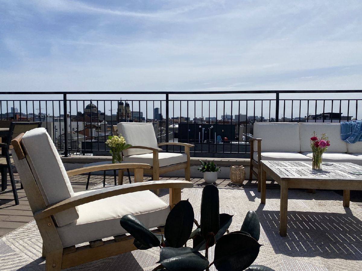 BEAUTIFUL PENTHOUSE unit with PRIVATE ROOFTOP DECK! This spacious open concept living and extra-wide 2-bed/2-bath layout featuring completely renovated custom bathrooms and newly refinished hardwood floors throughout. Huge light-filled open kitchen with granite counter tops, breakfast bar, stainless-steel appliances, and abundant cabinet storage. Adjoining extra-large living room features cozy gas fireplace, Juliette balcony, and ample space for your formal separate dining area. Large master suite contains two professionally organized closet systems. Luxurious ensuite bathroom features dual vanities, glass-enclosed shower, and separate Jacuzzi tub. Unit features large rear balcony with access from the master bedroom or the back hallway spanning the entire sun-filled southern exposure, providing rare and gorgeous panoramic views of the Chicago skyline. Unit has PRIVATE ACCESS TO ROOFTOP space that has recently been finished with wrought iron railing, maintenance free wood decking & stairs to the flat surface (great for bags game set - includes storage shed to keep all your cushions & toys in) ..... providing even more outdoor entertaining space to lounge and dine with stunning 360 degree city views. Dedicated attached 1 car garage spot, additional exterior driveway for a second tandem car parking space, and interior private closet storage unit with floor to ceiling shelving. Close to West Town and Division Ave amenities, Blue Line, and highway access!! **MOTIVATED SELLER**