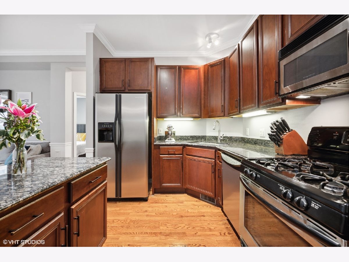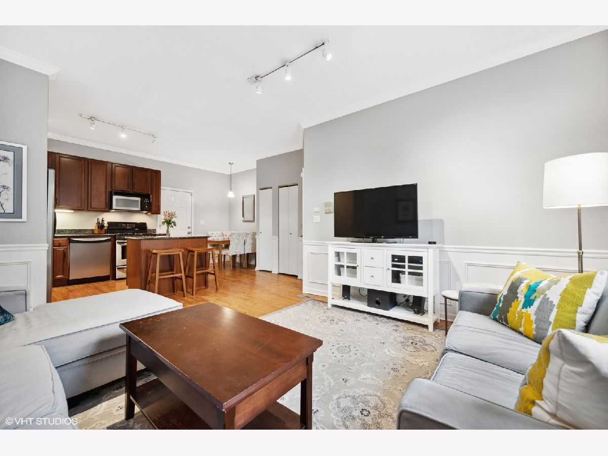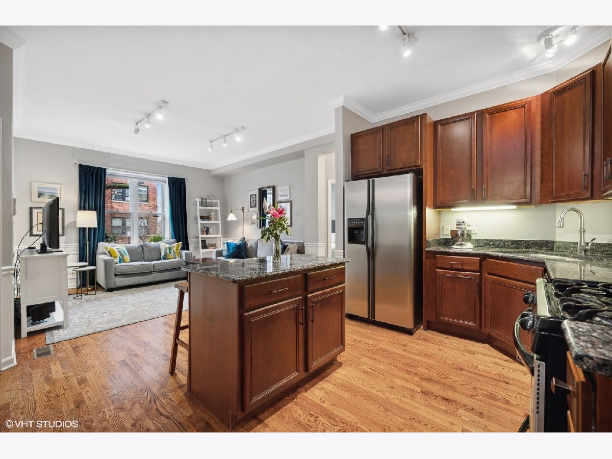 Lovely Lakeview 2 bedroom/1 bath condo steps to Southport Corridor! Enjoy the spacious living room flooded with southern light and open to the kitchen complete with granite countertops, 42 inch cabinets, island for prep and separate dining space. Custom millwork adds elegance to the space! Large oversized bedrooms with great closet space. Bathroom with double vanity, travertine, and in-unit laundry. Hardwood floors throughout the unit. Soak up the summer sun on your own large deck space. Easy street parking. Additional storage. Quick walk to Southport shops and restaurants, The Music Box, The Mercury Theatre, the brown line and Wrigley! Sellers require August close or lease back!