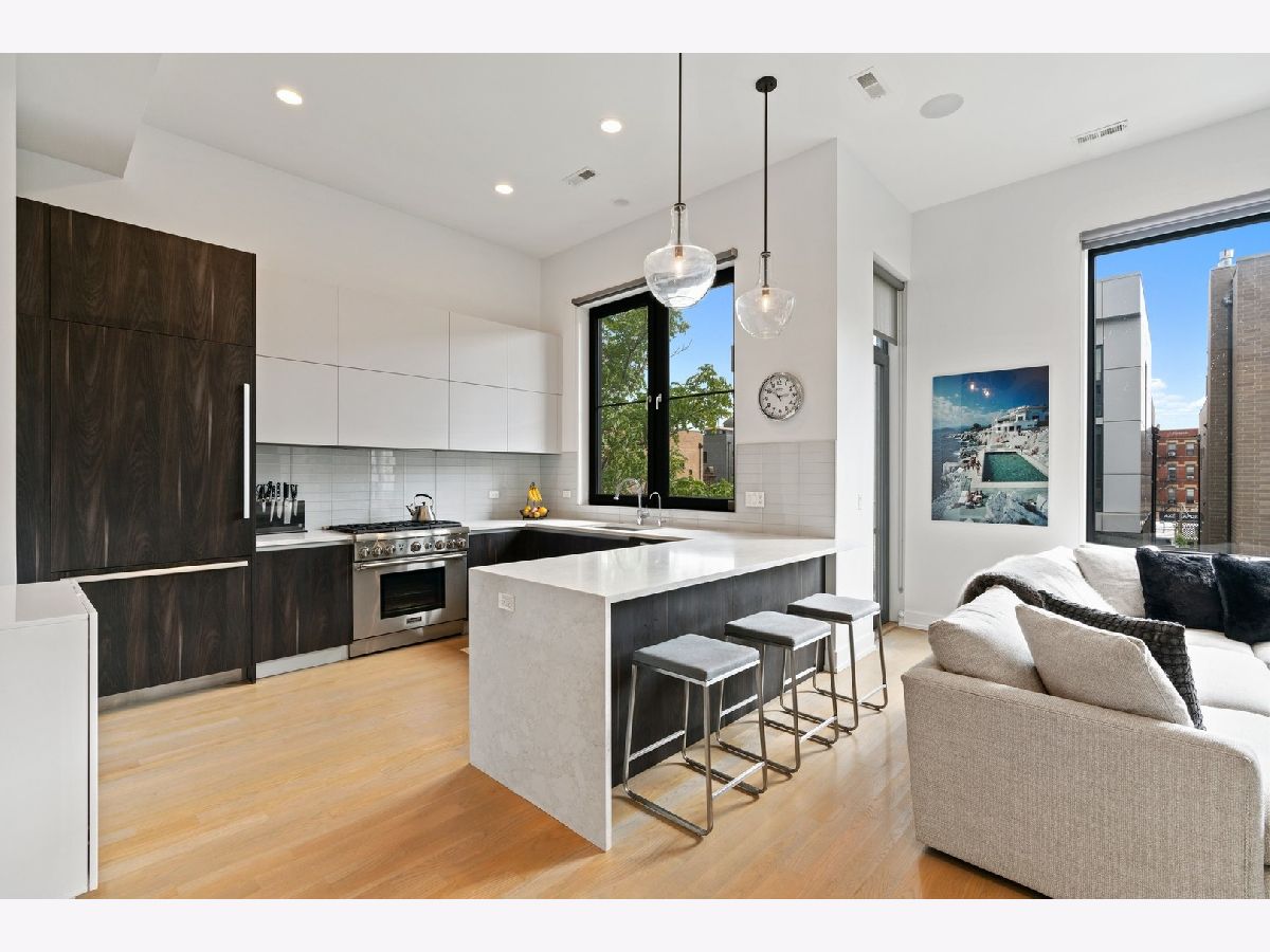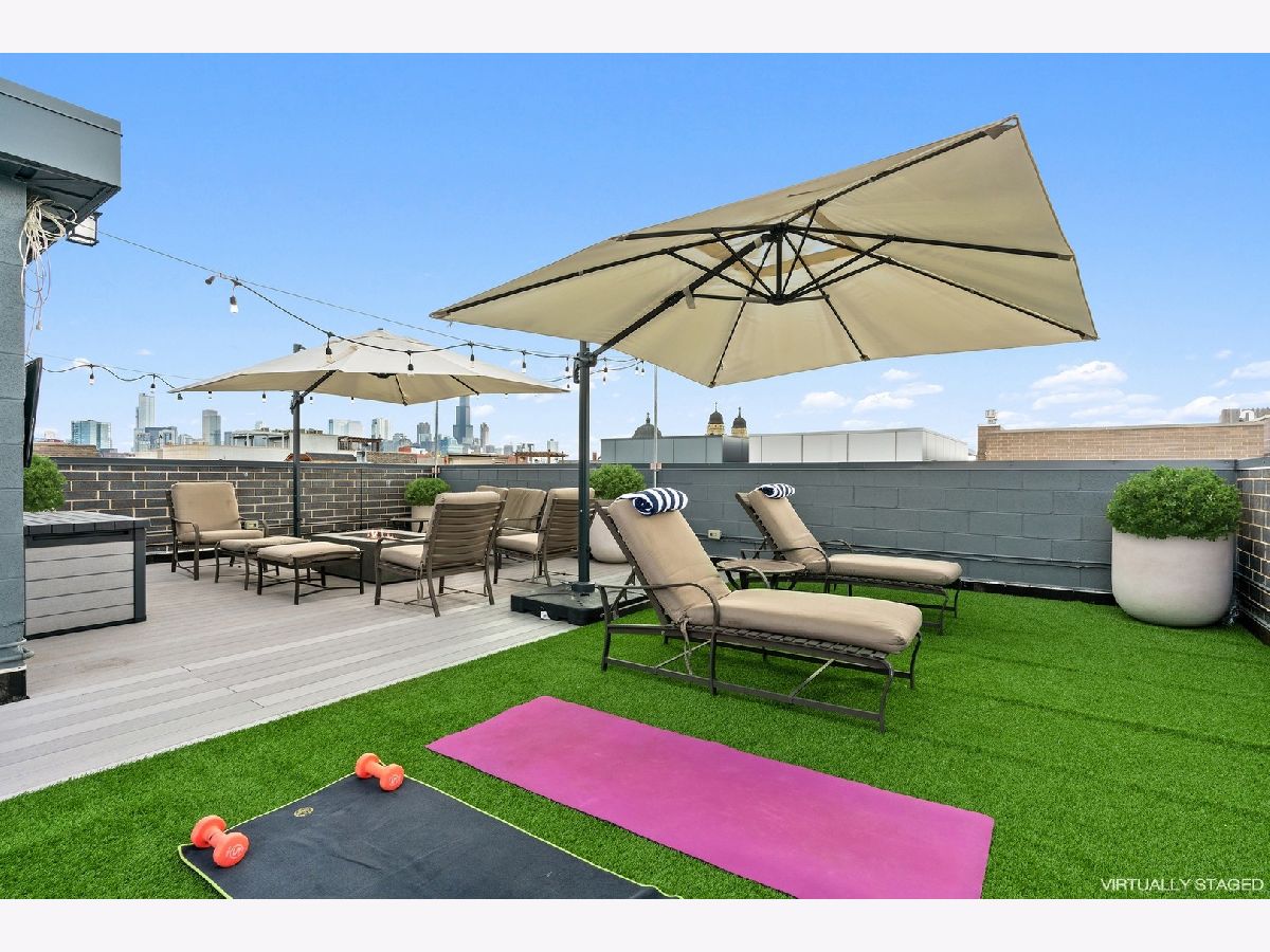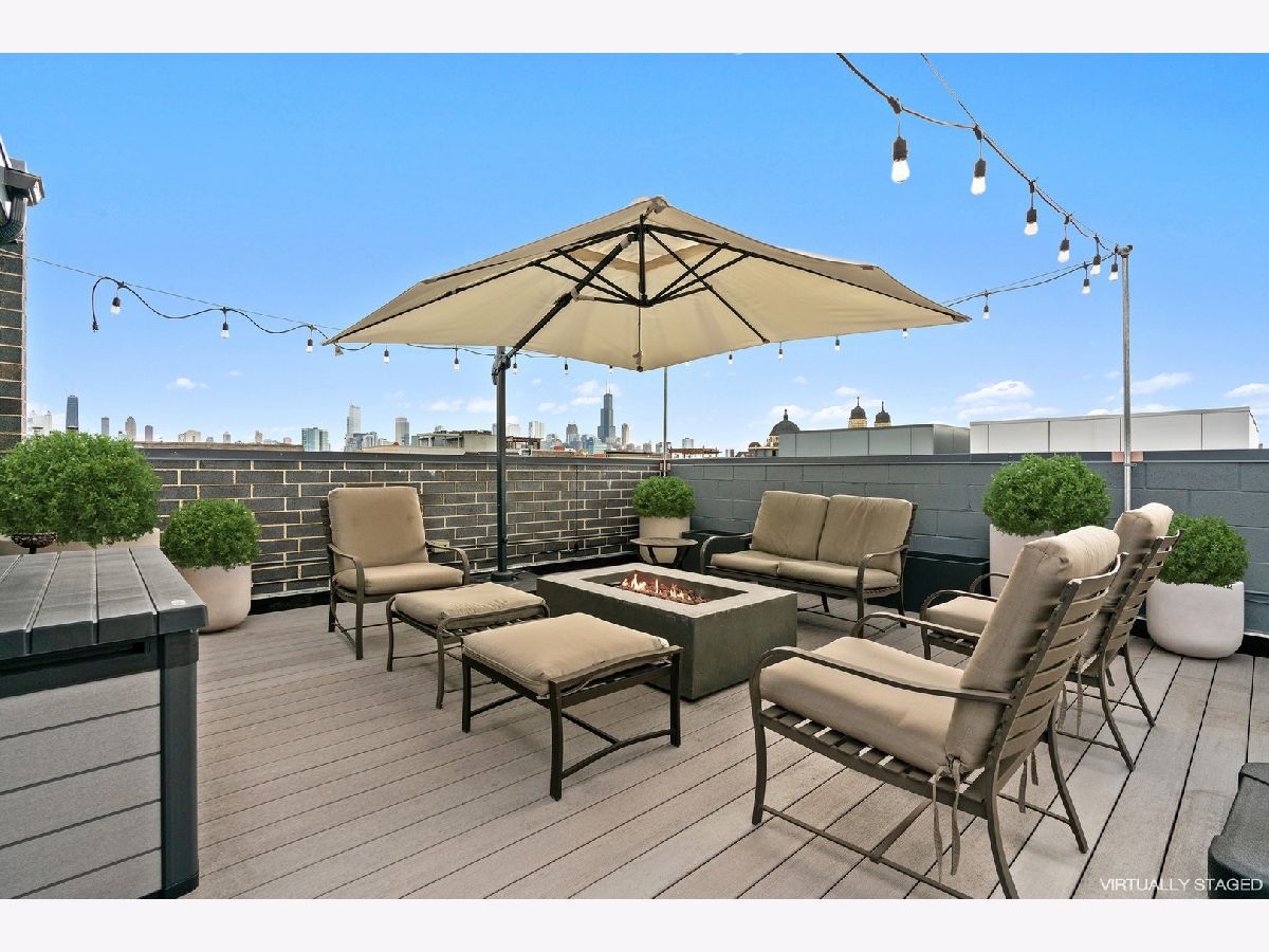 **SOLD BEFORE PRINT**Magazine worthy quality newer construction PENTHOUSE located in the heart of NOBLE SQUARE offers everything your clients are looking for. Stunning highly upgraded sun drenched extra wide modern PENTHOUSE features 30' wide interior, 12' ceilings, contemporary sleek design, hardwood floors throughout, custom staircase, and 3 outdoor spaces including an enormous private ROOFTOP DECK with coveted Chicago Skyline views. Grand living/dining room with floor to ceiling windows. Spectacular chefs kitchen with custom cabinets, quarts waterfall island, Thermador commercial grade appliances and outdoor terrace for convenient bbq grilling. Luxurious primary suite featuring a walk-in closet, outdoor terrace and sumptuous primary bath with steam shower and radiant heated floors. Surround sound and Elan home automation system, Nest thermostats and upgraded Total Connect security system with 4 exterior cameras and 24 hour access to the surveillance. Custom closets, lighting fixtures, and window treatments throughout. Ample storage and side by side washer and dryer. Private ROOFTOP OASIS spans the entire width and length of the building is outfitted with Trex decking, water, gas and TV - ideal for entertaining or relaxing after a hard day at work. Heated garage spot with storage is included. Convenient location walking distance to Eckhart park, Chicago avenue and Division street shops and restaurants, public transportation and 90/94.