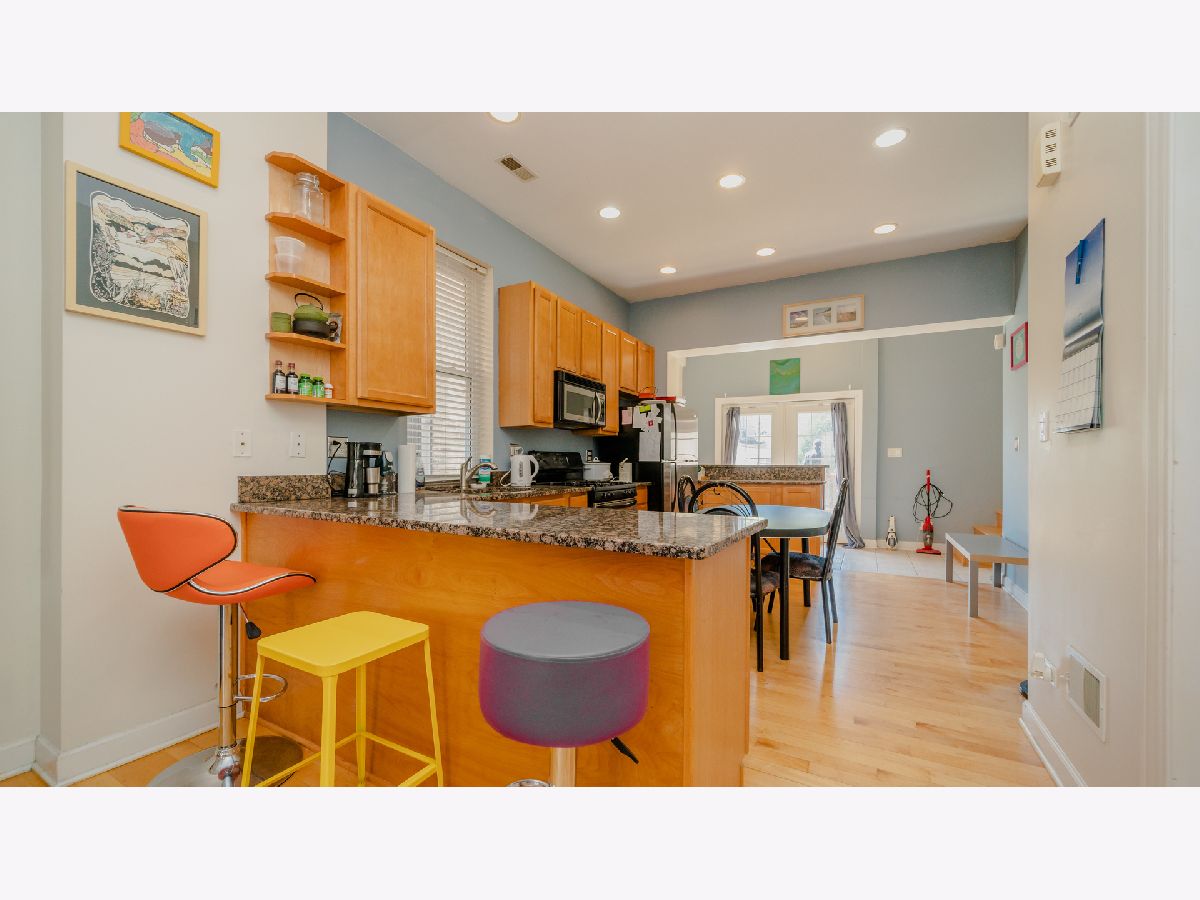 View our virtual 3D tour! Everything you need in this Bright East, West and South-Facing 2 bedroom Home Located on a high first floor in an intimate Self-Managed 3 Unit Association in the Heart of East Humboldt Park just a Short Distance to Bucktown, Wicker Park and Logan Square. Plenty of Living Space in the Living Room/Dining Room which has a Gas Fireplace w/ an Attractive Mantle, Tall Ceilings and Oak Hardwood Floors. Modern Kitchen with Stainless Steel Appliances, Granite Countertops Along with Ample Workspace and Storage Should be Ideal for the Amateur Chef. In-Unit Laundry Room w/ Additional Storage. A Large Private Deck and a Common Backyard with Green Space is Ideal for Entertaining. For you Green Thumbs, there are Garden Plots in the backyard. One Secure and Gated Parking Space is Included. Near the CTA Blue Line, Bus stops, Humboldt Park, 606 Trail, and near all the Boutique Shops, Restaurants and Bars in Humboldt and the Surrounding Neighborhoods.