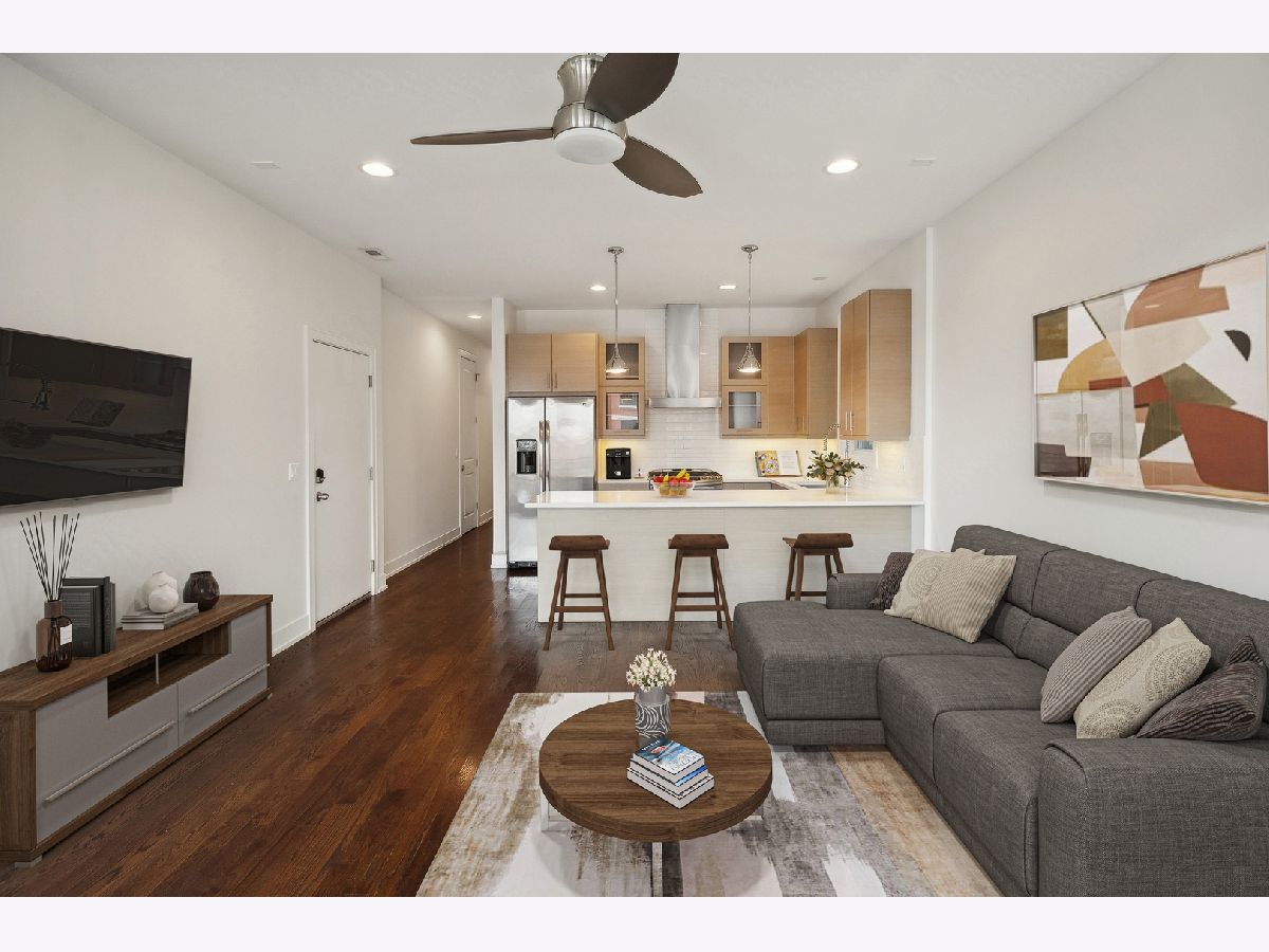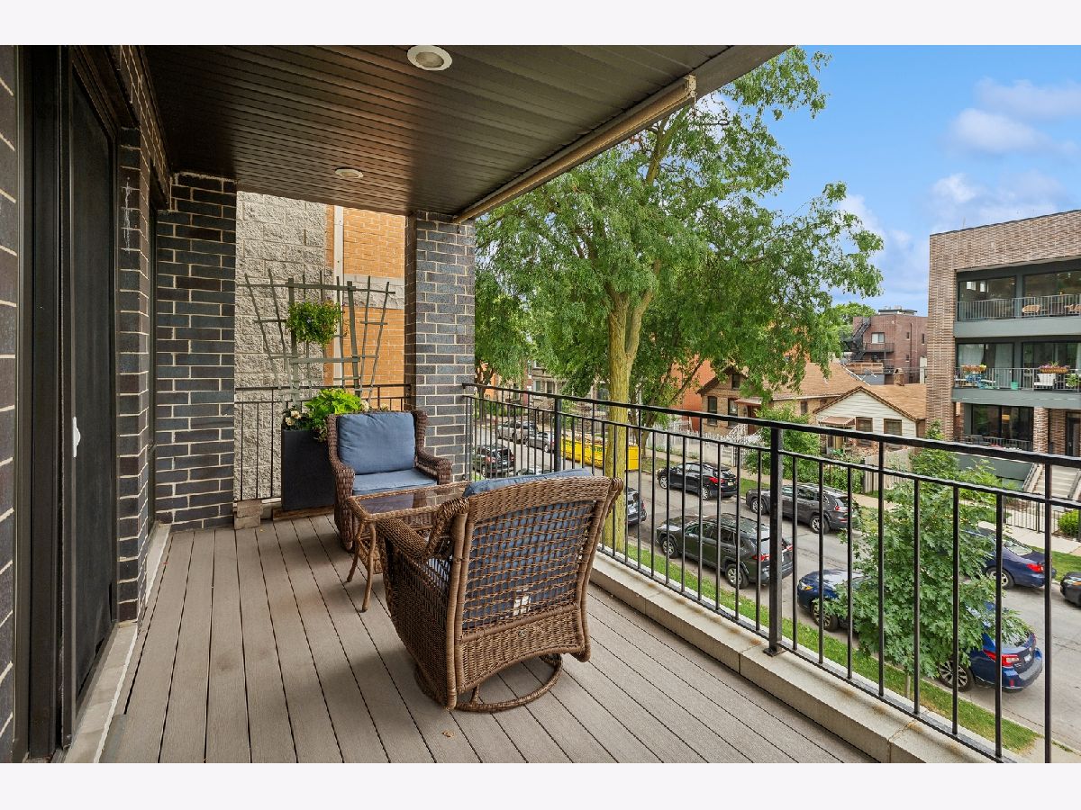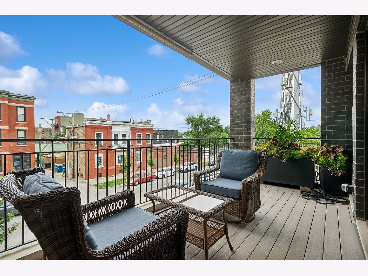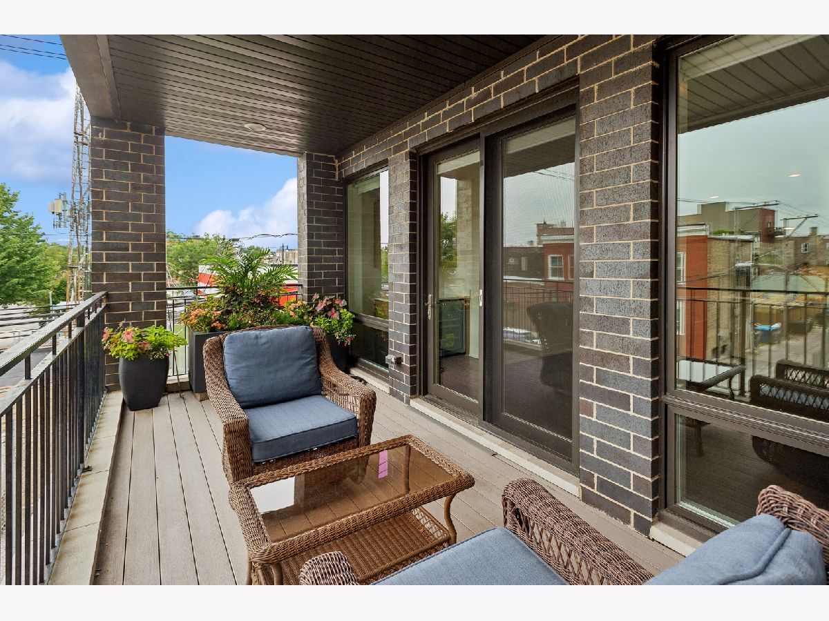 Fabulous 2 bedroom, 2 bathroom condo in excellent location with 2 outdoor spaces! Contemporary style kitchen with custom cabinetry, quartz countertops, stainless-steel appliances, range hood and eat-in breakfast bar with ample space for multiple stool seating. Combo living and dining room offers plenty of space for separate dining table and features additional dry-bar area with new beverage fridge. Floor to ceiling windows lead the way to extra-large front deck (width of unit), ideal for grilling and entertaining. Primary suite has walk-in closet with built-in organizers and spa-like en-suite bath with heated floors, double vanity, and marble walk-in shower equipped with rain showerhead. Great sized 2nd bedroom perfect for guests and work-from-home. Relaxing and deep soaking tub in 2nd bath. Additional rear deck, accessible from hall, for bonus outdoor living. Large storage closet in unit with additional private storage in basement. Full-sized stackable in-unit laundry. Tall ceilings and hardwood floors throughout. One garage parking space included. Centrally located right on cusp of Wicker Park, Bucktown and Humboldt Park neighborhoods makes for highly walkable area to several restaurants, bars, shopping, the 606, public transportation, parks and more!