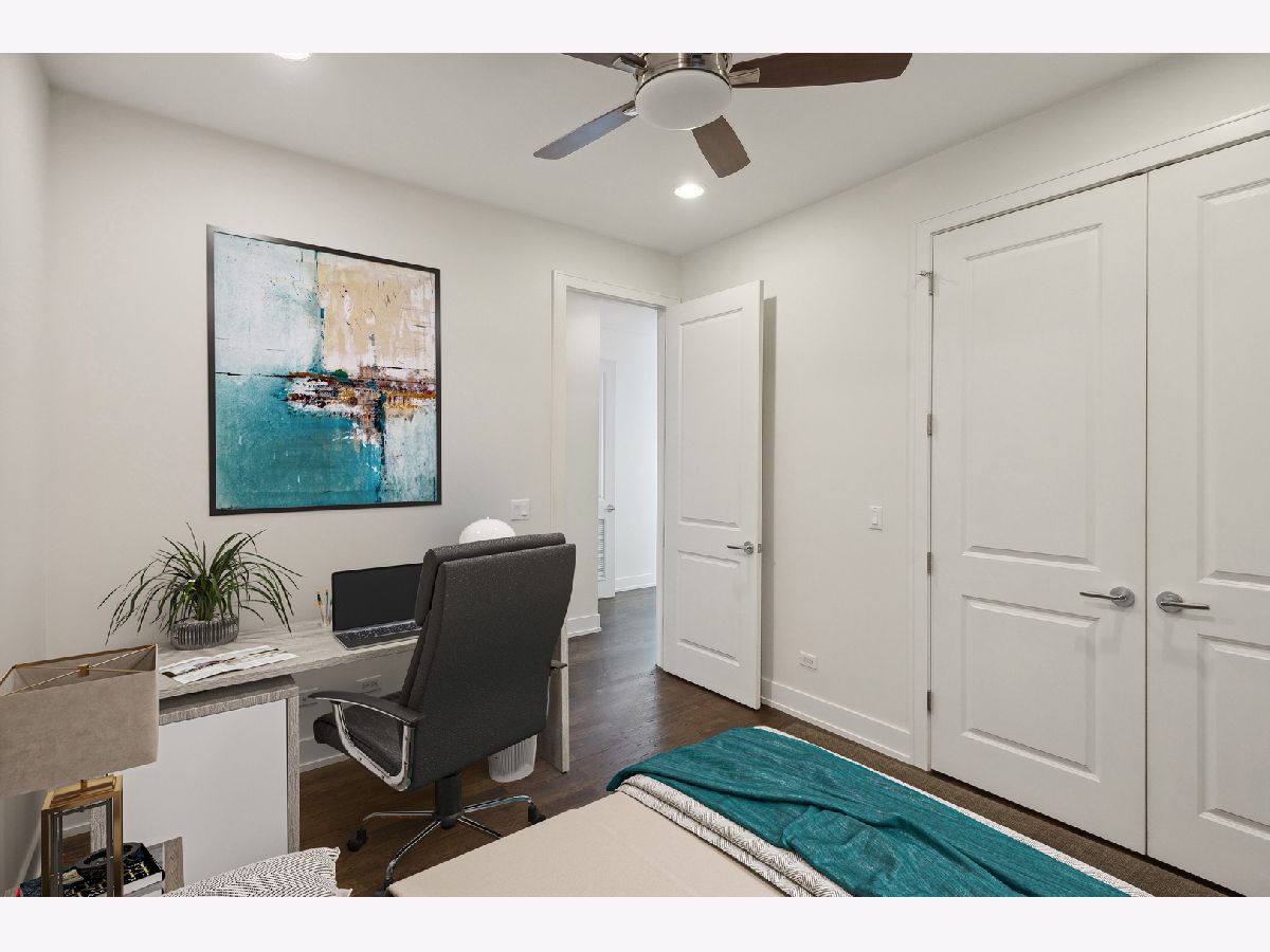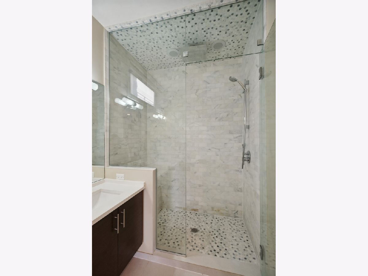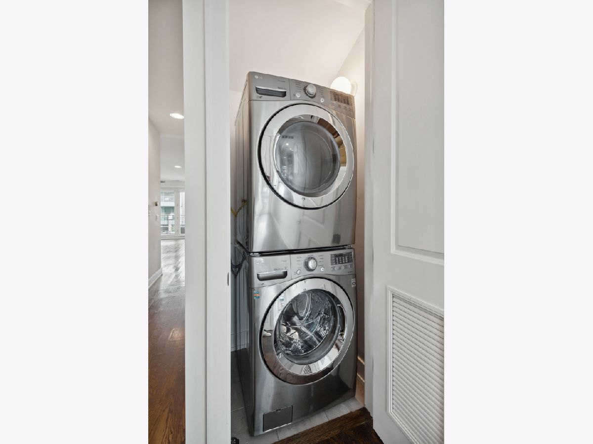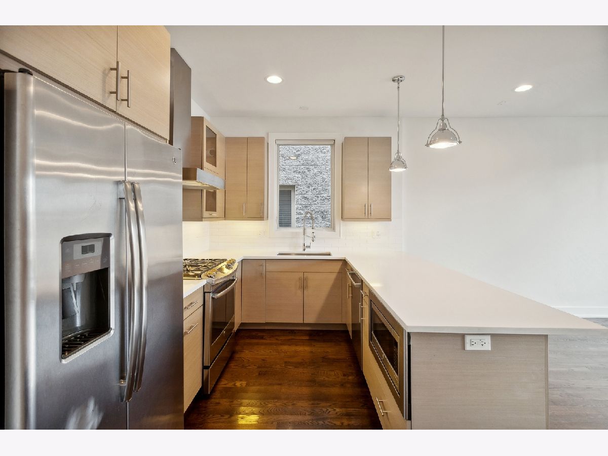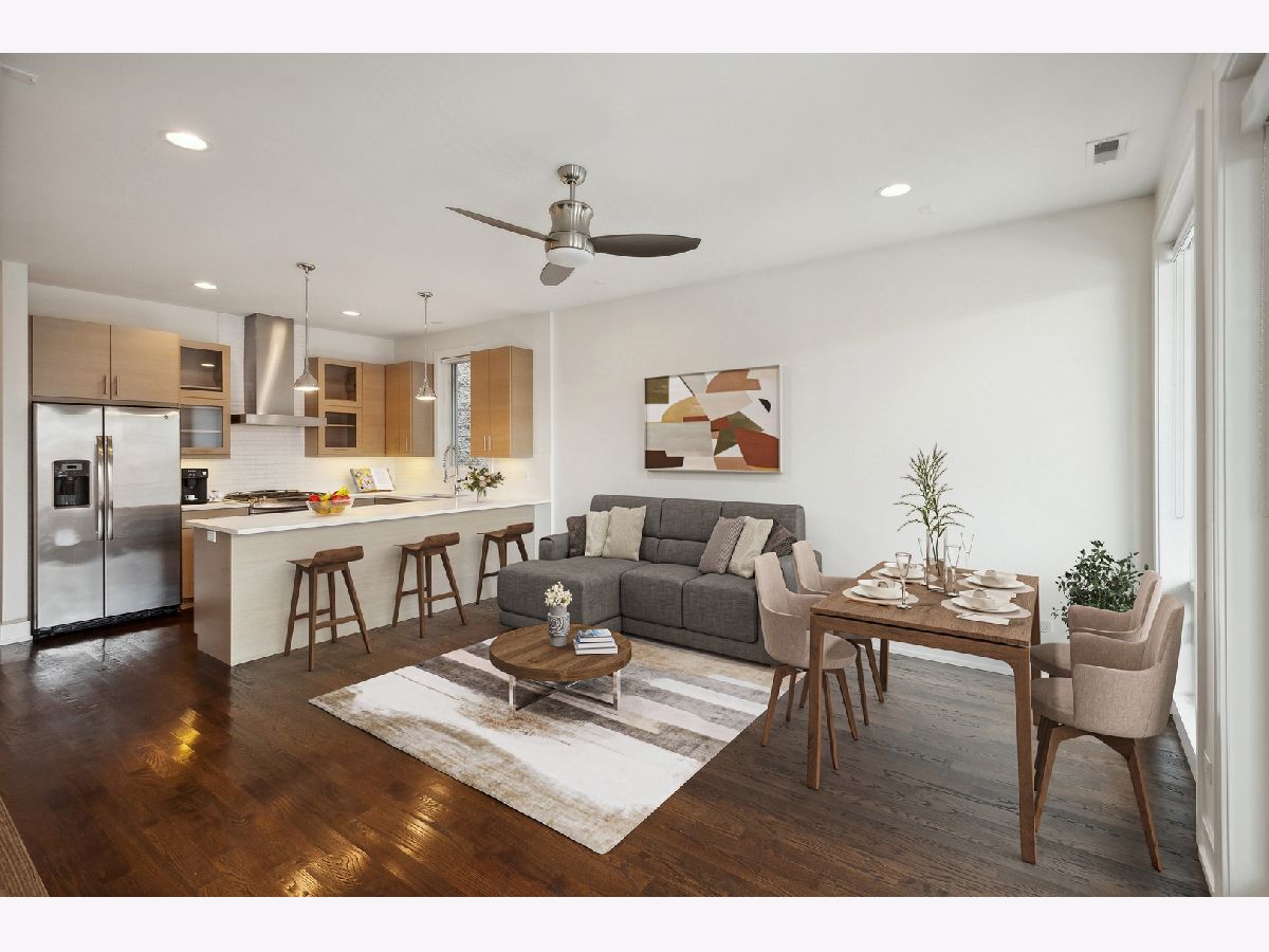 Fabulous 2 bedroom, 2 bathroom condo in excellent location with 2 outdoor spaces! Contemporary style kitchen with custom cabinetry, quartz countertops, stainless-steel appliances, range hood and eat-in breakfast bar with ample space for multiple stool seating. Combo living and dining room offers plenty of space for separate dining table and features additional dry-bar area with new beverage fridge. Floor to ceiling windows lead the way to extra-large front deck (width of unit), ideal for grilling and entertaining. Primary suite has walk-in closet with built-in organizers and spa-like en-suite bath with heated floors, double vanity, and marble walk-in shower equipped with rain showerhead. Great sized 2nd bedroom perfect for guests and work-from-home. Relaxing and deep soaking tub in 2nd bath. Additional rear deck, accessible from hall, for bonus outdoor living. Large storage closet in unit with additional private storage in basement. Full-sized stackable in-unit laundry. Tall ceilings and hardwood floors throughout. One garage parking space included. Centrally located right on cusp of Wicker Park, Bucktown and Humboldt Park neighborhoods makes for highly walkable area to several restaurants, bars, shopping, the 606, public transportation, parks and more!