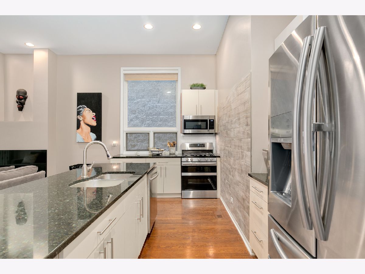 Sleek and modern one of a kind duplex down in Old Town that lives like a single family home. First floor features a beautiful updated modern kitchen with new appliances and accent wall, living room with fireplace, spacious primary suite and second bedroom. Lower level offers a second living area with fireplace and walk out patio, perfect for working at home! There is also a third bedroom with full bath and walk in utility room with side by side laundry. Many updates including new HVAC, water heater and windows all within the last 10 years. Hardwood floors throughout and attached garage parking included! Prime Old Town location just steps to lakefront, New City, Target, Brown and Red line, Wells Street and more. Click on the 3D button and take a walk around before booking your private showing. Welcome home!