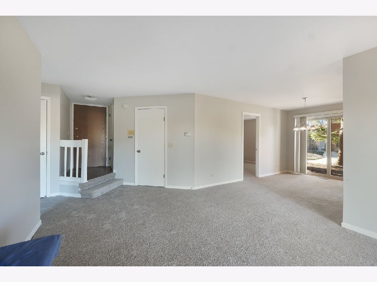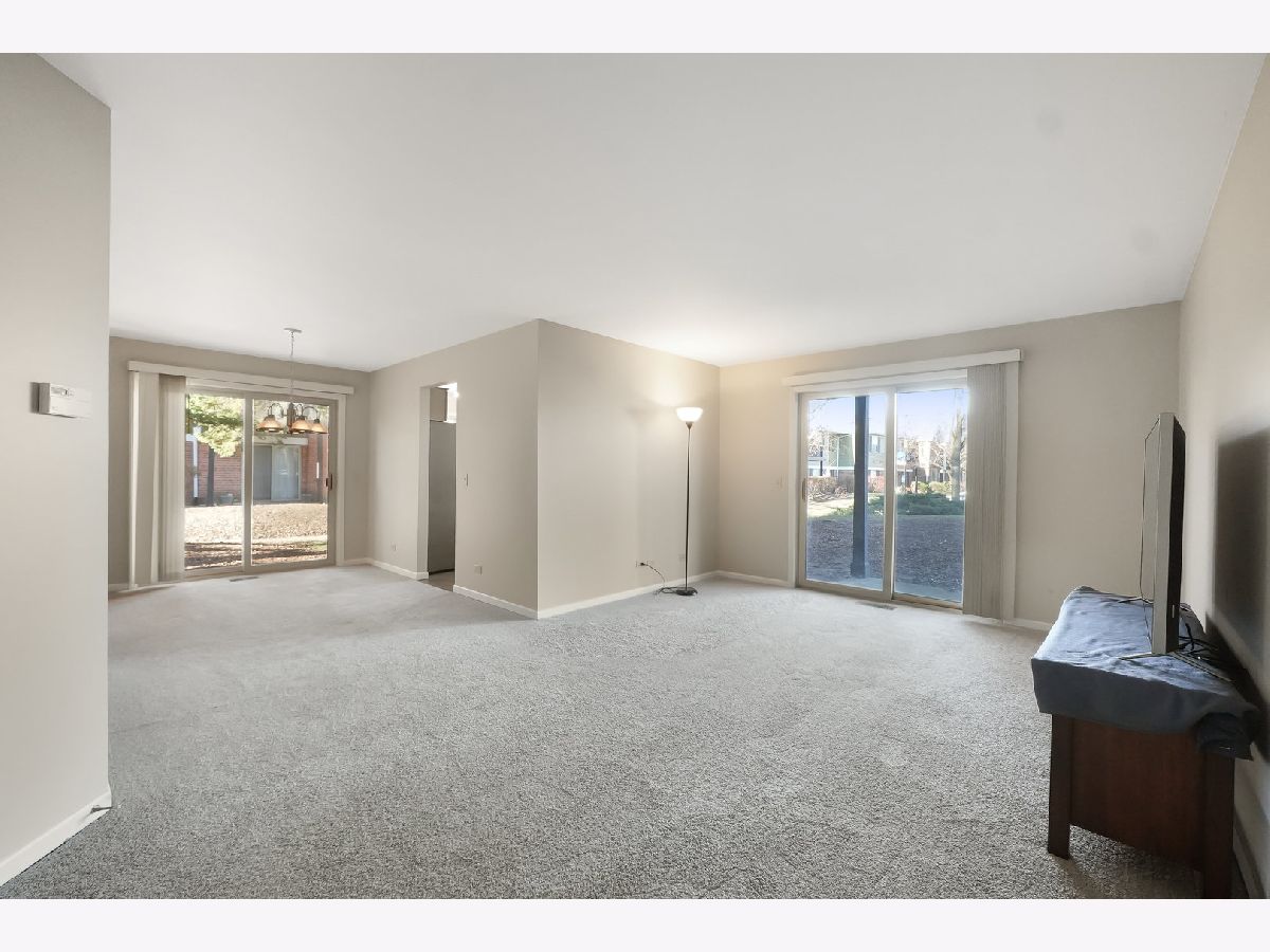 Ready for convenient condo living? This main level unit with 2 patios facing the beautiful greenspace is ready for you! Brand new carpeting & fresh paint throughout. Just bring your boxes and unpack! This unit features 2 bedrooms & 2 full baths plus large living & dining rooms. Bathrooms have been updated with newer shower tile surround, kitchen features stainless steel appliances & granite countertops. Plenty of closet space & convenient stackable washer/dryer in unit. Terrific location within the complex - just a few buildings down from the clubhouse & pool. Also terrific highway access, close to shopping, & dining, McDowell Woods Forest Preserve & excellent Naperville Schools. ONE YEAR HOME WARRANTY INCLUDED. Quick close possible. HURRY!