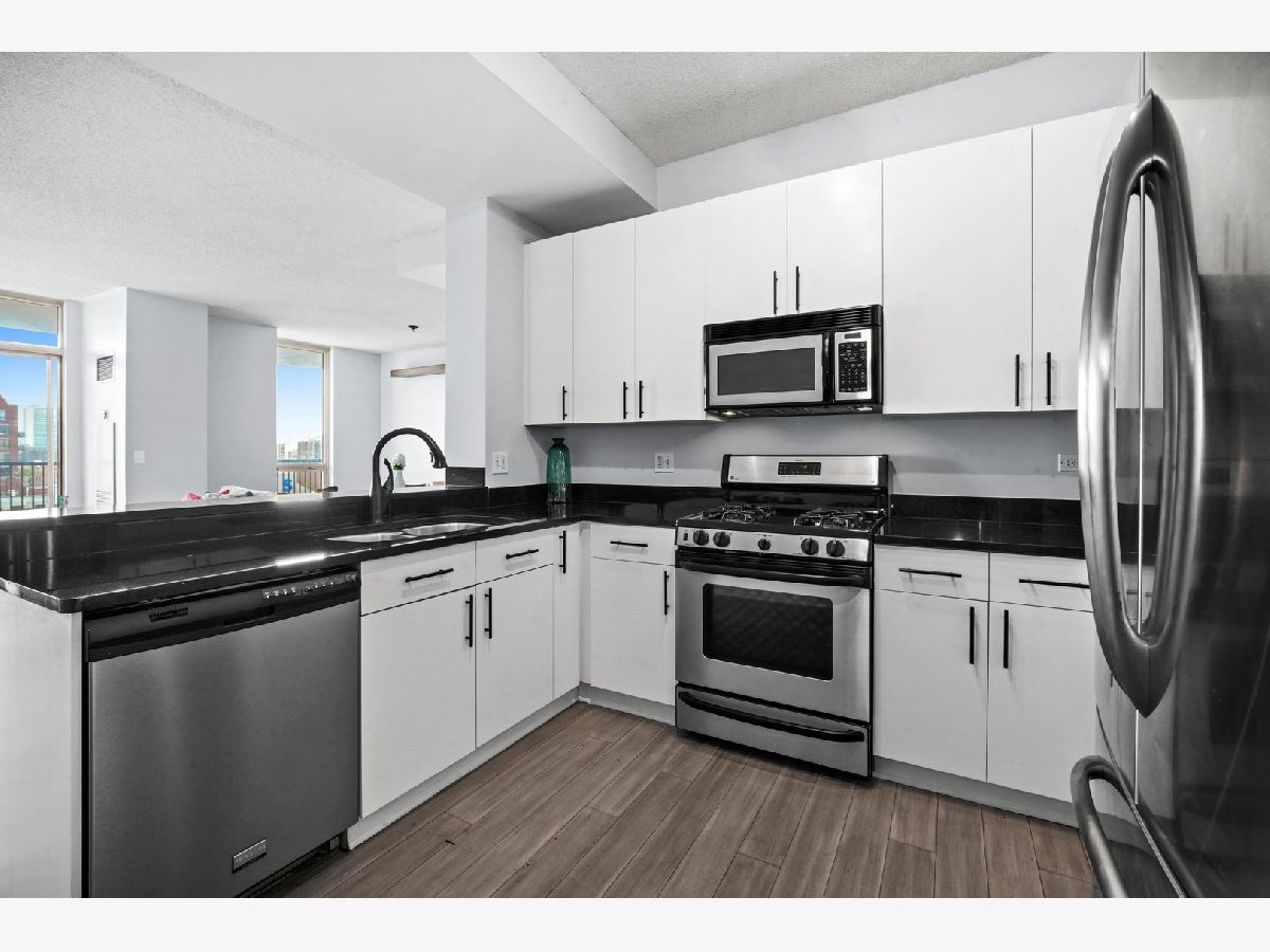 Take a 3D Tour, CLICK on the 3D BUTTON & Walk Around. Watch a Custom Drone Video Tour, Click on Video Button! Unbeatable Old Town Location with this massive 1200 Sq/ft Private south-facing terrace which is perfect for entertaining! This corner 2 Bed/2 Bath unit is rarely available. The open concept floor plan has a large entry foyer, gas fireplace and new hardwood floors. Modern kitchen features stainless steel appliances, granite countertops, white cabinetry, and expansive breakfast bar. The living space has gorgeous views from your large windows which brings in tons of natural light. Separate dining room is the ideal spot for hosting fabulous dinner parties with beautiful skyline views. Retreat to the master suite with plenty of closet space, balcony access and ensuite bath. Spacious second bedroom. Unit features tall ceilings, ample storage, & in unit Washer/Dryer! Garage Parking INCLUDED in the price. Outstanding building steps away from cherished Old Town favorites, nearby Public Transportation, Wells street,, and Lincoln Park.