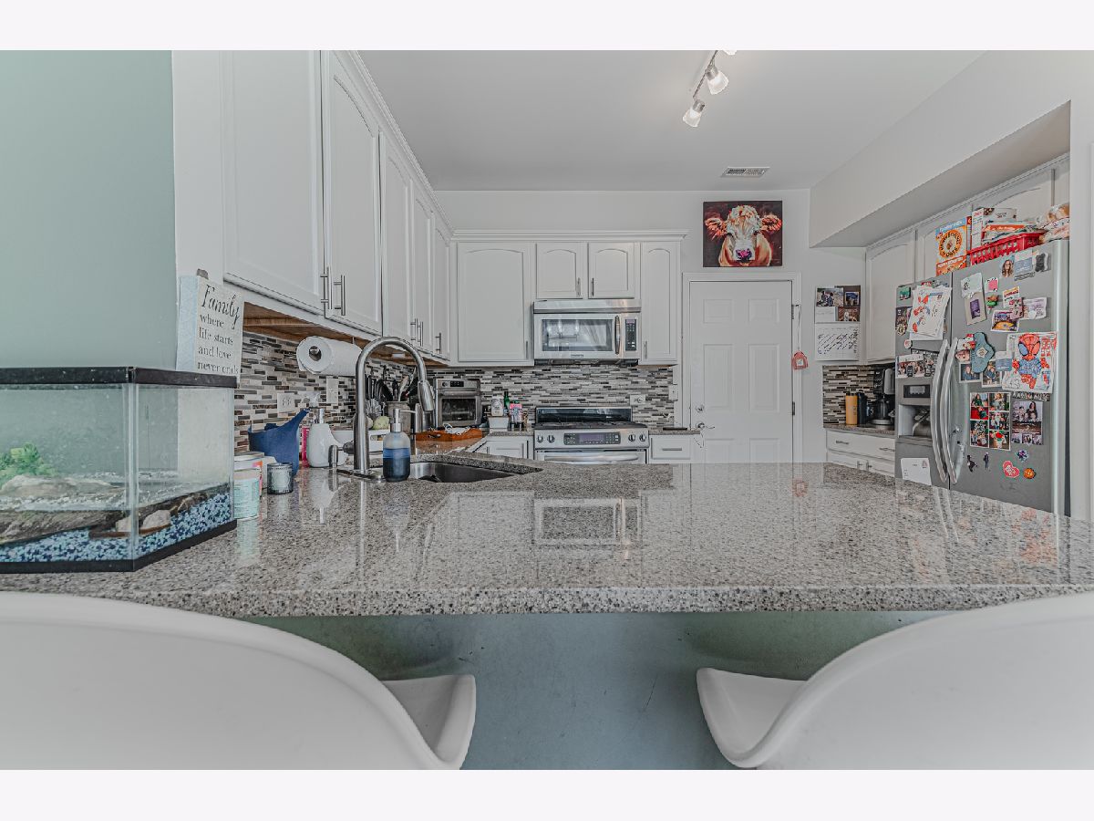 This spacious, open-concept home stands out as one of the most beautifully updated end units in Summit Enclave. Situated on an oversized lot with picturesque pond views, this home offers style, space, and serenity all in one. Step inside to find fresh paint throughout and tasteful decor that complements every room. The main floor is filled with natural light, featuring 9-foot ceilings and updated flooring. The kitchen has been fully upgraded with new cabinets, quartz countertops, an extra-deep stainless steel sink, a stunning glass and stone tile backsplash. A separate dining area with chandelier opens through double doors to a spacious patio perfect for relaxing or entertaining. Every detail has been thoughtfully upgraded, from the modern light fixtures and door hardware to the crisp white trim. The primary suite includes a tray ceiling and a walk-in closet, while the ensuite bath features ceramic tile, a garden tub, and dual vanities. The second and third bedrooms share a Jack & Jill bath with natural slate flooring, ideal for functionality and privacy. All of this, with easy access to walking/bike paths, shopping, NIU, and I-88, makes this home a rare find in today's market.