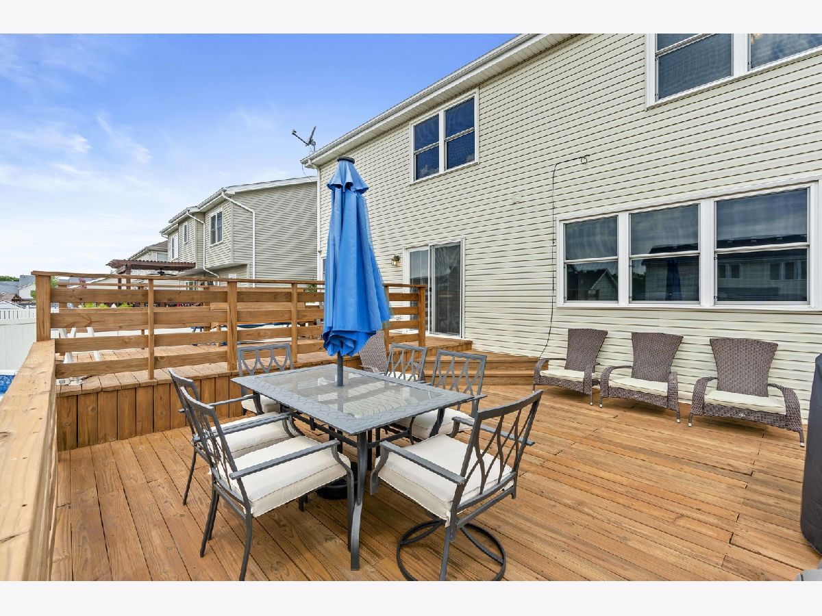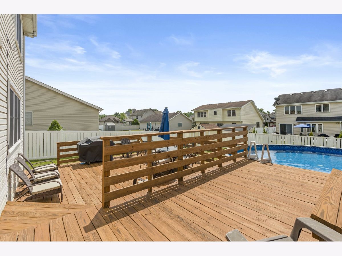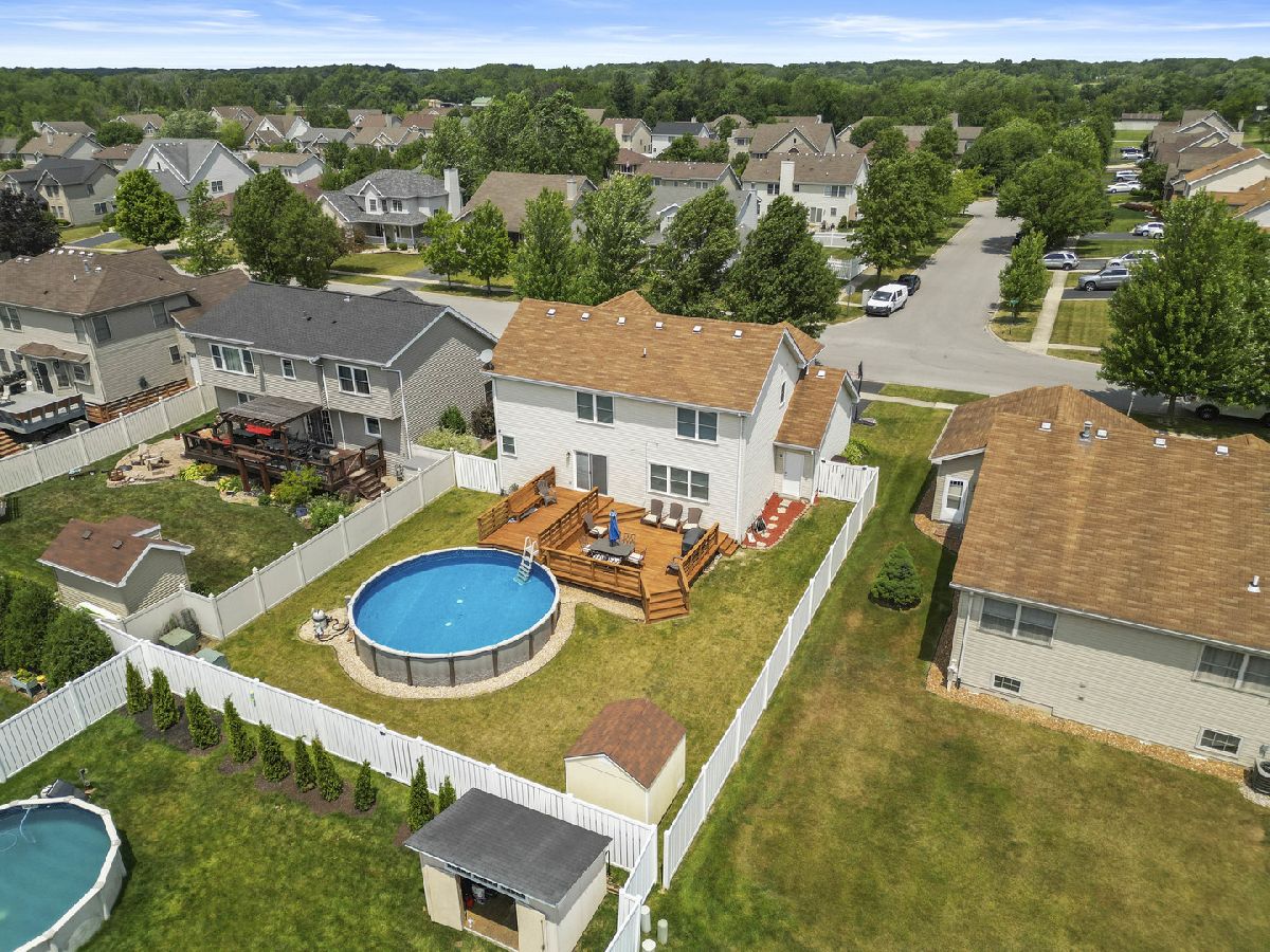 Welcome to this stunning two-story home in the highly sought-after Prairie Trails subdivision. Upon entering, you'll be welcomed by a two-story foyer that leads to a formal living or flex space and an elegant dining room. The open-concept living and kitchen area flows seamlessly into a backyard oasis, featuring two oversized deck areas and an above-ground pool perfect for enjoying hot summer days. Upstairs, the spacious primary bedroom offers an ensuite bathroom and a walk-in closet. Down the hall, you'll find three additional bedrooms, a full bath, and a convenient laundry area. Additional features include a two-car garage, a detached shed, and a large unfinished basement. Recent upgrades include a new water heater, A/C, and upgraded windows throughout most of the home. Seller is providing a 1-year Home Warranty.
