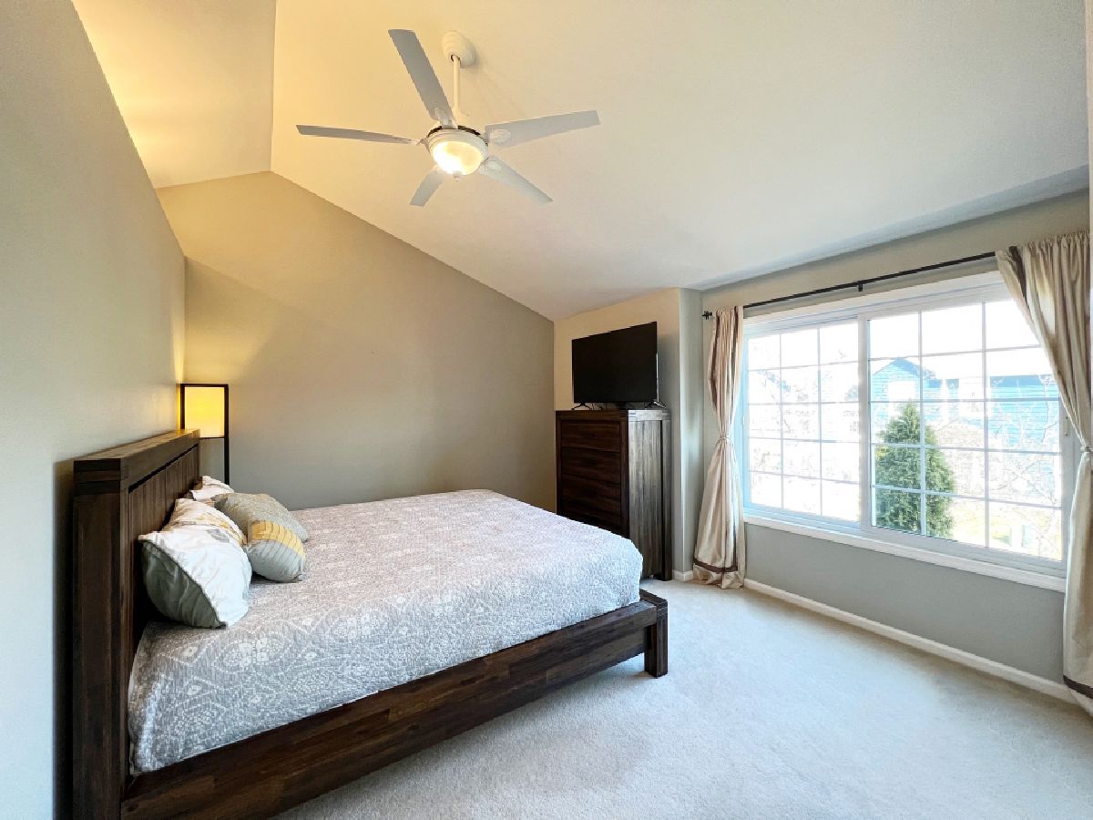 Luxurious townhome in peaceful subdivision featuring open floor plan, impeccable upgrades, and stylish finishes throughout. Beautiful kitchen with granite countertops, and heated granite tile floors, extending throughout front entryway, and downstairs bathroom. Enter the modern, open-concept living room and family room with hardwood flooring throughout. When you're ready to entertain make use of the amazing granite countertop bar with integrated TV or go out back to grill on the large back patio featuring upgraded mature landscaping for privacy. During the Chicago winters, cozy up next to the fireplace (gas or real wood) with upgraded stone accents and tile. Make your way upstairs on the solid wood staircase with captivating cathedral ceilings and retreat into the spacious master bedroom with gorgeous vaulted ceiling and dimmable upgraded lighting. The master features a large recently remodeled on-suite bathroom with Raul sinks, travertine floors, and a stainless steel accented -in, rain-head shower. Enjoy the two additional large bedrooms upstairs, one currently being used as an office. Get plenty of natural light through the recently replaced, double pane windows. Convenient full laundry room with upgraded washer and dryer and second upstairs, recently renovated full bathroom with travertine floors. Spotless, recently replaced carpet in all three upstairs bedrooms. Stainless steel and bronze finished throughout. Plenty of storage, with large crawl space closet, full unfinished attic, and large linen closets/ closets throughout the home. Parking and additional storage in finished 1.5 car garage with upgraded flooring, insulation, and storage closets.