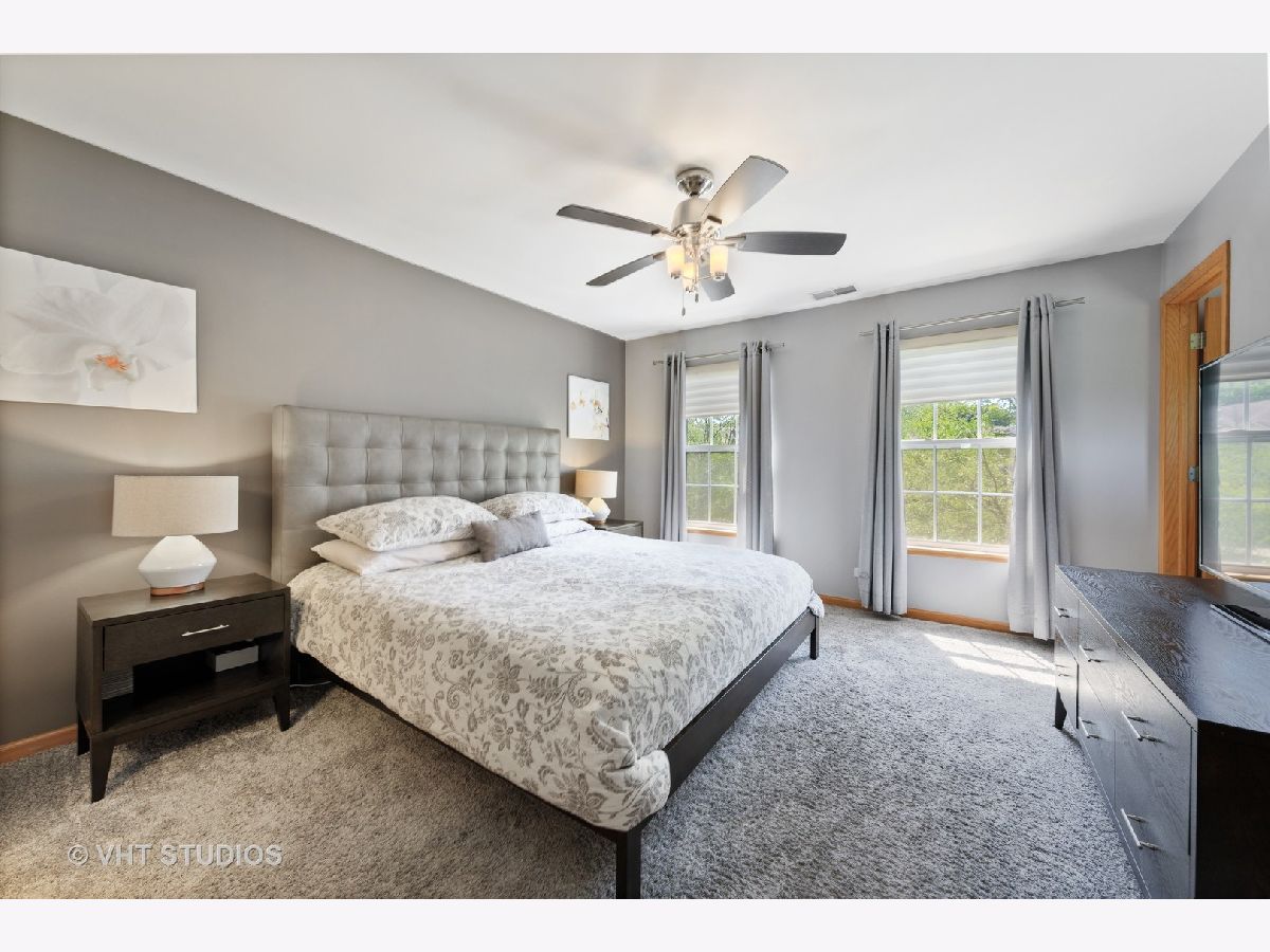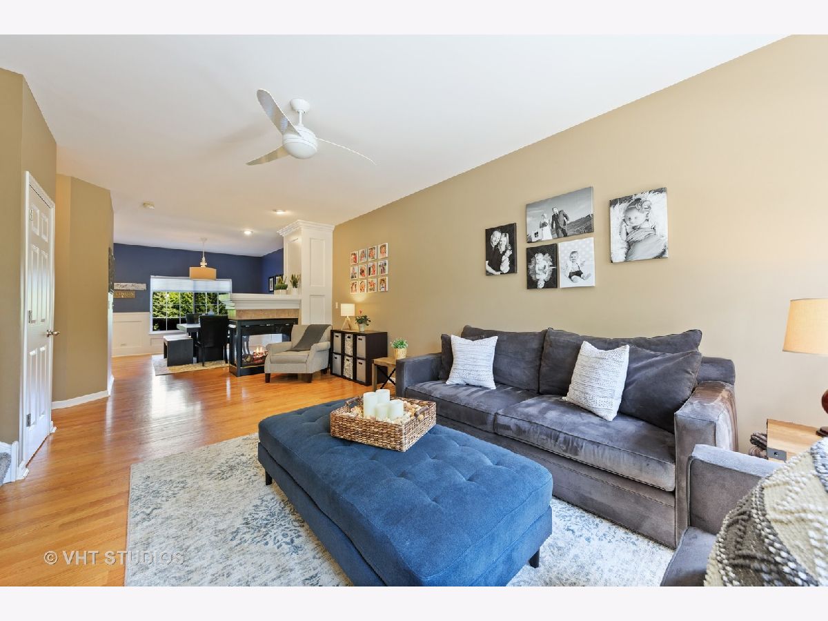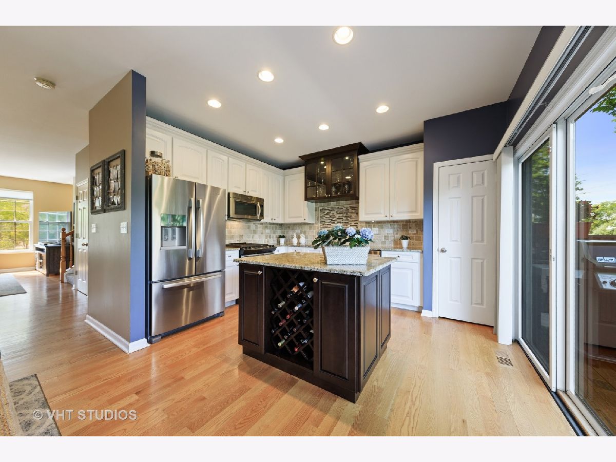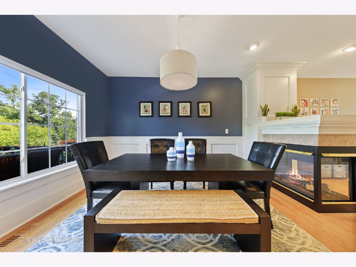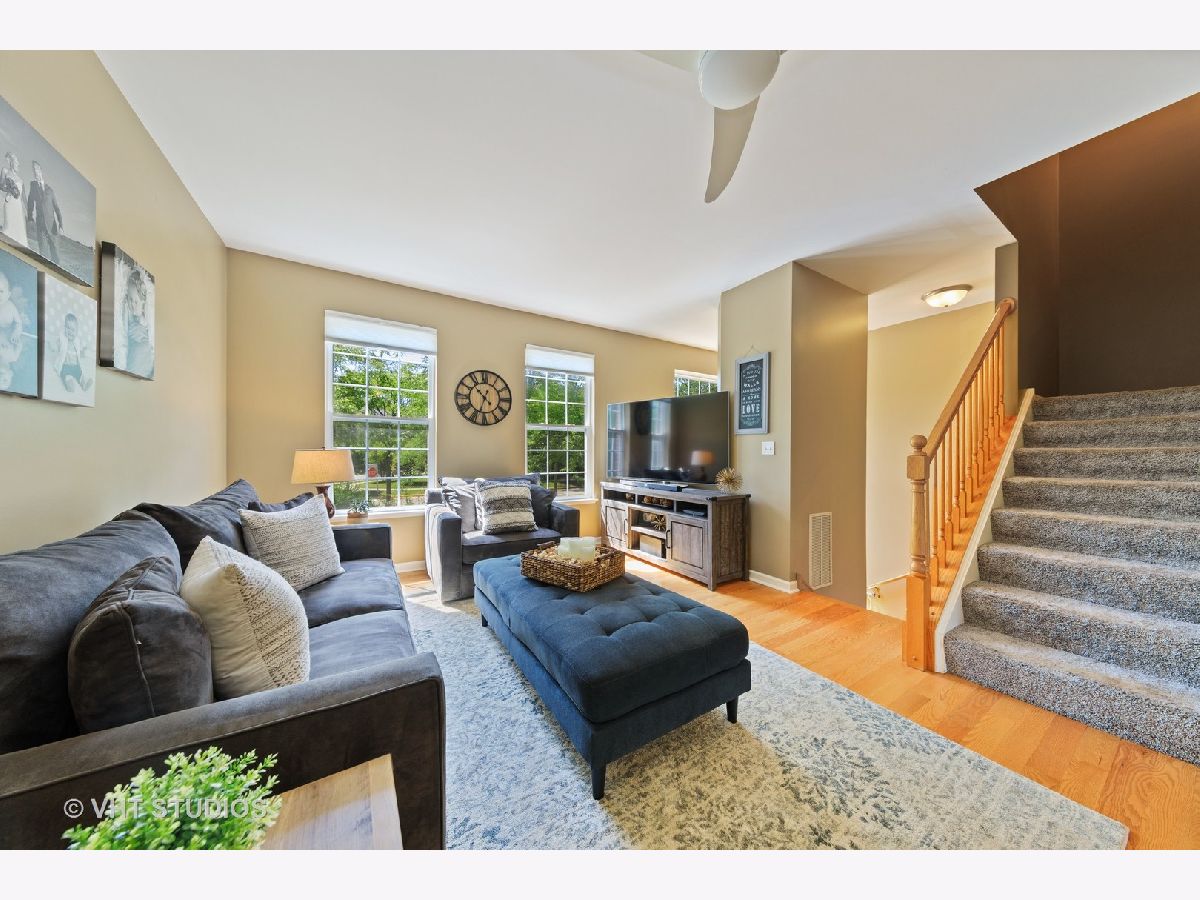 Stunning 3 bedroom/2.5 bathroom updated and meticulously maintained townhome perfectly located within Renaissance Station. Talk about perfection....this open floor plan townhome backs to the pond and woods and offers beautiful views from every window. Solid hardwood floors on the main level(including the stairs from the foyer) and newer(2018) plush carpet on the second level(including the stairs). Custom molding and trim surround the dual-sided gas fireplace and gorgeous wainscoting has been added to the large formal dining room. The main level also offers an extra-large living room and conveniently located powder room. The kitchen is absolutely stunning and features white cabinets, a large island(with built-in wine rack), granite countertops, recessed lighting, stainless steel appliances, pantry, backsplash, and a custom dark stained cabinet above the sink. The large deck off the kitchen is a perfect place for that morning cup of coffee or that evening drink when it's time to relax. Speaking of drinks, this townhome is walking distance to a number of restaurants, bars, and one of the best breweries in the area. When it comes time to catch the train to work or get in your daily exercise, this townhome is just a short walk to the Metra station and only a few minutes away from hundreds of acres of forest preserves. The upper-level features 3 large bedrooms and a full hall/guest bathroom. The extra-large master suite features a large walk-in closet and a master bathroom that offers a walk-in shower with tile surround and a large soaking tub. The lower level includes a large laundry room, an attached two-car garage, and a newly(2020) finished family room which features new laminate flooring, wainscoting, and crown molding. Updated light fixtures, ceiling fans, and custom window treatments have been installed throughout this truly turn-key townhome.