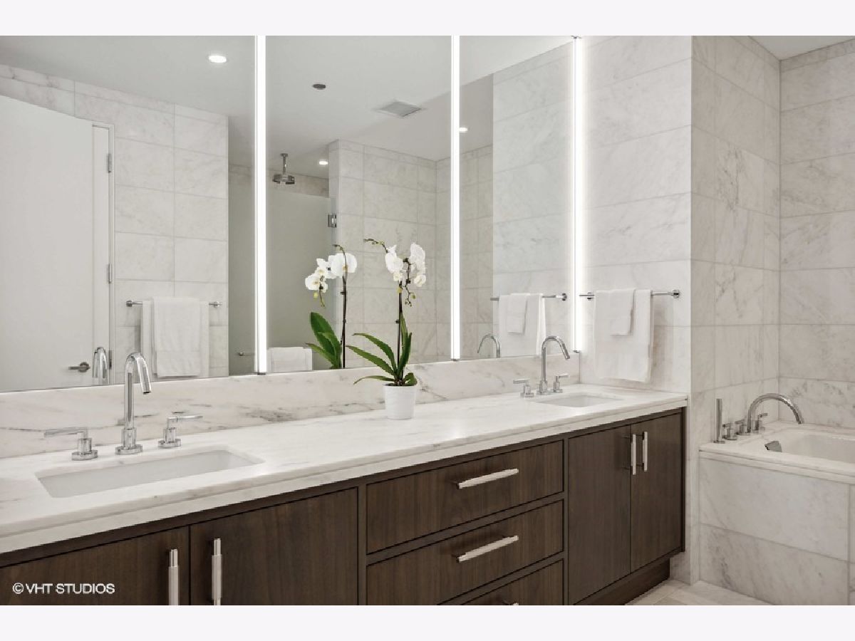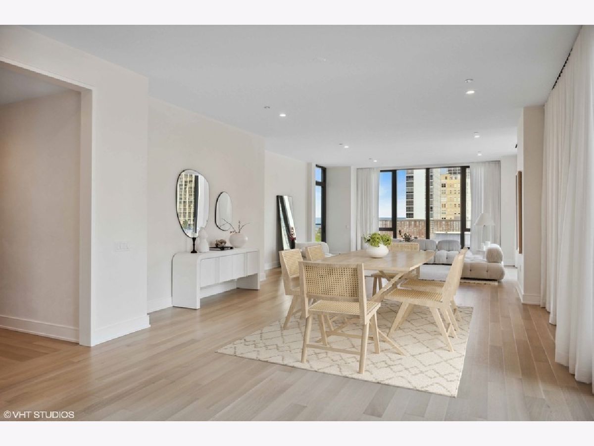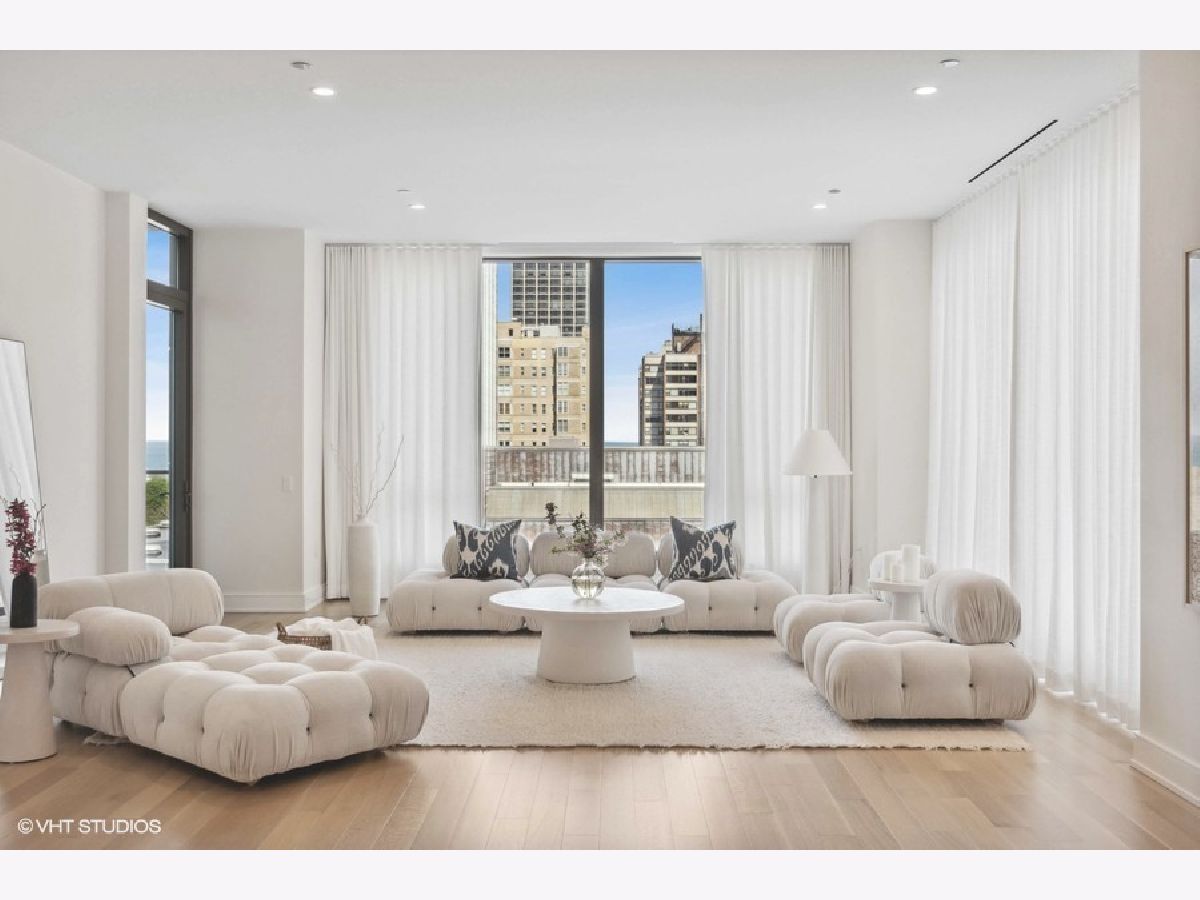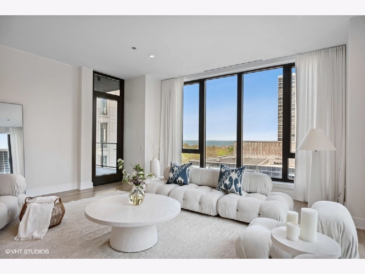 Experience the pinnacle of luxury living in this exquisite 3,300+ square foot residence perched on the eighth floor of the prestigious 1550 on the Park, a boutique full-service building blending Gold Coast heritage with contemporary elegance. The meticulously restored Village Theater facade makes a bold statement with its intricate white terra cotta, ornate detailing, and classic red brick echo the neighborhood's storied past while setting the stage for modern luxury. With three exposures, this home is bathed in natural light from 10-foot floor-to-ceiling windows. Thoughtfully designed with no expense spared, the home features 5-inch white oak rift quarter-sawn flooring in a custom ashy blonde stain and limewashed "White Country" walls, creating a serene, suede-like texture and Restoration Hardware aesthetic throughout. The grand foyer sets the tone with southern views that draw your eye immediately to the cityscape beyond. The oversized corner living and formal dining areas flow seamlessly to an east-facing balcony with stunning lake views, making this an entertainer's dream. The show-stopping O'Brien Harris kitchen is appointed with custom "Kensington" walnut cabinetry, white quartz countertops with full-height backsplash, and top-tier integrated appliances including Sub-Zero, Wolf, and Miele. A quartzite island with seating, a Kallista sink with Dornbracht fixtures, and adjacent family room with flexible breakfast nook or office space complete the heart of the home. The intelligently designed split-bedroom floor plan includes a luxurious east-facing primary suite with unobstructed lake and park views, a custom walk-in closet, and a spa-quality bath featuring a dual vanity, jetted air tub, walk-in shower, and private commode. Two additional en-suite bedrooms on the west end of the home enjoy sunset views and ideal privacy for family or guests. A large laundry room and powder room round out the well-appointed layout. This intimate, 32-residence building offers premier amenities including 24/7 concierge and security, an exercise facility, resident workspaces, and on-site management. Two heated, deeded garage spots (P22 & P23). Located at the intersection of Lincoln Park, Old Town, and the Gold Coast, this home is steps from the lakefront, Lincoln Park Zoo, top private schools (Latin & Parker), dining, shopping, and public transit. A truly exceptional offering in one of Chicago's most coveted addresses.