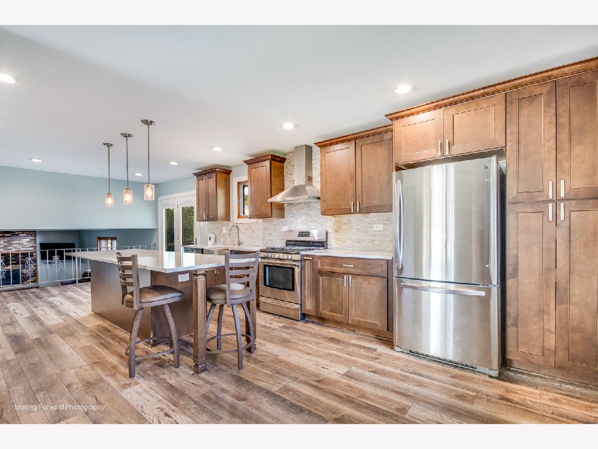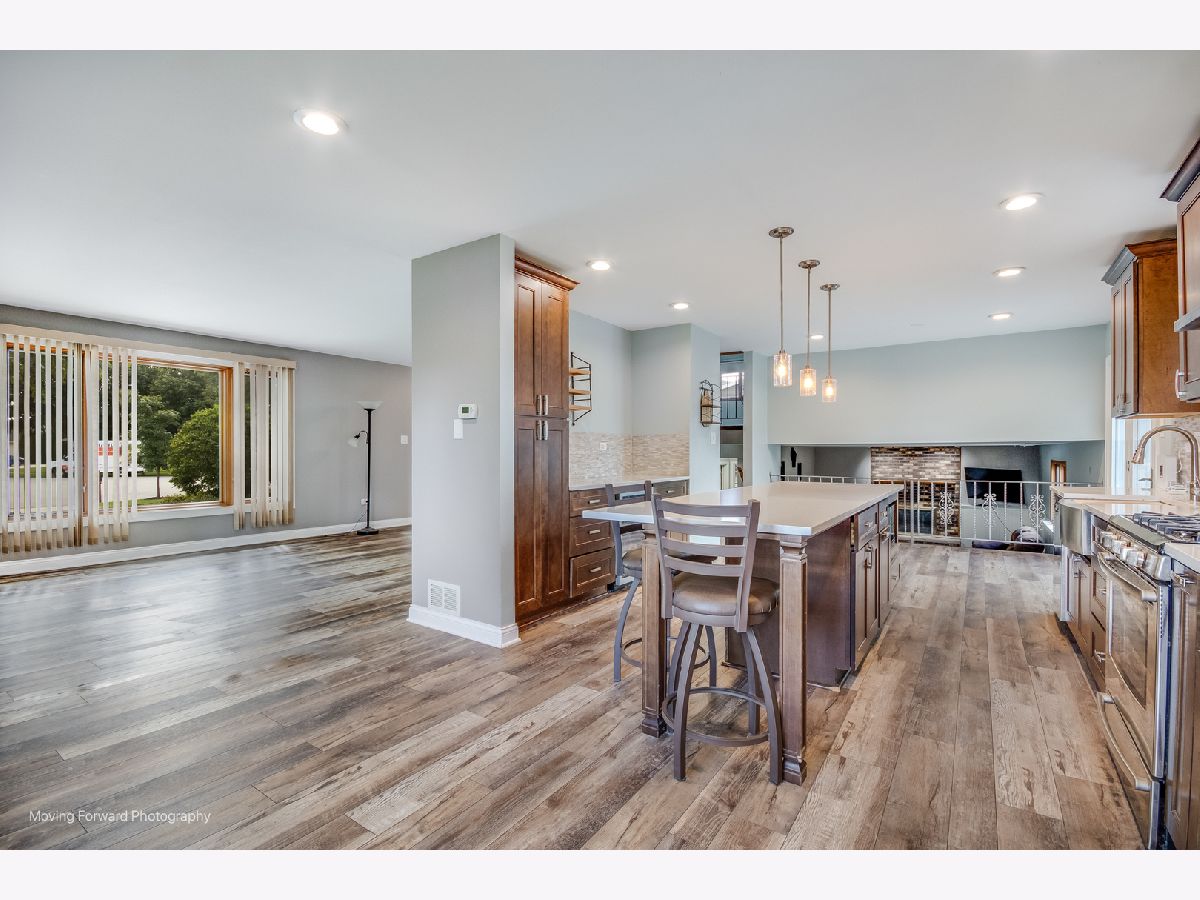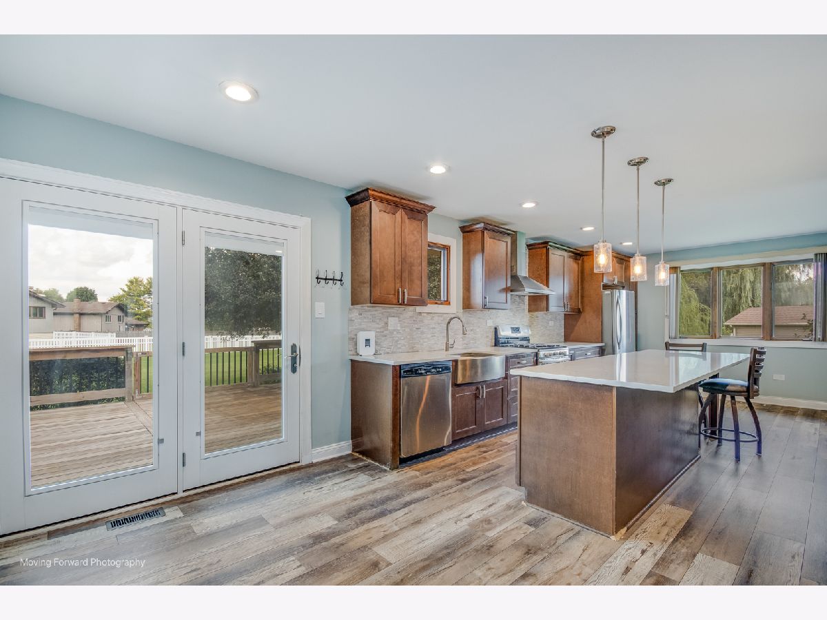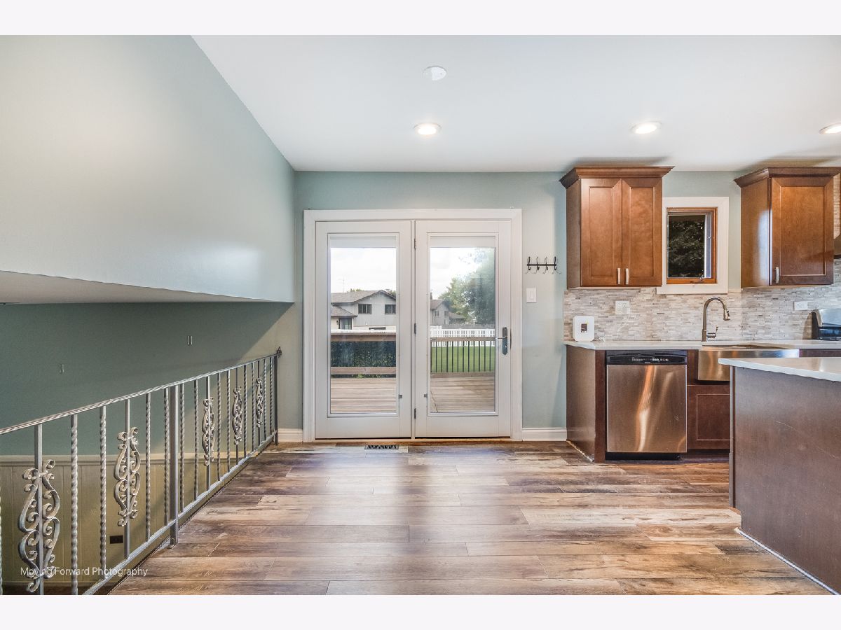 LOCATION, LOCATION, LOCATION! Situated in the highly desired Meadowview subdivision on an oversized 1/2 acre cul-de-sac lot, this spacious quad-level home offers 4 bedrooms and 3 full bathrooms! Featuring an open floor plan with an eat-in kitchen boasting stainless steel appliances, quartz countertops, a center island, farmhouse sink, beverage refrigerator, Nucore Vinyl Plank flooring and butler's pantry. The lower level includes a cozy family room with a brick gas fireplace, laundry room, and 4th bedroom. Upstairs, the primary suite offers a private ensuite bath, while 2 additional bedrooms share a full hall bathroom. Enjoy outdoor living on the large deck overlooking the massive yard. Additional highlights include a 2.5-car heated garage and excellent schools-District #33C elementary and middle schools, and District #205 Lockport Township High School. Home is being sold AS-IS. Welcome home!