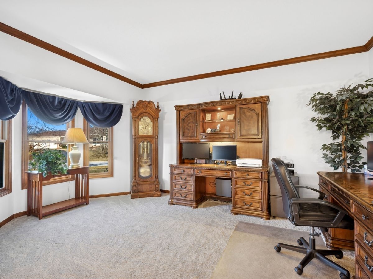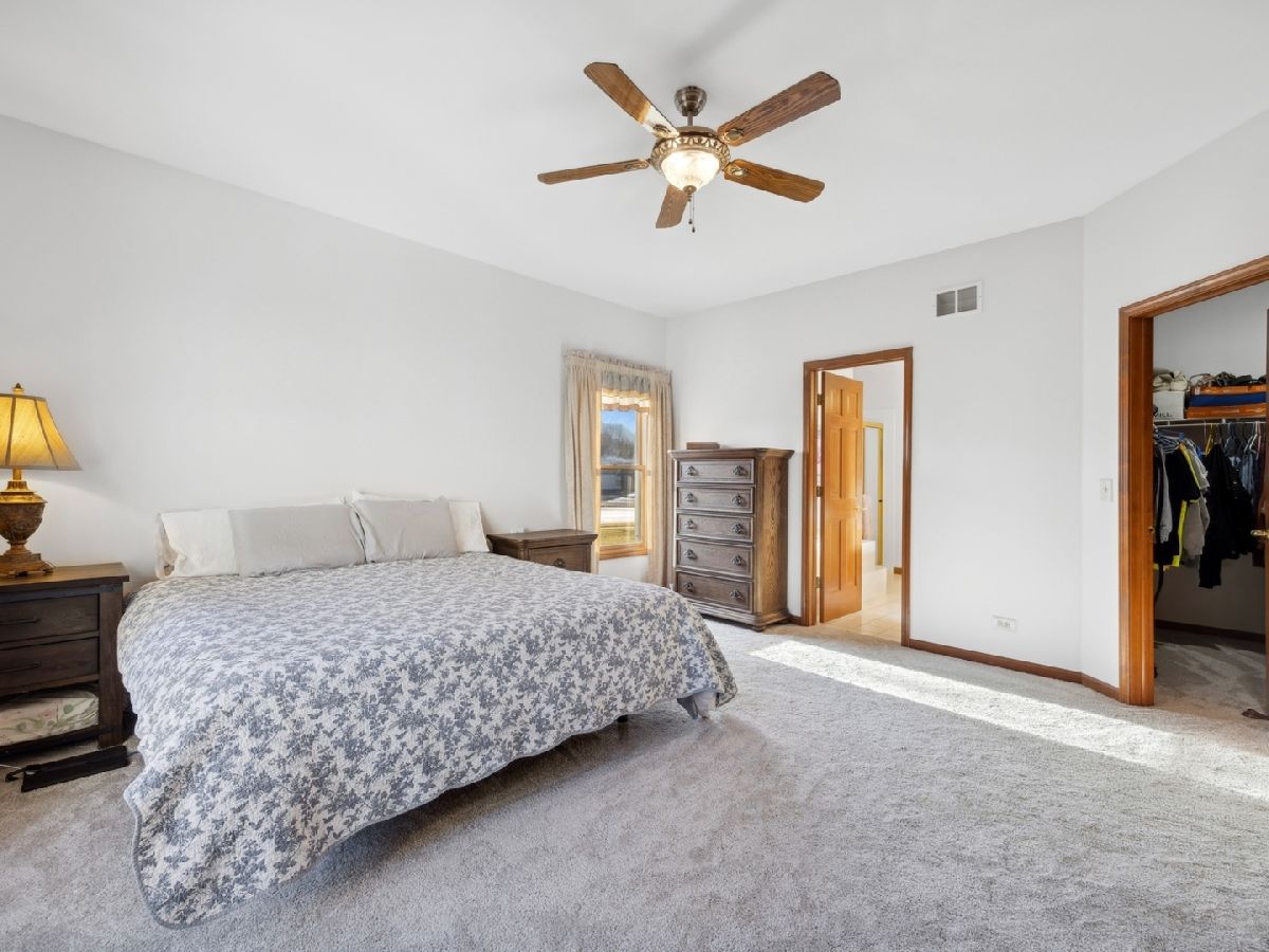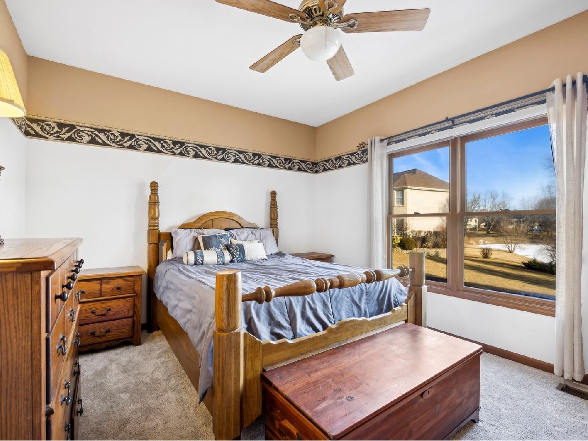 Rare find! Beautiful brick ranch with walk-out basement and split bedroom floor plan in exclusive Hunters Ridge North is on nearly three-quarters of an acre. This sprawling ranch is located on a quiet cul-de-sac and pond! Three bedrooms, two and half baths and an amazing 3 car heated garage, perfect for car enthusiasts. New carpet and fresh paint. The bright sun room boasts pond views, skylights, and brand new windows and carpet. The newly remodeled main level laundry is ready for loads of laundry! The updated hall bath sparkles. The primary bedroom is enhanced by a large walk-in closet and lux bath with a separate shower, soaking tub, double sinks and a water closet. The eat-in kitchen with a breakfast nook has a beautiful new back splash, walk-in pantry, planning desk and more views of the pond. A toasty gas-log fireplace and fresh new carpet are featured in the inviting family room. The flex room can serve as an office or formal sitting area situated directly across from the dining room. The full walkout English basement is a deep pour, has a rough-in, and is ready for finishing to double the living space! The roof is two years young and mechanicals are 6-7 years old. Extensive exterior drainage work was completed, when the sellers purchased, and a large shed equipped with power was also added. Excellent location nestled on a quiet cul-de-sac, but close to coveted Crystal Lake schools, the Randall Road corridor, golf, downtown Crystal Lake, and the train. Sellers prefer a mid to late June closing.