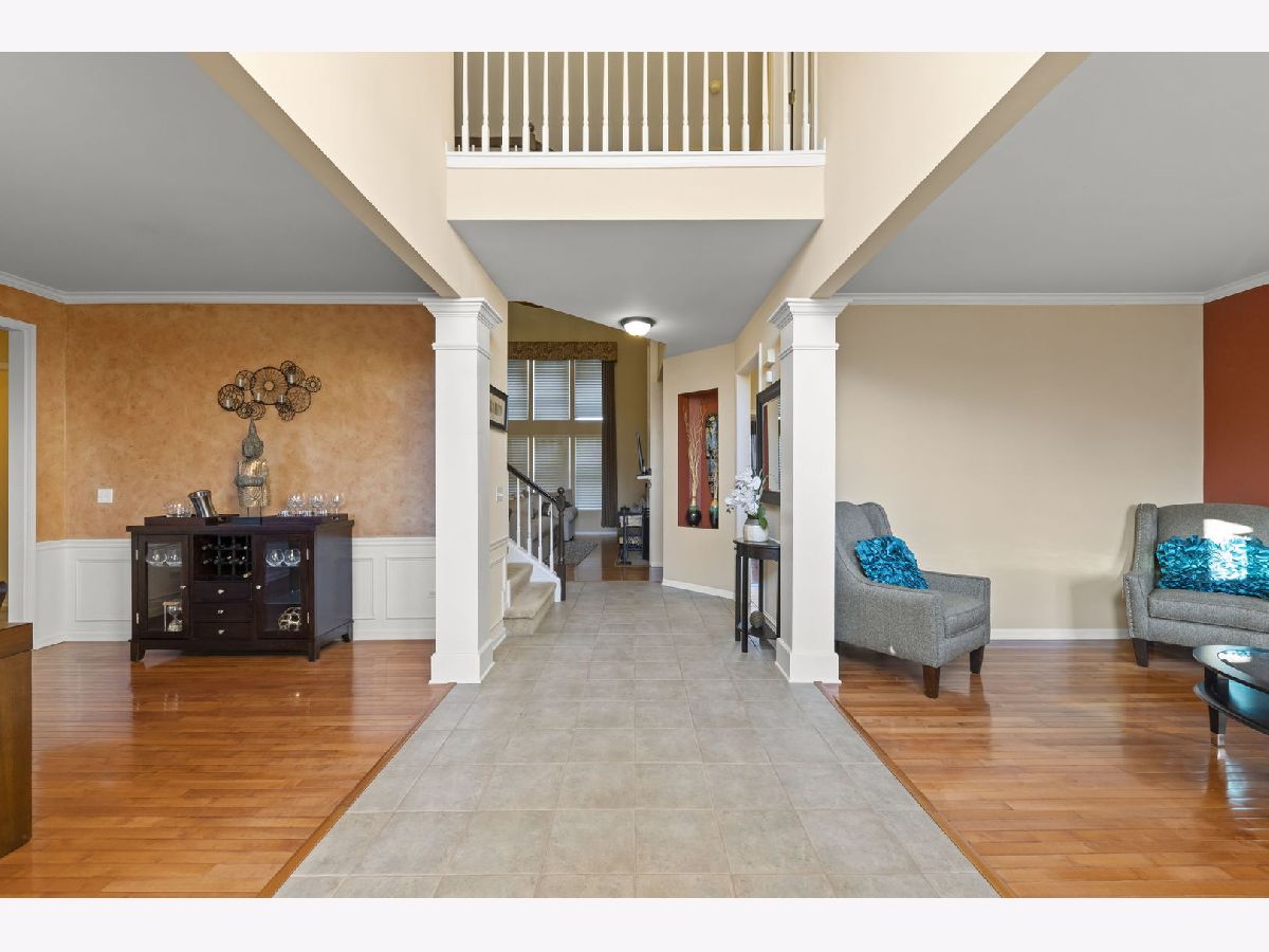 Impressive Expanded Birmingham Model in Bolingbrook's Augusta Village! So much space for entertaining! The entryway leads into a stately foyer with separate dining and sitting rooms. Floor to ceiling fireplace and large windows are focal points in the open living room which flows into the expansive kitchen. A walk-in pantry, eating area and island provide functionality in this modern kitchen adorned with dark cabinets which are complemented by marbled granite countertops, tile backsplash and stainless-steel appliances. The master bedroom is a sanctuary with trey ceilings, full bathroom, double sinks, built in vanity, soaking tub, separate shower, and walk-in closet. The beautifully finished basement provides over 1500 square feet of additional living space! Finishes include a recreation area with built in entertainment center and second fireplace, wet bar, exercise room, full bathroom, and 5th bedroom! This home also boasts a three-car garage, brick paved patio with built in firepit, and fenced in backyard. Updates include New Roof (2019), Furnace (2019), AC (2019), Hot Water Heater (2020), and Back Patio Brick Pavers (2021).