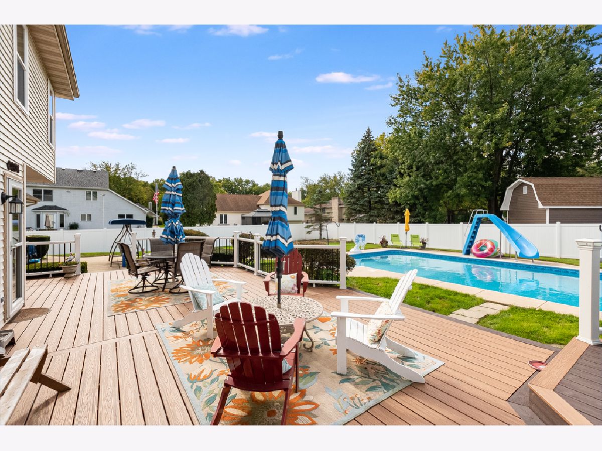 Timeless 4-bedroom home nestled within the beautiful Indian Oaks subdivision of Plainfield. This lovingly maintained home has many desirable features, including a formal living room, formal dining room, and a beautiful brick fireplace in the family room that is sure to keep you cozy in the colder months! The beautiful kitchen is well-appointed with stainless steel appliances and Corian countertops. The causal eating nook invites you to enjoy your morning coffee while you look upon your beautiful outdoor oasis and fully fenced yard. Step outside onto the new (2019) Trex composite 2-tiered deck leading up to the sprawling 20x40ft in-ground pool with slide and diving board. No pool party would be complete without food on the grill! The deck features attached gas BBQ grill (2021). Make your way upstairs where you find all 4 bedrooms and 2 full baths. The primary suite features a tray ceiling, walk-in closet, and beautiful en suite bathroom. Additional features include a full basement with garage access, 2 new water heaters (2023), new carpeting and upstairs bathroom flooring (2023), new furnace and A/C (2021), white vinyl fence (2023), Pella replacement windows (back of the house, second story) (2023), waterproof vinyl plank flooring throughout main level. The garage was newly insulated and drywalled with new overhead door (2021). Radon mitigation and dual sump pumps (one new 2023). Pool is equipped with new cover (2023), Nautilus Plus computerized self-cleaning robot, and owners are leaving Adirondack chairs and other patio furniture for your enjoyment! Ring doorbell and 2 flatscreen TVs also stay. This home is gorgeous, but don't forget the location! Within minutes, you can access schools, shopping, and many other local amenities. Don't miss the opportunity to make this beautiful property your own. Schedule your private showing today and experience all this property has to offer!