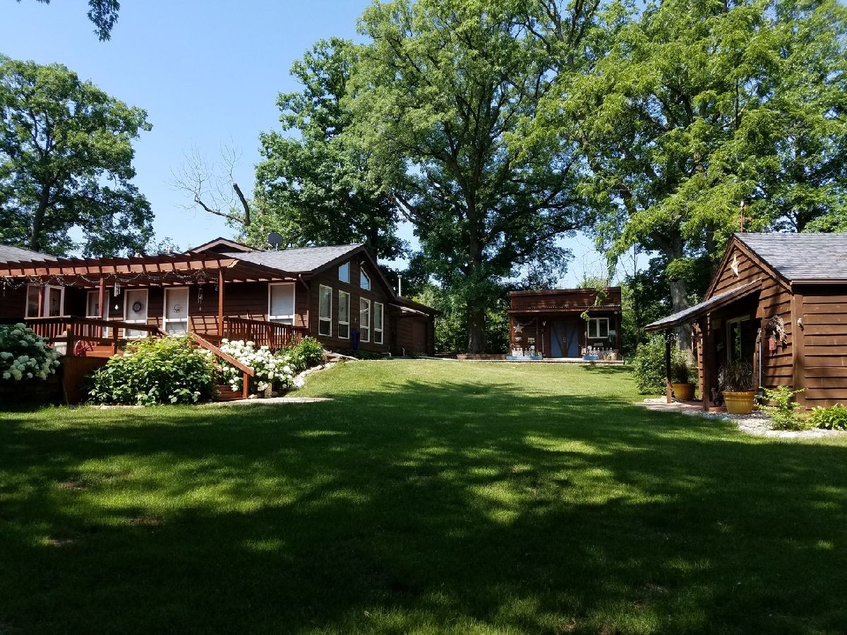 If you are looking for a completely tricked out brand new construction type of home, sorry, you will have to look elsewhere. This is NOT a subdivision cookie cutter home with sidewalks, your specific redecorating taste will apply to update accordingly. But if the last year of a pandemic has forced you to look at your life/work balance differently, then this one is for you, where you can find solace in all the things we have learned about different ways of living and working from or near home. SELLER SAYS BRING YOUR IMAGINATION AND A REASONABLE OFFER! Wide plank Rustic flooring, pine plank walls, wood burning fireplace, all lend to a nostalgic allure. Love to garden? Then get your master gardener tools. Need a get away office just steps from home? Step outside your back door to a heated and airconditioned building that screams "work from home". What about cooking? Time to become a gourmet with this gigantic counterspace and cabinets. The out buildings are perfect for so many things, growing herbs, vegetables, making crafts, exercise area, yoga studio, small business opportunity, etc If you love to entertain the spacious rooms will be filled with laughter and friendship. As for your personal living space,, room sizes are very generous along with incredible closet space. 4 Bedrooms, 3 full Baths, 3 fireplaces, 2 basement areas and a 4 car tandem garage make this hard to duplicate. The outdoor areas are plush and expansive, whether it is free time on the 2 level deck, with Sunsetter awning up or down, grill on the side and tons of lawn furniture for those outdoor days. Your friends and family will be excited when you extend the invitation to visit as days will be filled with memories and good times. One of the outdoor buildings is 20x24 heated & a/c, the other is 13x18 w/ electricity & lights, the third is a shed that is 9x12. For added security you will find a back up generator and back up sump pumps, along with a security system. Addition was completed around 1990. Forest preserves just steps away.. Please look at the additional information attached to understand the very extensive information that applies to this home. The details are amazing and quite valuable for a potential buyer. This property is in very good condition, but will only be offered "as is". The potential here is endless, so bring your imagination and live life as it is meant to be lived.
