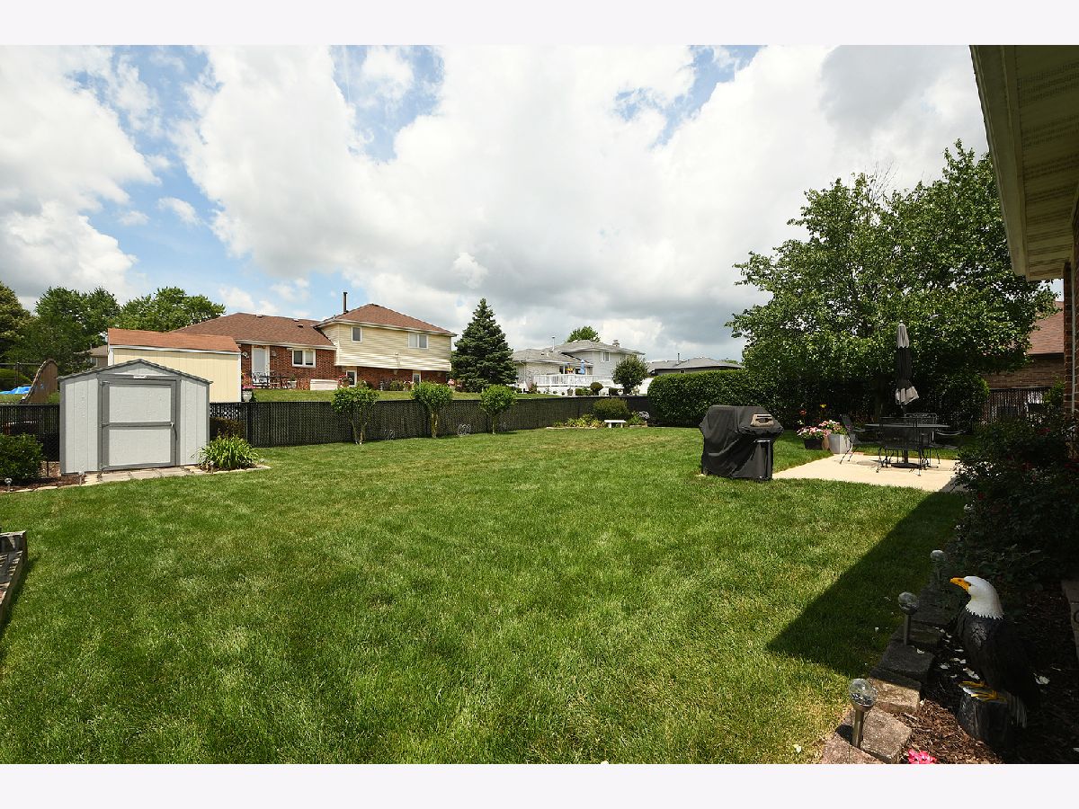 What a classic representation of the American Dream. Lush landscaping, a covered front porch and stately accents welcome you to this updated 2-story. Adjoining living and dining room for formal gatherings. Bright white kitchen cabinetry includes a pantry and bonus closet as well as tile backsplash. Separate eating area with backyard views. Vaulted, beamed ceiling in the family room showcases the brick fireplace. Tucked away staircase to a unique 5 upper level bedrooms including 2 primary ensuites! Finished basement with recreation area, separate laundry room and crawl space. Fenced backyard with concrete patio, a garden and a shed to house your tools. Attached, painted 2-car garage with epoxy flooring as meticulously maintained as the entire home! The pride is ownership is evident here. All of this as well as Orland Park's amenities.