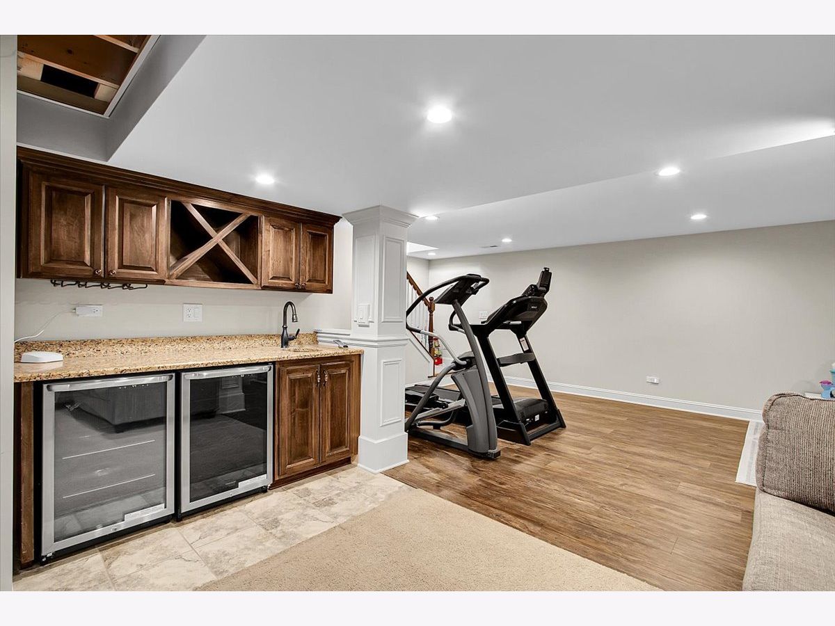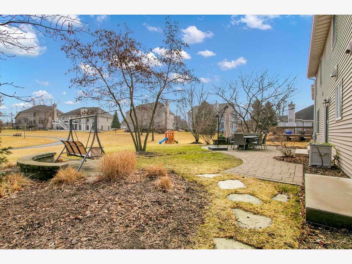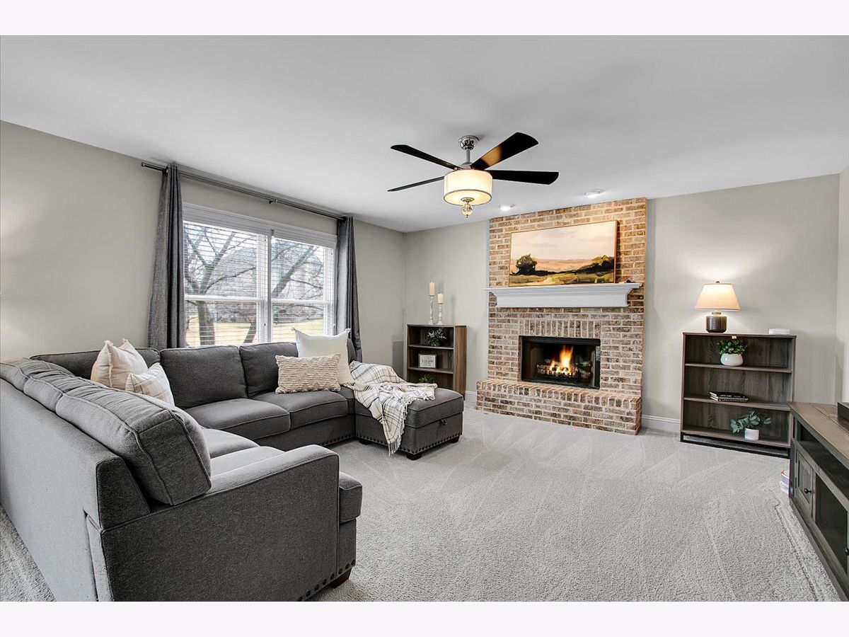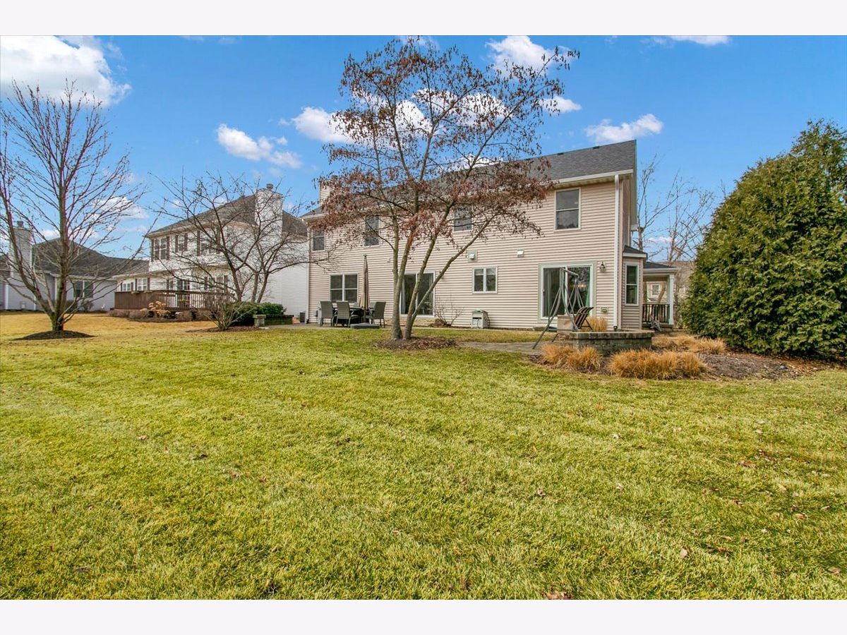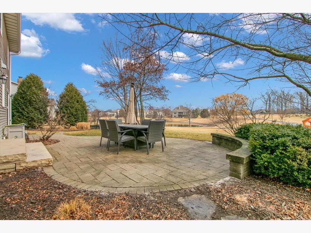 Blackberry Creek Pond Views | Finished Basement + New Roof & HVAC Experience Blackberry Creek living with scenic pond and walking-path views right from your backyard. This Georgian-style home welcomes you with a charming front porch and sun-filled interiors with hardwood floors throughout the main level. The spacious kitchen is built for gathering, featuring double islands, granite countertops, white cabinetry, and stainless-steel appliances, and it opens to the adjacent family room with a cozy fireplace. Host holidays in the formal dining room or enjoy casual mornings at the breakfast bar and breakfast area. Upstairs, retreat to the vaulted primary suite with a large walk-in closet and spa-style bath offering double sinks, a soaking tub, and a separate shower with full-body sprays. Three additional bedrooms, a full hall bath, and convenient second-floor laundry complete the upper level. The finished basement adds exceptional flexibility with a large rec room, second fireplace, wet bar, full bath, and a bonus room (plumbed for a sink) ideal for a studio, hobby room, or home office. Big-ticket updates deliver peace of mind: new roof, gutters, and downspouts (2025); high-efficiency furnace and A/C (Dec 2024); and new washer system with pedestal mini washer (perfect for small loads), plus new dryer and dishwasher (2025). The interior was repainted in 2022, so the home feels move-in ready. Additional features include a radon mitigation system, backup sump pump, and owned water softener. Relax on the patio overlooking the pond and walking path, and enjoy being close to schools, parks, Metra, shopping, and I-88.