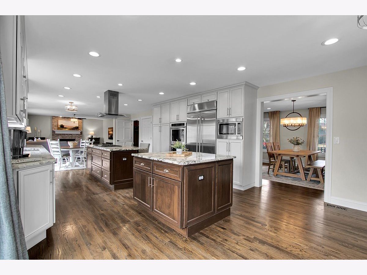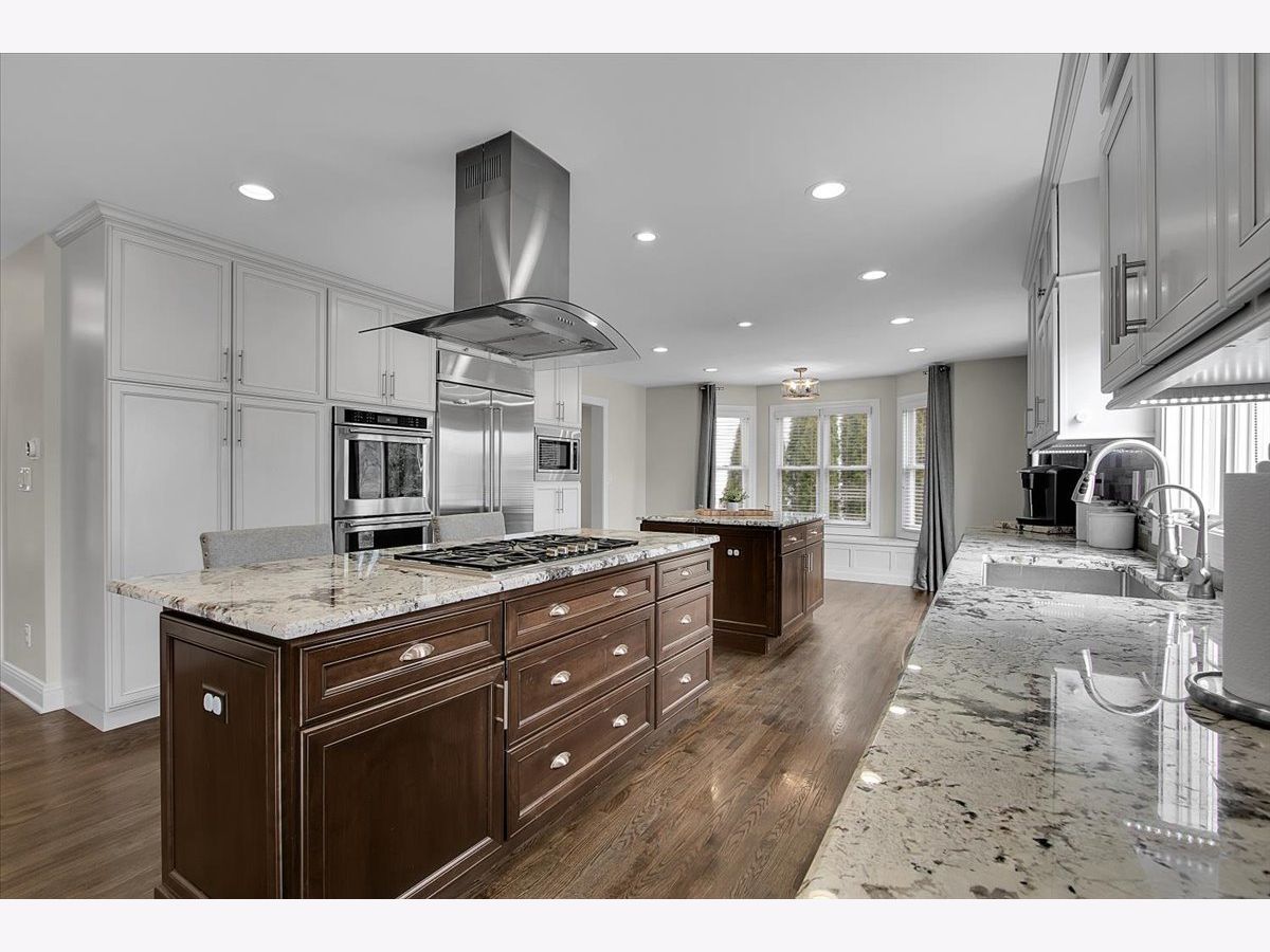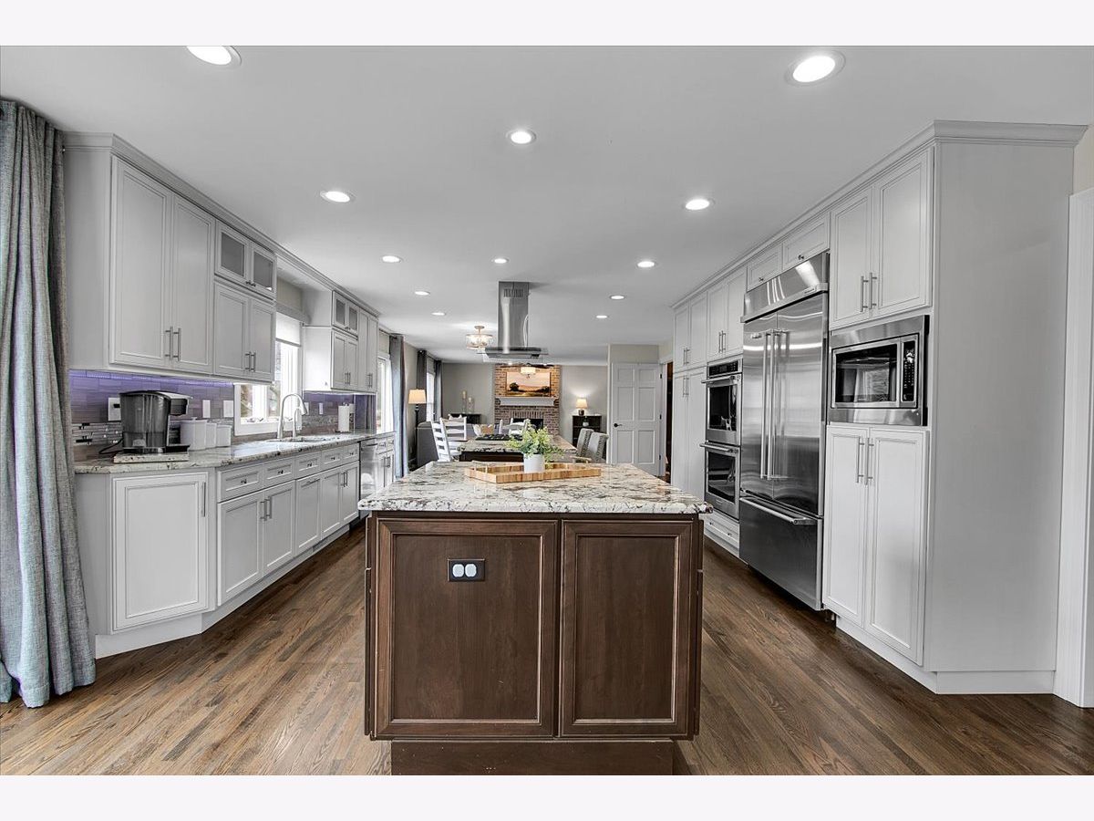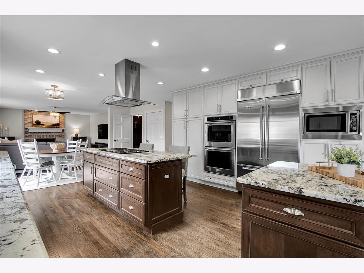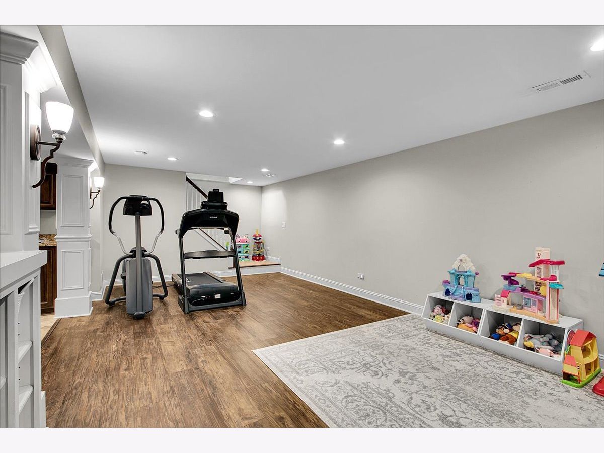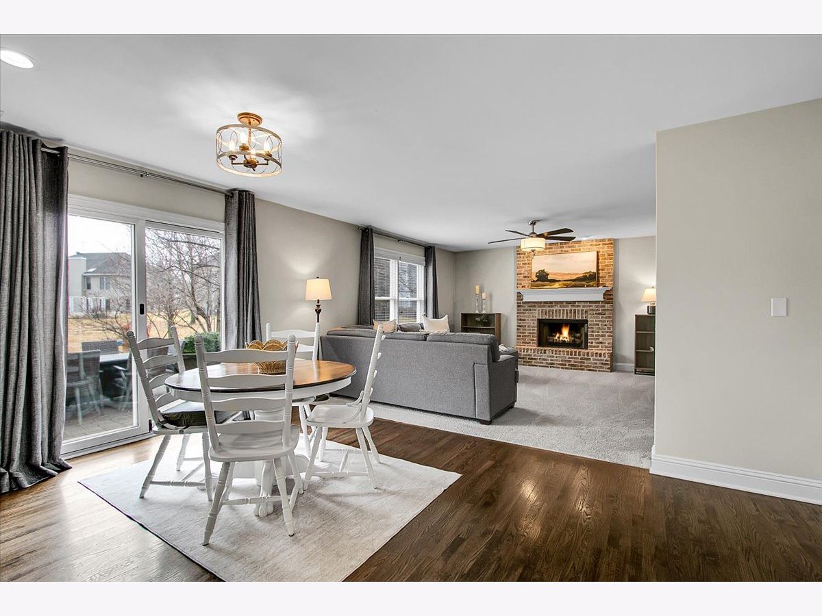 Blackberry Creek Pond Views | Finished Basement + New Roof & HVAC Experience Blackberry Creek living with scenic pond and walking-path views right from your backyard. This Georgian-style home welcomes you with a charming front porch and sun-filled interiors with hardwood floors throughout the main level. The spacious kitchen is built for gathering, featuring double islands, granite countertops, white cabinetry, and stainless-steel appliances, and it opens to the adjacent family room with a cozy fireplace. Host holidays in the formal dining room or enjoy casual mornings at the breakfast bar and breakfast area. Upstairs, retreat to the vaulted primary suite with a large walk-in closet and spa-style bath offering double sinks, a soaking tub, and a separate shower with full-body sprays. Three additional bedrooms, a full hall bath, and convenient second-floor laundry complete the upper level. The finished basement adds exceptional flexibility with a large rec room, second fireplace, wet bar, full bath, and a bonus room (plumbed for a sink) ideal for a studio, hobby room, or home office. Big-ticket updates deliver peace of mind: new roof, gutters, and downspouts (2025); high-efficiency furnace and A/C (Dec 2024); and new washer system with pedestal mini washer (perfect for small loads), plus new dryer and dishwasher (2025). The interior was repainted in 2022, so the home feels move-in ready. Additional features include a radon mitigation system, backup sump pump, and owned water softener. Relax on the patio overlooking the pond and walking path, and enjoy being close to schools, parks, Metra, shopping, and I-88.