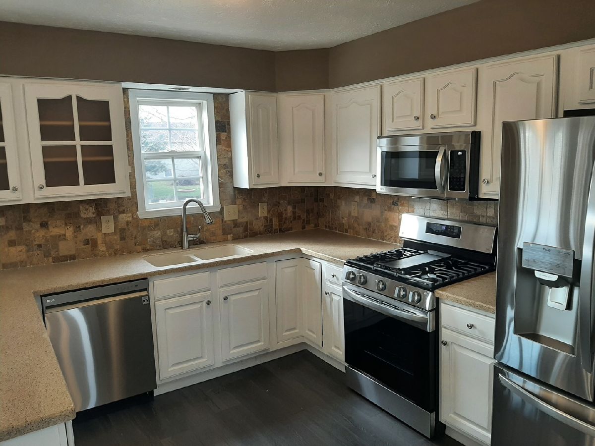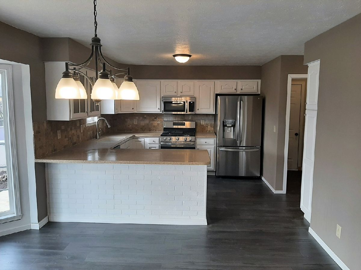 TRULY A MUST SEE!! Spacious 4 bedrooms, 2 full and 1 half baths, 3 car garage with insulated garage doors. The driveway has been widened for extra parking. Master bedroom boasts master bath and walk in closet. Living room with wood fireplace plus a family room on the main level. Nicely updated kitchen with table space and breakfast bar, plus a separate formal dining room. Kitchen and bathrooms boast Corian countertops. Enjoy the recreation room in the finished basement. Patio doors lead to a nice deck and fenced backyard. Deck around the pool is brand new. Professionally landscaped yard with beautiful trees for additional privacy. Brand New roof less than a month old! Brand new flooring throughout, brand new stainless steel kitchen appliances that come with a 5 year warranty. Home has been freshly painted throughout. Updated mechanicals: 90 % efficient TRANE furnace, central air, water softener, and water heater all approximately 6 years old. Taxes reflect no exemptions.