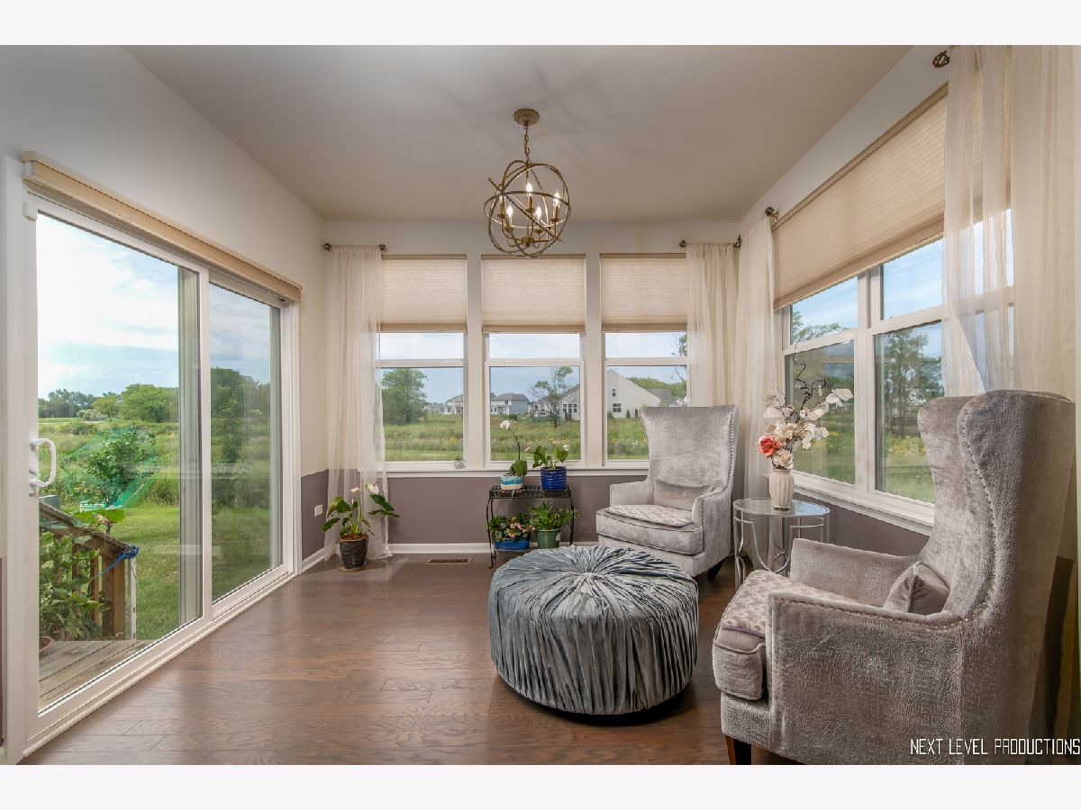 The largest Melrose model with premium lot ( $48,100 extra for the lot ) and back to wetland and walking trail . The total SF 3737, additional basement SF 2009. Open floor plan, Family room open to 2nd floor, dark Hardwood floor through out first floor. Beautiful nature view from family room,kitchen, Sun-room and office !! Gourmet kitchen with stainless steel appliances and large center island. granite counter top, 42" carbines , ceiling fan pre-wire, recessed Can lights, exterior vent @ range hood, computer planning center/kids homework nook off of kitchen area, rail and wrought iron spindle, 2nd floor Laundry room with utility sink. All bedrooms with walk-in closet and private bathroom. Basement with rough-in pluming. Minutes to I-88, the Rte 59 corridor and the Rte 59 train. And there's Pace bus service to the train station. Award-Winning Naperville 204 schools. Welcome home!!!