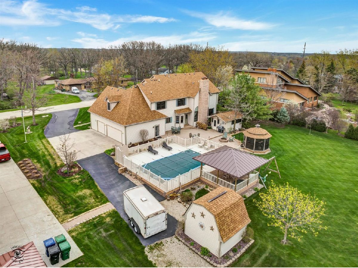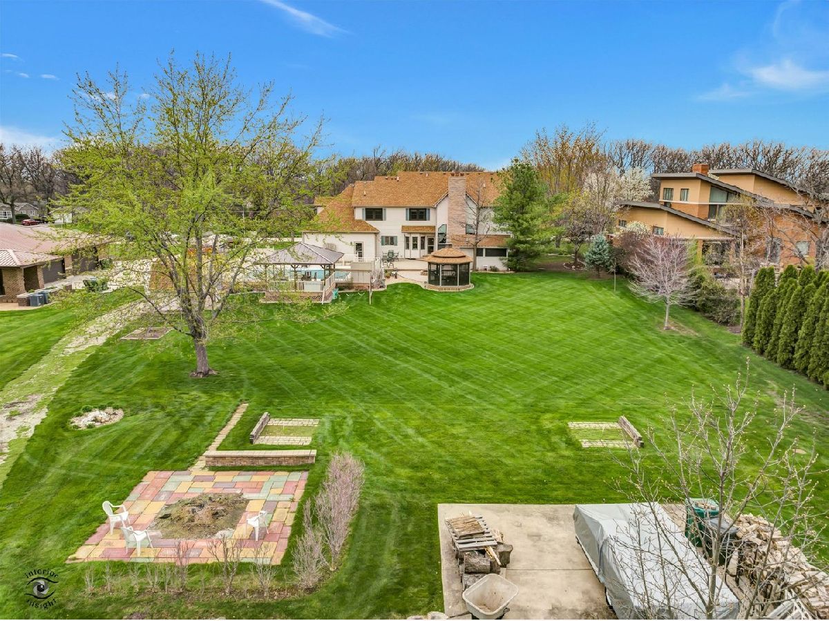 If a spacious, well-maintained 5 bedroom, 3.5 bath home with a LOFT, BONUS room, FINISHED BASEMENT and a BACKYARD OASIS complete with a sunken 15x30 oval POOL, tiki hut GAZEBO, fully screened in GAZEBO, HOT TUB/CHANGING ROOM, SHED, and two FIRE PITS is something you are looking for, you should see this one! From the moment you walk up, you will see the beautiful, spacious WRAP AROUND PORCH with ample space to sit outside. Entering through the updated front doors, the spacious foyer opens up to a two story entrance. Just to the right of the foyer is the formal dining room and to the left is the living room which has DOUBLE DOORS that open up to the front porch and is perfect as either a formal sitting area, a toy room, or an office. Just steps away you will find the spacious first floor bedroom. The stunning family room has a 22 ft tall FIREPLACE that leads to the SOARING CEILINGS. This room is fully wired for surround sound. Just off the family room is the eat in kitchen with ample table space, PANTRY, a look through countertop to the kitchen area, and custom cabinets. A couple steps away is the garage door access, a full bathroom with a stand alone shower, and the laundry room with a utility sink. Upstairs, you will find a loft area at the top of the stairs which is perfect for a little reading nook. The master suite is complete with hardwood floors, vaulted ceilings, a walk in closet, and a master bath with double sink, jetted tub, stand alone shower, and marble floors. Down the hall you will find three generous sized bedrooms with nice closet storage and a BONUS ROOM that can be used as either a SIXTH BEDROOM, as a TOY ROOM, as a GAME ROOM, or as a GUEST SUITE. This room also has a door that leads to the oversized garage below. The FINISHED BASEMENT has durable epoxy flooring, huge storage/utility area, large open recreational room, a huge bar, a half bathroom, and a separate sitting area that has the option to add a wood burner fireplace. The basement also has a staircase that leads up to the garage for additional access. You can't miss the OUTDOOR PARADISE: brick paver patio with a built in fire pit, sunken pool with a wrap around 43x34 maintenance free deck including an attached tiki gazebo, a 16 x 12 spa building which is perfect for a hot tub room and changing room due to the outdoor bathroom, a 12 foot fully screened in octagon gazebo, a swing set built onto the tiki gazebo, a separate 12 x 12 shed with a roll up door, a garden area, a large bonfire pit, a horseshoe game pit, and a 28 x 32 concrete pad perfect for a camper or a future poll barn. Updates and upgrades include: pool liner (2020), new roof on house and shed (April 2019), driveway (2018), gas line for pool heater, two AC units (2017, 2018), all bedroom windows and FR double hung windows replaced (2018), GFCI breaker for hot tub room if desired, while first floor has 3 ft doors and main level full bathroom for handicap accessibility, front door (2020), 9 ft ceilings on main floor, 6 panel solid oak doors, water softener (2019), central vacuum, 2 hot water heaters (2017, 2021). Wonderful schools, great community, and phenomenal property here in UNINCORPORATED Homer Glen with close interstate access - check this one out today!