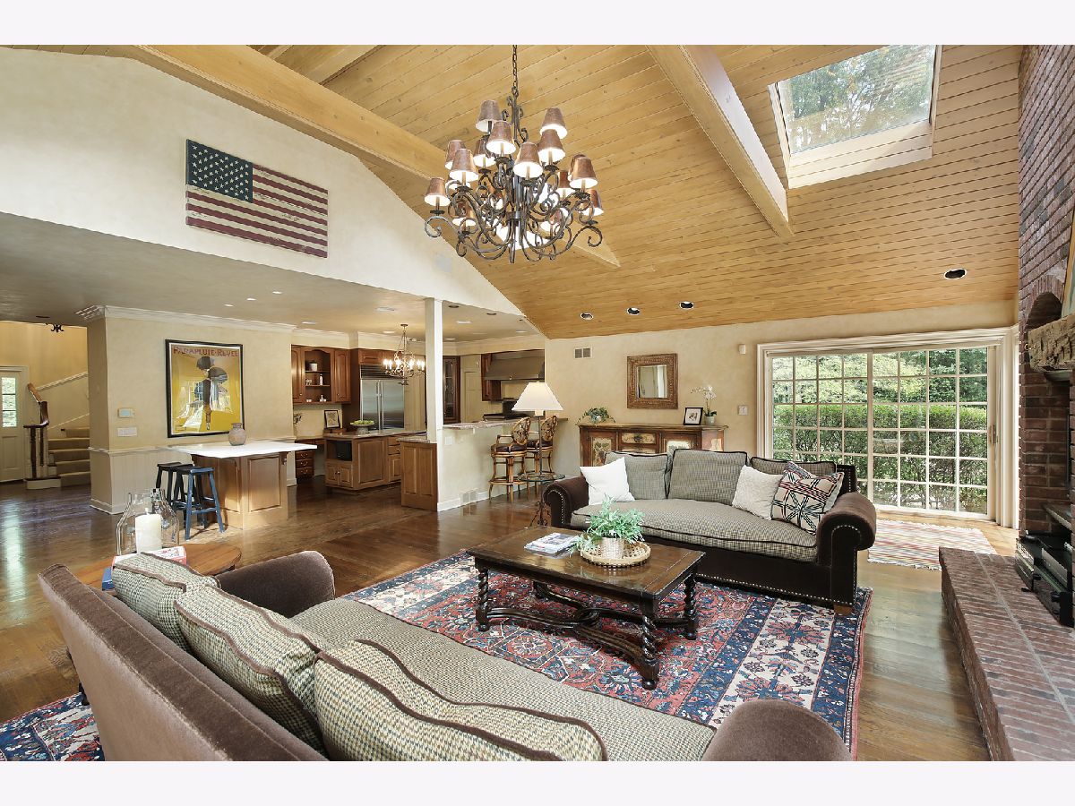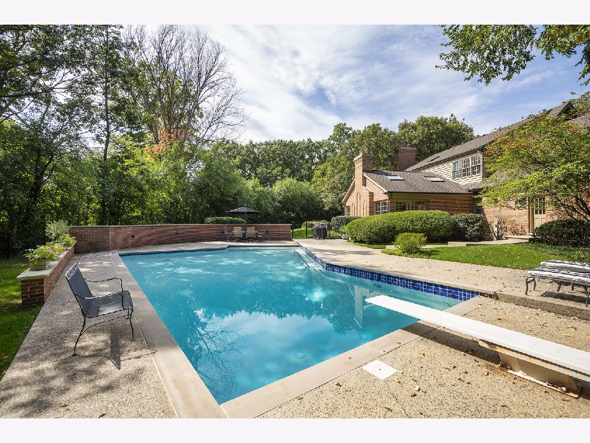 Set on 1.5 wooded acres in beautiful Lake Forest, this custom home offers 4,600 square feet of quality construction presented in a wonderful layout of light-filled rooms. The stunning entry leads you to the central foyer and grand staircase, with views of the sparkling pool and extensive grounds as soon as you enter the home. You are immediately drawn to the grand living room/great room with floor-to-ceiling brick fireplace, double-height beamed ceiling with skylights, and windows on three sides flooding the room with light. Three sliding doors provide easy access to the rear patio and pool making this home ideal for indoor/outdoor living. The living room is fully open to the spacious chef's kitchen, with SubZero and Wolf appliances, two center islands, and bar seating. A private office/library with built-in bookshelves and fireplace and a lovely sunny bedroom with attached full bath are also on the main floor, along with a full-sized laundry room, pristine 3-car-garage, and a spacious full bath/changing room with easy access to the pool. The rear staircase takes you directly to the spacious family room, perfect for a game room, exercise room, media room or all of the above! The second floor has 3 bedrooms with en-suite baths, including the sunny primary suite featuring an extra-large bath with dual sinks, walk-in shower, and copper soaking tub; spacious walk-in closet with built-ins throughout; and a large bank of windows overlooking the pool and grounds. The exterior is just as perfect as the interior, with a large heated pool, bluestone terrace, and extensive grounds. This home is a dream property in beautiful Lake Forest with the quality schools, charming downtown, easy access to trains, and special amenities the community is known for. This is a very special home that has been beautifully maintained and is move-in ready.