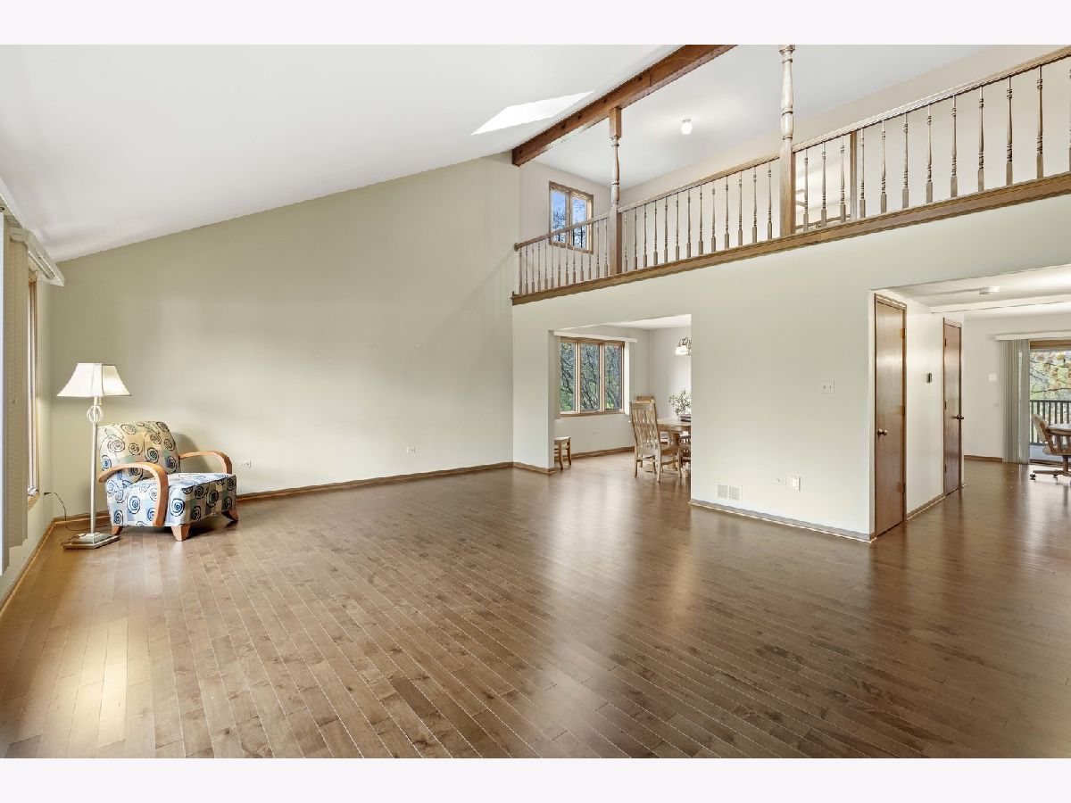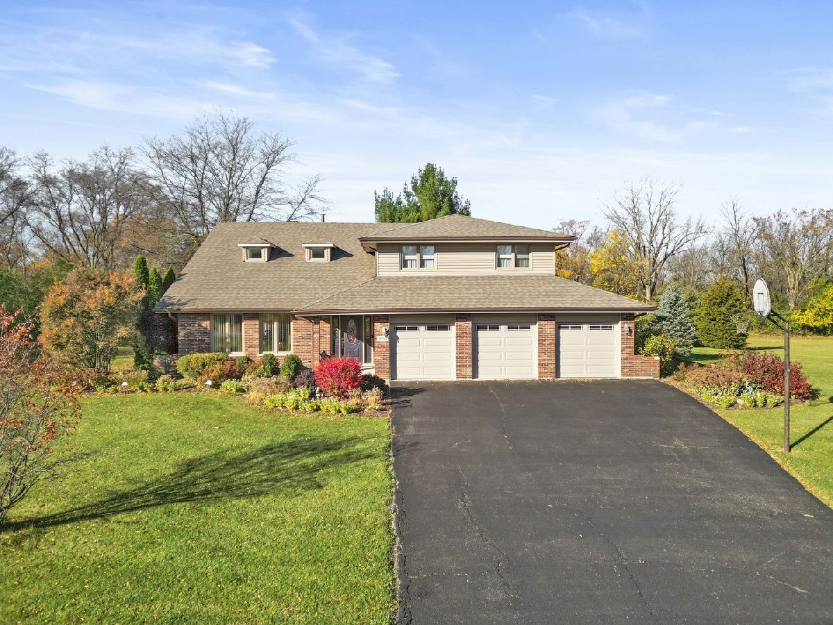 Welcome to this stunning home in the highly sought-after Cedar Glen neighborhood of Homer Glen, offering nearly 2 acres of possibilities! The expansive lot provides plenty of room for a dream garage or a swimming pool. This massive fane model home boasts over 4,000 square feet of finished living space and features a floor plan perfect for large families or those who love to entertain. As you enter, you're greeted by glistening maple hardwood floors and soaring vaulted ceilings. The sun-drenched front room, featuring large windows and skylights, is perfect for relaxing. The kitchen, overlooking the tranquil backyard, includes solid wood cabinets and newer stone countertops. A den off the family room provides an ideal space for working from home, or could easily be converted into a 5th bedroom. A full bath on the main level adds convenience. Upstairs, you'll find two additional full baths and generously sized bedrooms. The finished basement offers more living space and a large back area for storage or a workshop. This incredible property backs to serene forested land, offering one of the best lots in the neighborhood. Opportunities like this don't come up often. Close proximity to highways, dining, and shopping add to this home's desirability!