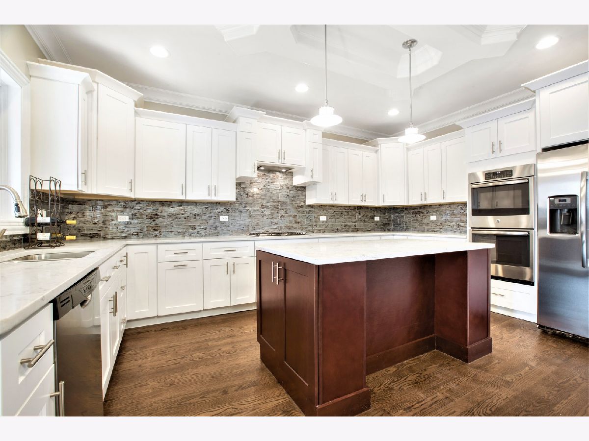 New Construction Proposed Townhome in Elk Grove Village. The kitchen offers 42" custom cabinets, granite countertops, Moen faucets, ceramic title, 9 foot 1st floor ceilings. Dining room finished with crown molding. Family room fireplace with custom oak mantle with raised hearth in family room and two can lights overhead. This townhome features 4 bedrooms, 3 1/2 baths, and a 2nd floor laundry room. Master bathroom with whirlpool tub and a separate shower, granite vanity tops in all bathrooms and Moen faucets, ceramic tiles in bathrooms. Interior features 3/4 inch oak flooring in dining room, living room, family room, foyer and study room. Custom oak stairs and railings. Pella windows "High profile" with fold-a-way handles, custom drywall arches, 50gallon high recovery water heater, American standard furnace, 200 AMP. Electrical service, inside home sprinkler system, 2 car garages, with drywalled interior. Exterior features include: Aluminum "Pella" clad windows, brick and stone accents.