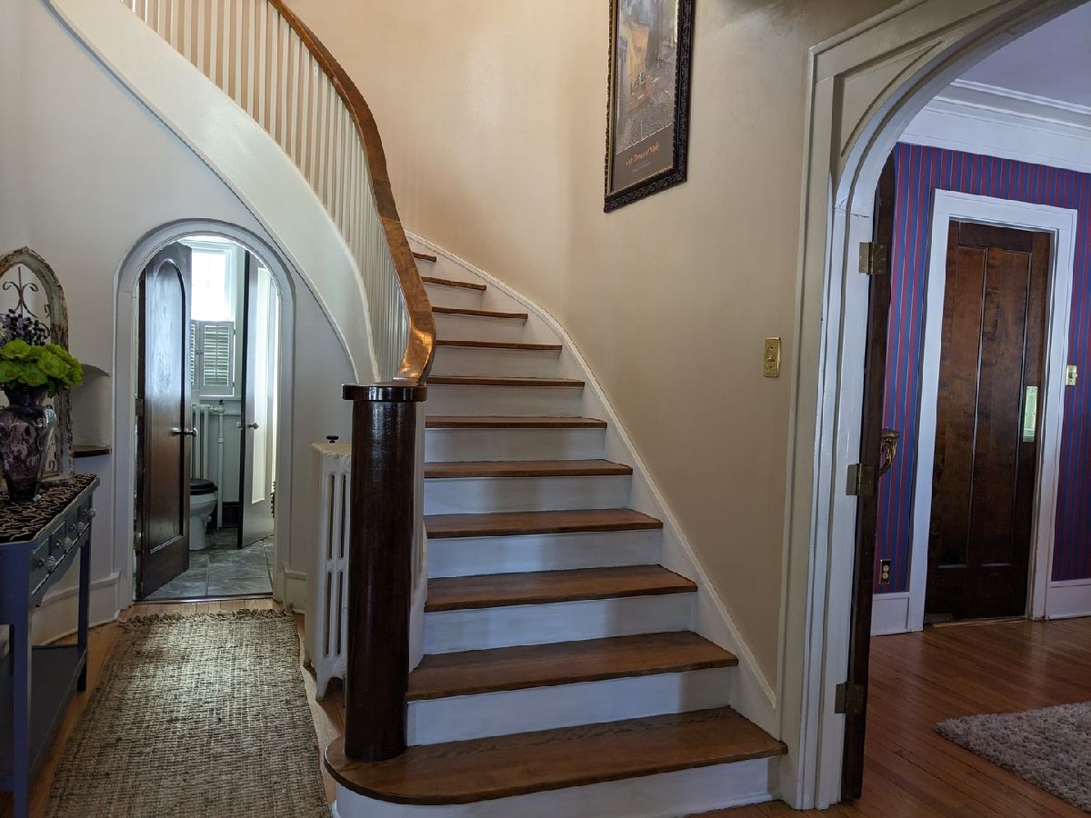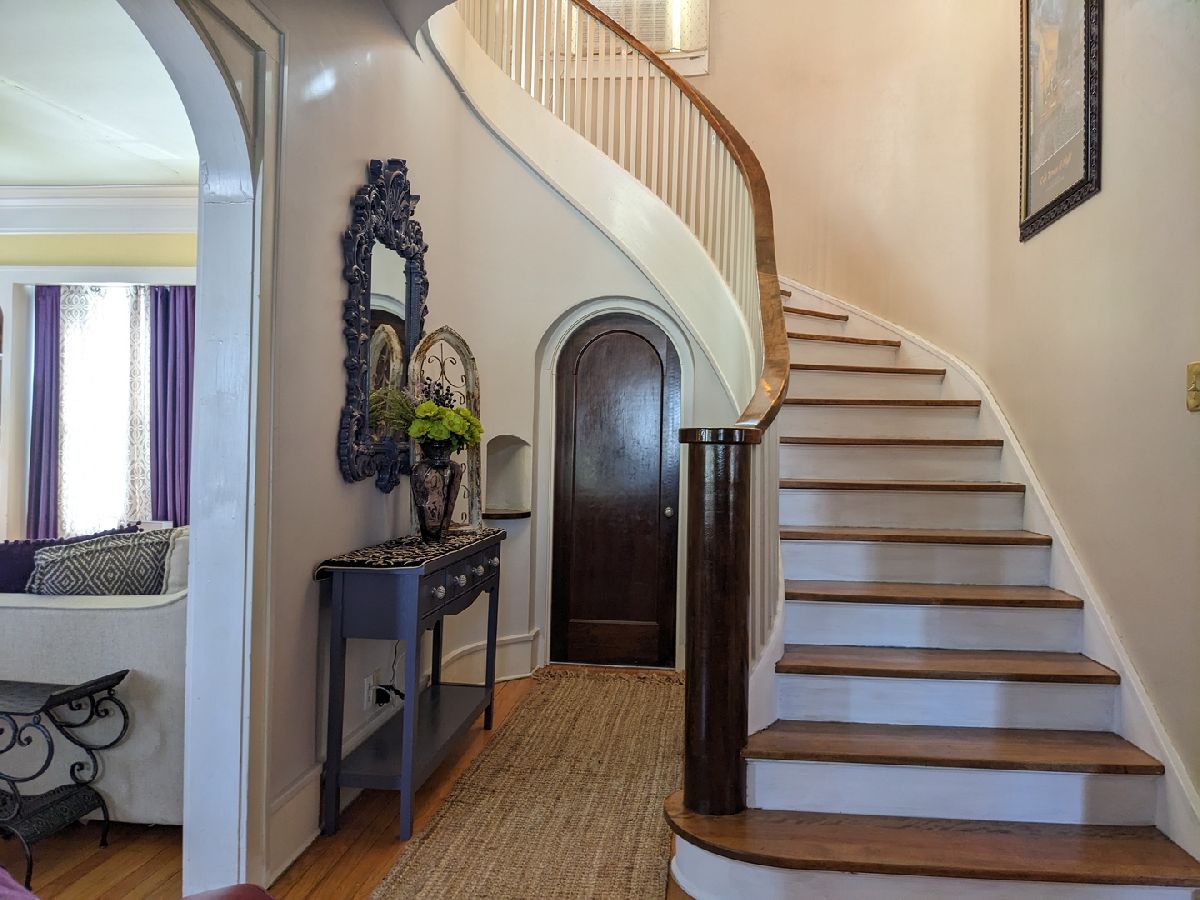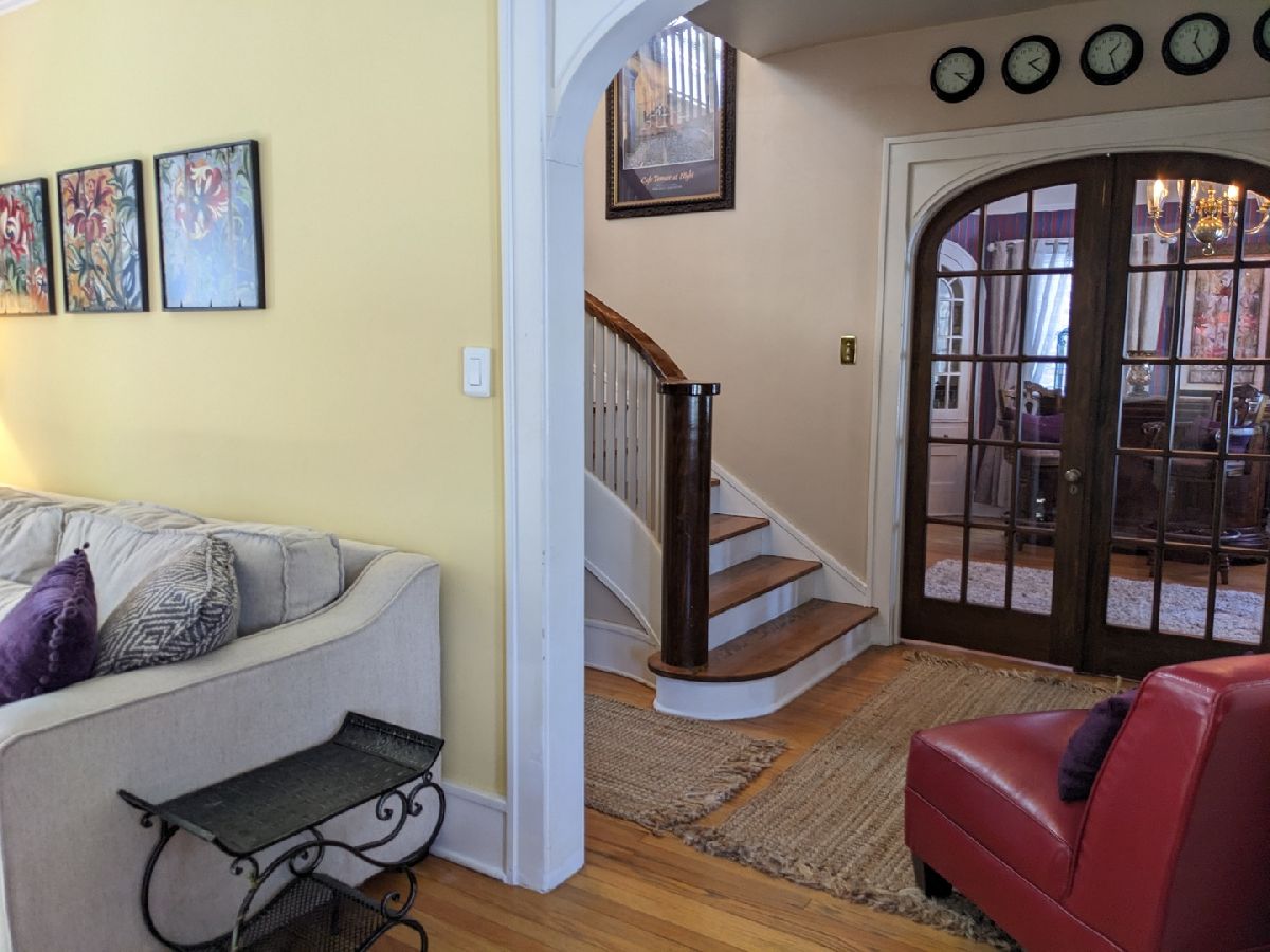 Prepare to be wowed. Large covered front porch leads into a large open entry with gorgeous curved staircase and hardwood floors throughout. Living room features arched opening, wood burning fireplace with a 4 season sunroom and access to maintenance free deck. Dining room has curved French doors, covered built ins and door to kitchen. Spacious bright kitchen with recently updated appliances and convenient double entry half bath. Upstairs large landing has built in linen storage. 2 bedrooms have access to a bonus room that could be a private office or play room. Full bath features tub and stall shower with built-in cabinets. Oversized master has 3 closets and French doors open plus could be a future balcony. Finished room in basement makes a great rec room and loads of storage. Private backyard has 1 car garage. New windows on back of house, new window air 2020, new water service from street 2019, Home features 6" gutters with covers. Great location, don't miss this one!