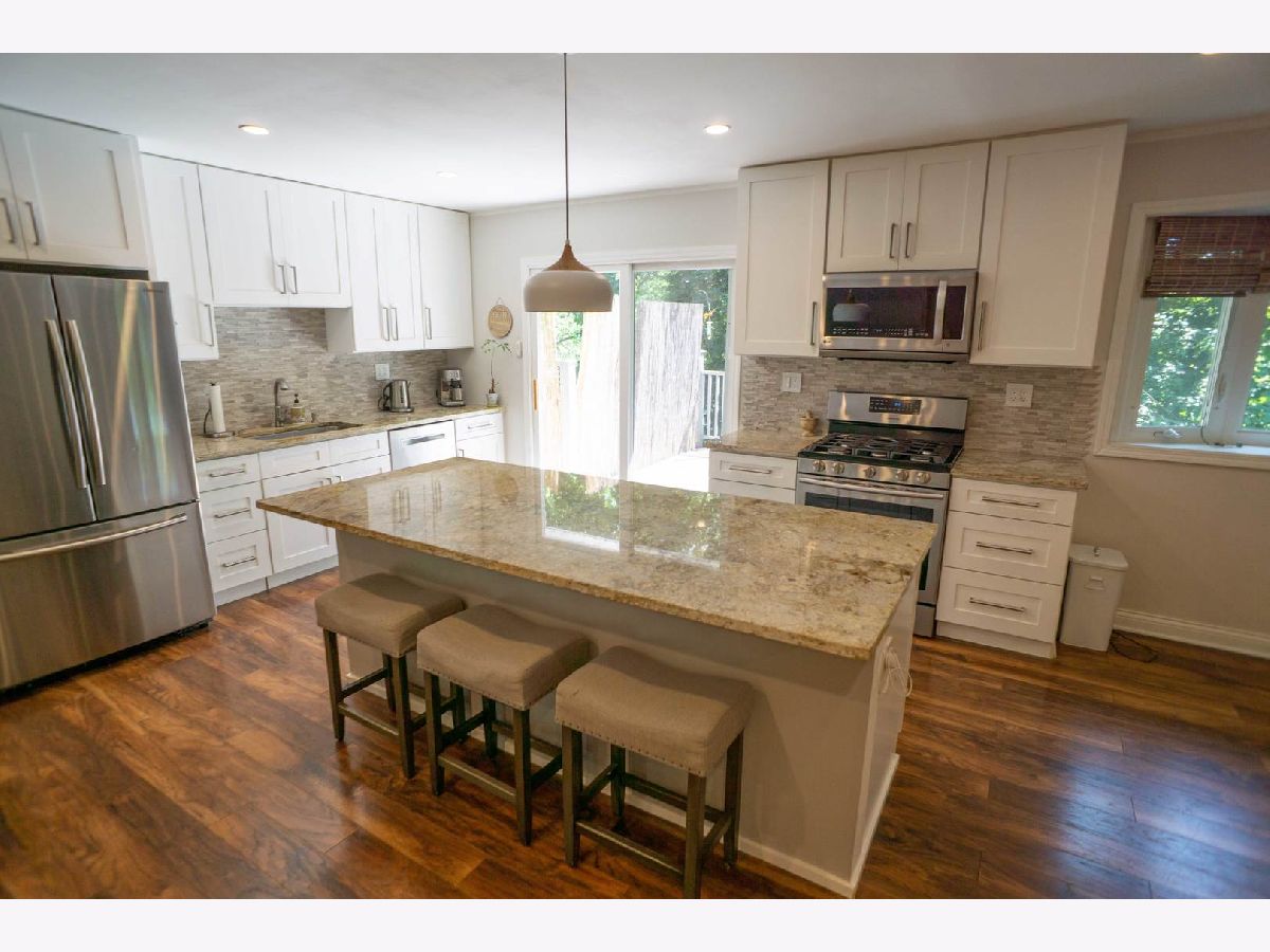This spacious and beautifully maintained home has 3 bedrooms, 3 full baths. Fabulous cul-de-sac location! Walking distance to Deer Grove Forest Preserve with bike and walking trails. Wood laminate flooring throughout. Rec room with concrete floor has slight fracture "As Is" Newer white kitchen with granite counter top. Open floor plan. Wood burning fireplace in family room. Beautiful deck with private fence huge yard. Easy to show!!