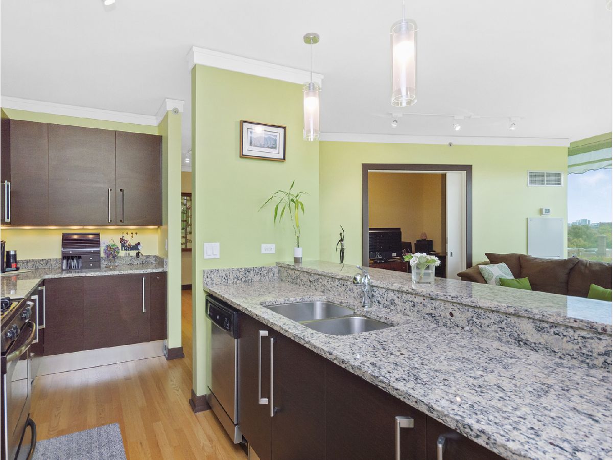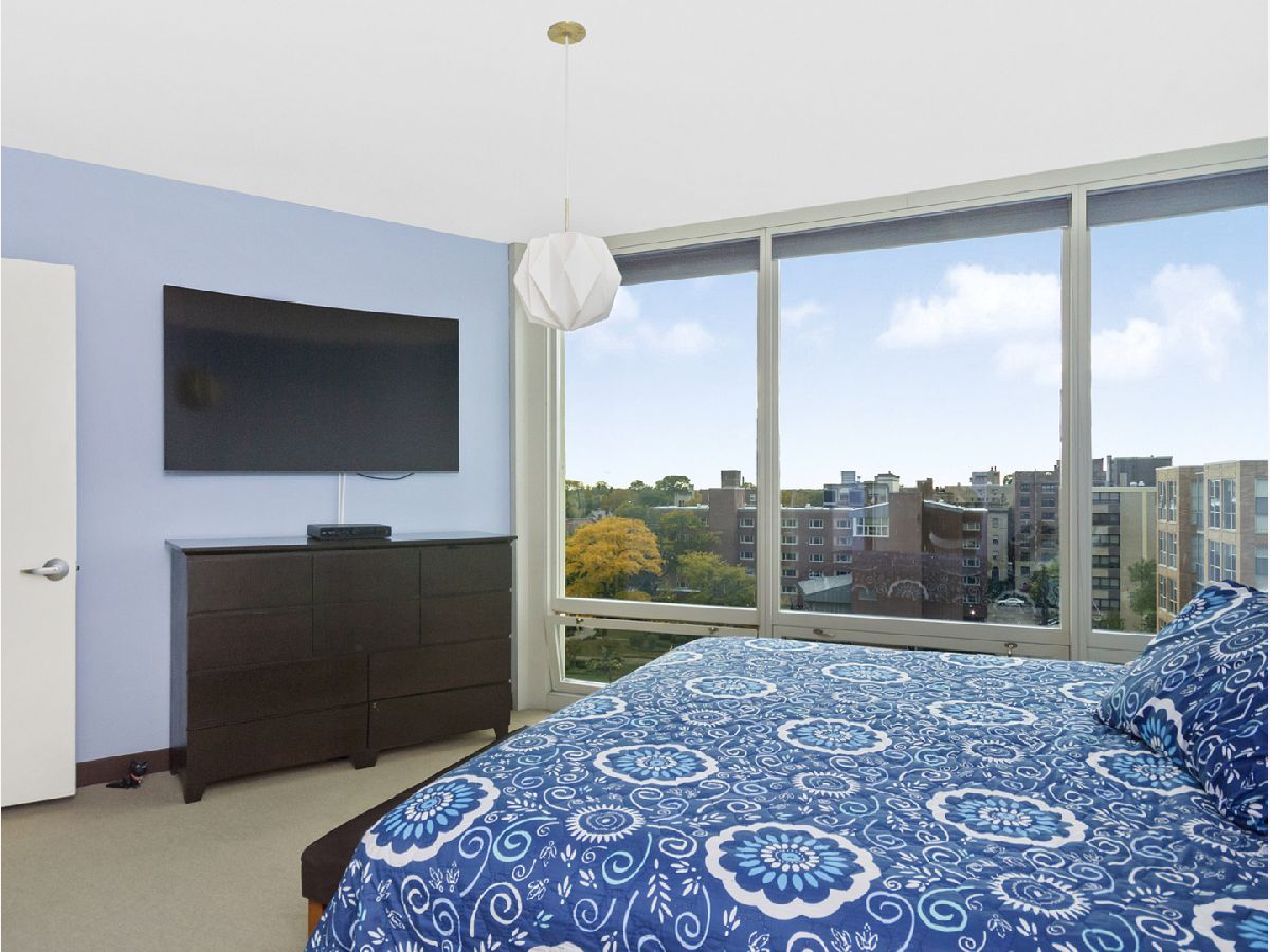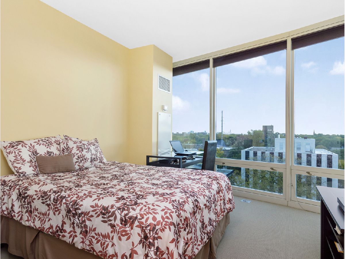 Extraordinary Full-Amenity Building in downtown Evanston! The unit has just been completely painted a bright and neutral white. This fabulous light-filled 3-bed 2-full bath, end-unit condo home has south & west views of Chicago's skyline & brilliant sunsets! Open & airy unit has floor-to-ceiling windows, hardwood floors in living room w/ cozy carpet in bedrooms. A welcoming foyer greets you w/ a large coat closet for lots of storage. Large open kitchen w/granite breakfast bar, SS appliances. En suite primary bedroom w/ 2 large custom closets, soaking tub, separate shower & large dual sink vanity. Jumbo laundry room features full-size washer/dryer. Building amenities include 24/7 concierge, indoor pool, whirlpool, fitness room & party room w/ access to rooftop terrace. plus a large storage unit (#48) is included as are 2 side-by-side deeded pkg spots also included in price (#421 & #422). Unit conveniently located w/ easy access to both METRA & CTA Purple Line trains. This end-unit home is remarkably quiet--so enjoy cool lake breezes via open windows or out on your large balcony! Walk to theatres, shops, dining, cafes, gyms, the lakefront, the University, & more!.