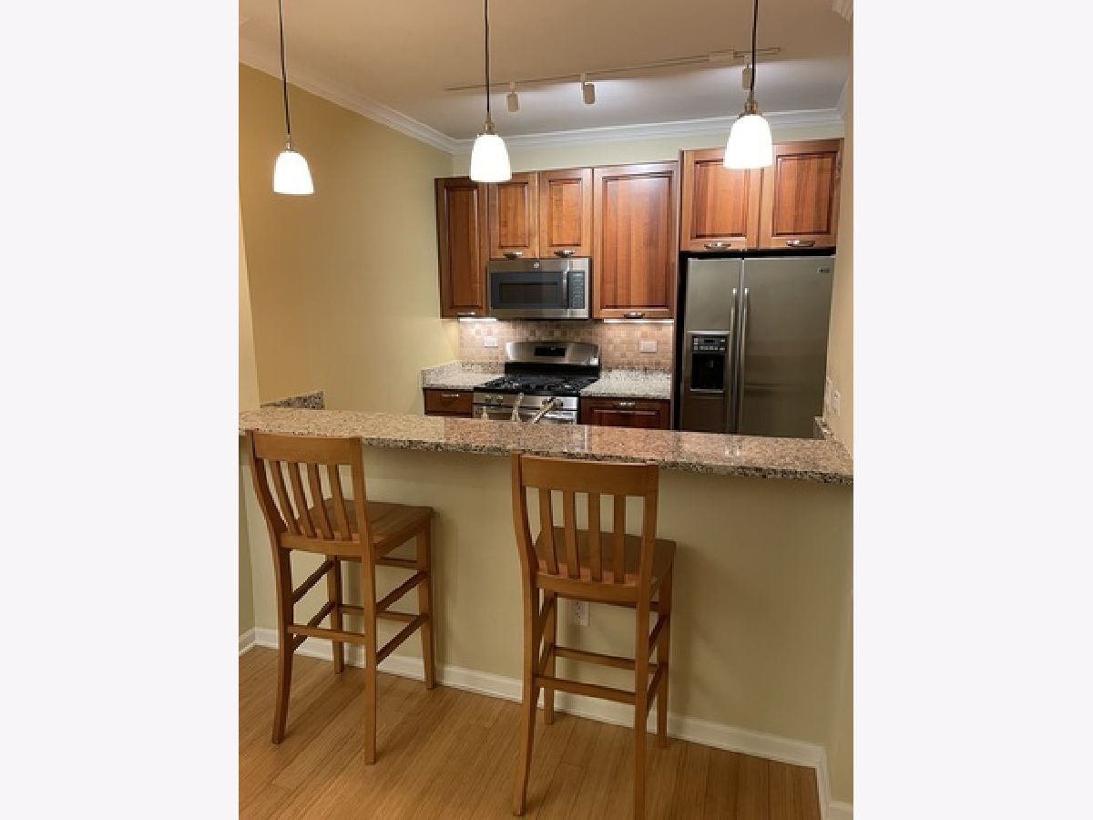 Luxurious 1 bedroom condo with 9 ft ceilings, hardwood floors, open kitchen with upgraded cabinetry, GE stainless steel appliances, granite countertops and breakfast bar. Large Living room with private balcony and amazing views of Chicago skyline. Bedroom has two closets with custom built-ins. Building amenities include a private parking spot, 24-hour door security, indoor pool, whirlpool, exercise room, meeting/party room with access to roof top terrace/sundeck, bike room, storage area. Pets welcome. Prime location, just steps to downtown Evanston, Metra and CTA.