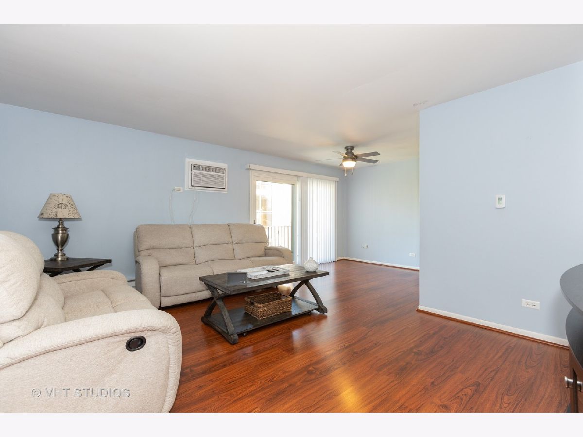 THIS IS A MUST SEE. NICE AND OPEN CONDO BRIGHT AND AIRY, LARGER THAN YOU WOULD THINK. TASTEFULLY DECORATED WITH MOSTLY NEWER APPLIANCES AND A BRAND NEW ARE TWO CEILING FANS, DISHWASHER, SLIDING GLASS DOOR WHICH TAKES YOU OUTSIDE ON TO THE SPACIOUS BALCONY. NEWER LAMINATE FLOOR AND AIR CONDITIONER. BATHROOM REMODELED JUST LAST YEAR. SPACIOUS TWO BEDROOM CONDO WITH GENEROUSLY SIZED BED ROOMS. ON-SITE LAUNDRY ROOM CONVENIENTLY LOCATED ON FIRST FLOOR. MORE STORAGE IN THE ATTIC WITH PERSONAL STORAGE LOCKER. NEARBY WALKING TRAILS AND TENNIS COURTS AROUND THE CORNER. ALSO FEATURES CLUBHOUSE AND POOL IN THE COMPLEX. CONVENIENTLY LOCATED CLOSE TO METRA, SHOPPING AND RESTAURANTS. CLOSE TO I57, I80 AND 294. SO MAKE YOUR APPOINTMENT NOW TO LOOK.