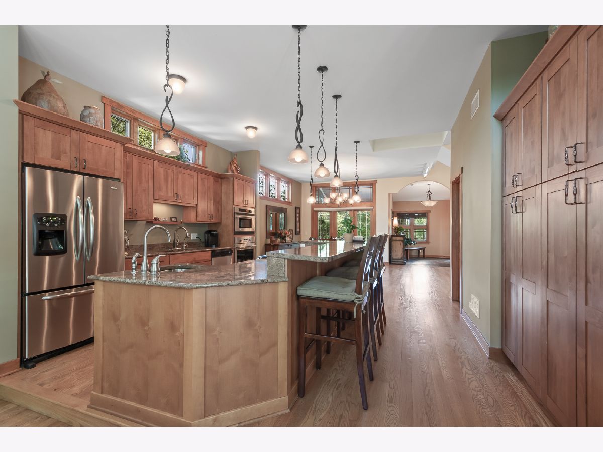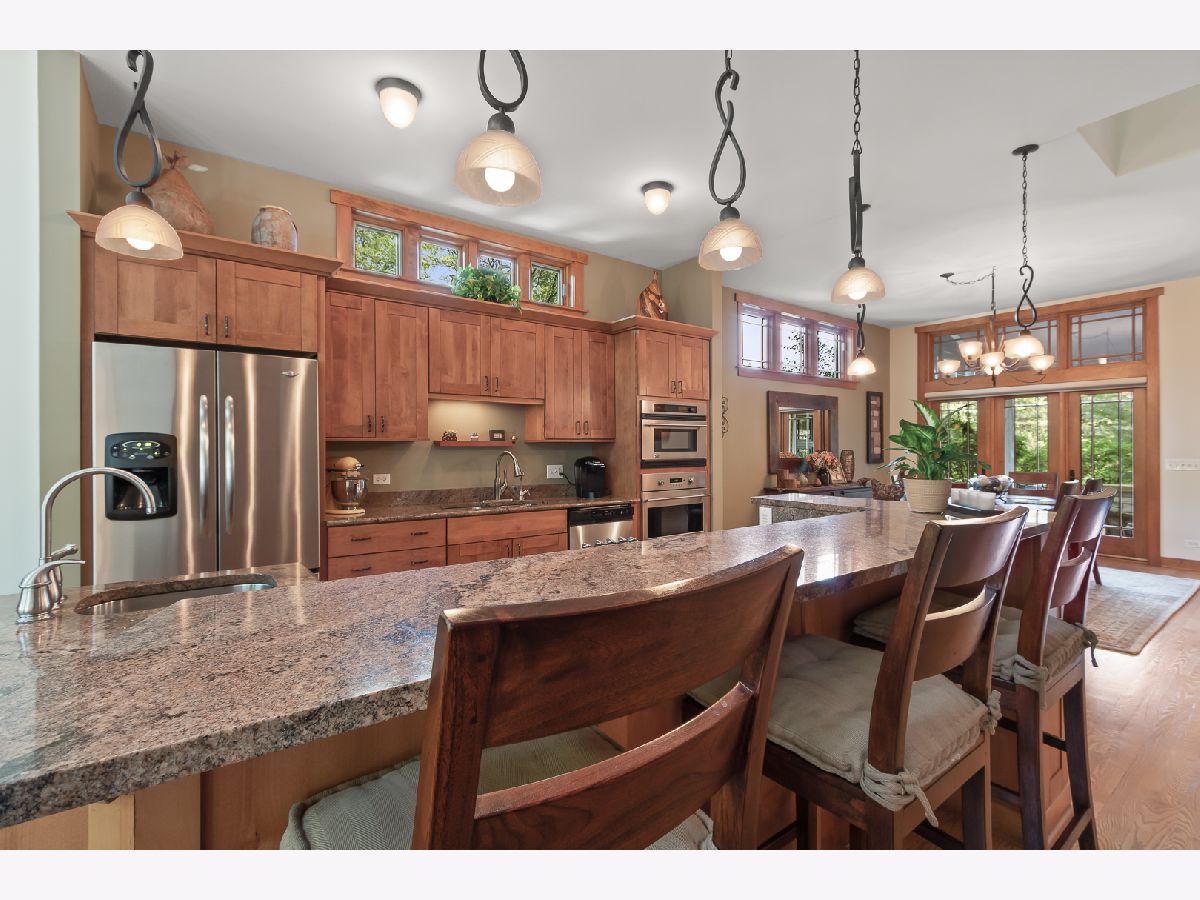 This stunning Frank Lloyd Wright-inspired home is a true masterpiece of architectural design. The home boasts 4 spacious bedrooms and 3.1 bathrooms, providing ample space for comfortable living. Every inch of the home was updated in 2008, ensuring that it features all the modern, top of the line amenities and conveniences one would expect in a luxury home. As you approach the home, you'll immediately be struck by its impressive facade. The home's clean lines and large windows are all hallmarks of the Prairie Style Home. The expansive driveway leads to an oversized garage, providing plenty of space for multiple vehicles, and includes a workshop and cedar closet. Upon entering the home, you'll be greeted by an open and airy living space that flows seamlessly from room to room. The home's spacious kitchen is a chef's dream, featuring top-of-the-line appliances, custom cabinetry, and beautiful granite countertops. The adjacent dining room leads to the front covered patio and is perfect for hosting dinner parties and entertaining guests. The home's 4 bedrooms are all generously sized with floor to ceiling windows for added natural light. The primary bedroom is a true oasis with a sitting area, walk out balcony, and en-suite bath featuring a luxurious oversized, enclosed steam shower. The other 2 bedrooms share an additional full bathroom, with a lower level bedroom boasting an en-suite bathroom, this home is ideal for multigenerational families and guests. This gorgeous home is situated on just over half an acre of professionally landscaped lush grass and perennial gardens . The lush greenery and mature trees provide plenty of privacy, while the expansive patio is perfect for outdoor gatherings and barbecues. In summary, this home is a true gem. With its impeccable design, luxurious amenities, and beautiful setting, it offers a unique blend of style and comfort that is sure to impress even the most discerning buyer. This home, with 20' ceilings in the great-room, is a masterpiece of design and craftsmanship. Conveniently located just minutes from shopping, dining, and entertainment. 2 newer furnaces (2019/2020) Septic Tank (2019) Well Pump (2019) Reverse Osmosis water system (2022) Front Load Washer & Dryer (2023)