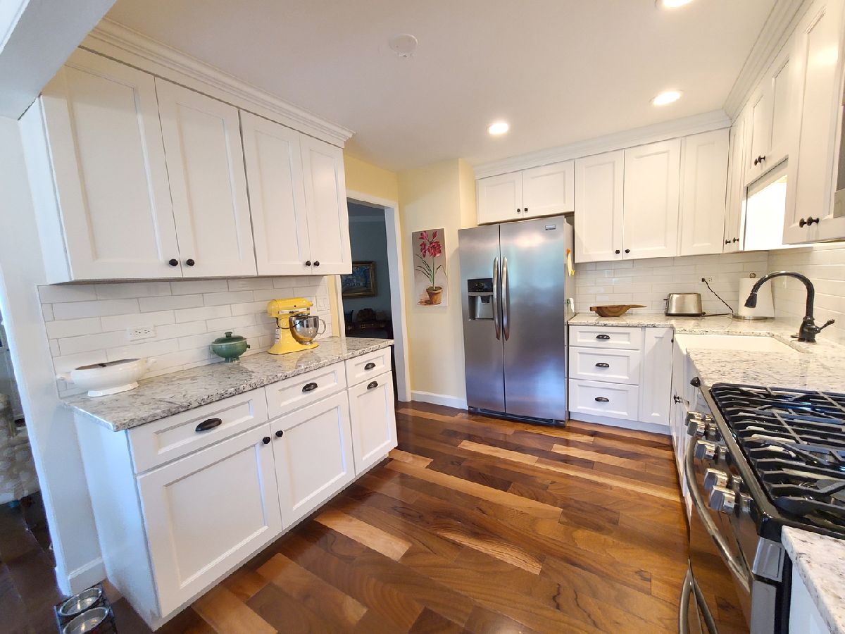 This beautiful first floor condo has been updated from top to bottom and backs on to a lovely huge open greenspace. The kitchen is top notch with farm sink, all stainless appliances, beautiful granite countertops, subway tile backsplash, hardwood floors flowing into the spacious dining room and living room. Bright sunny unit! New light fixtures and cozy gas fireplace. Slider out to the very private patio and sprawling green space. Two full baths. The master bath has Carrera Marble floors and nooks & on the wall. Walk in shower with grab bar. Lovely freestanding white vanity. Bath two has been beautifully updated as well with a white & gray pallette; white vanity, marble top and bathtub. In unit laundry, spacious bedrooms, private attached garage, no neighbors behind you, single level living....don't miss out on this special unit!!