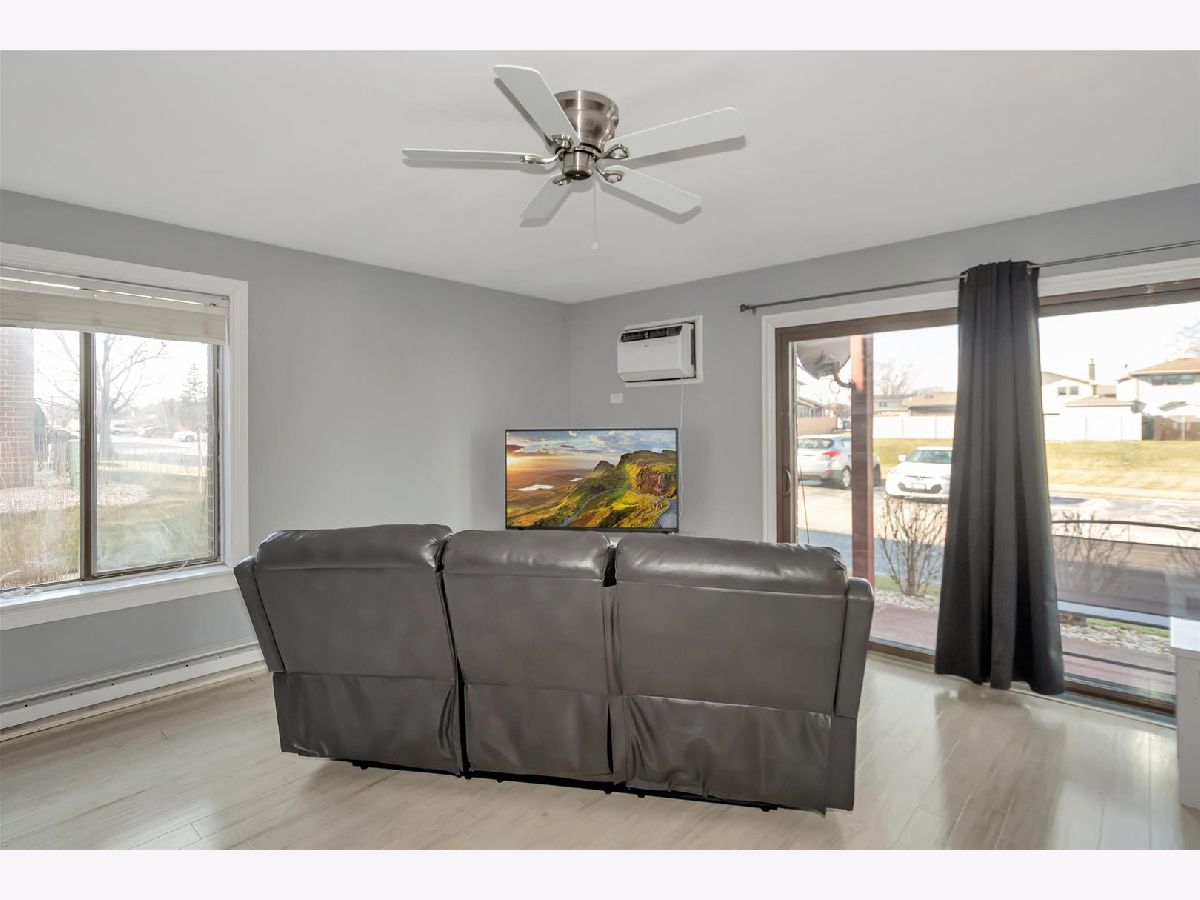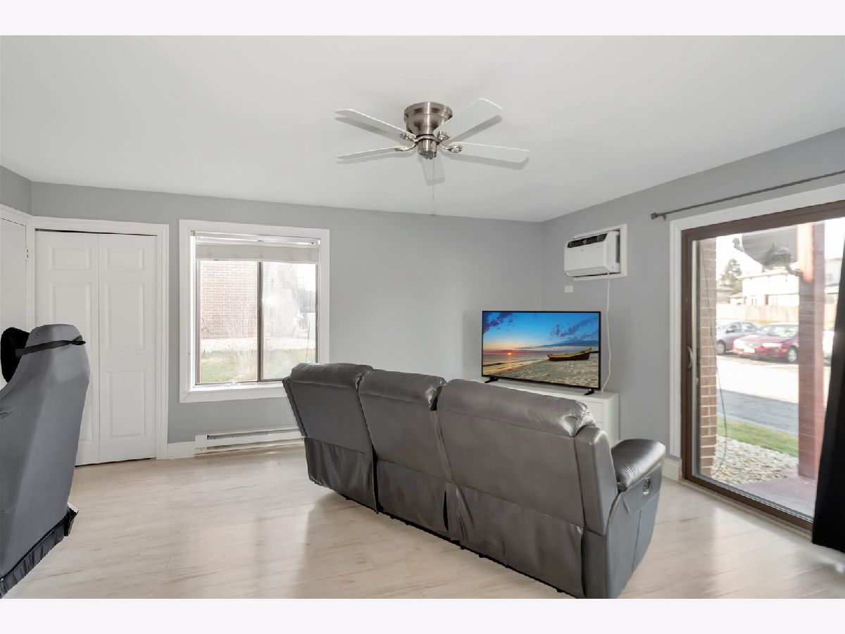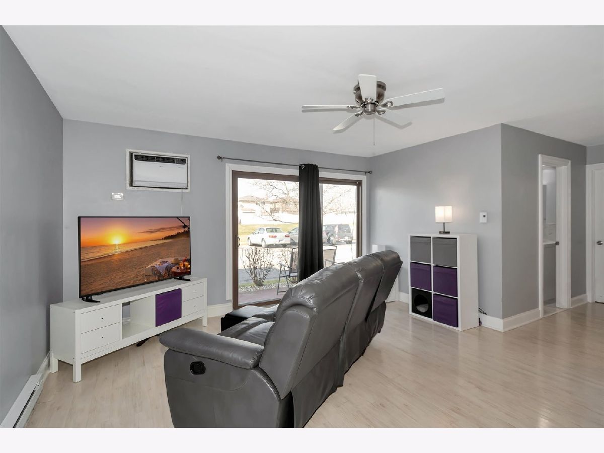 This is a lovley and updated First Floor unit!! There are newer patio doors off the living room. Enter your unit directly through the patio doors, very convenient when bringing in groceries! Updated fully functional kitchen. Updated bath. Newer wall unit A/C which provides plenty of cooling. This is a great starter home or perfect for a downsizer, sure beats renting. One parking space is assigned, however there are ample parking spots. This home is light and bright and very inviting. In the summer enjoy hot days in the community pool. This is a great opportunity to own a first floor condo just minutes from the Metra station or from I-57. This home will not disappoint.