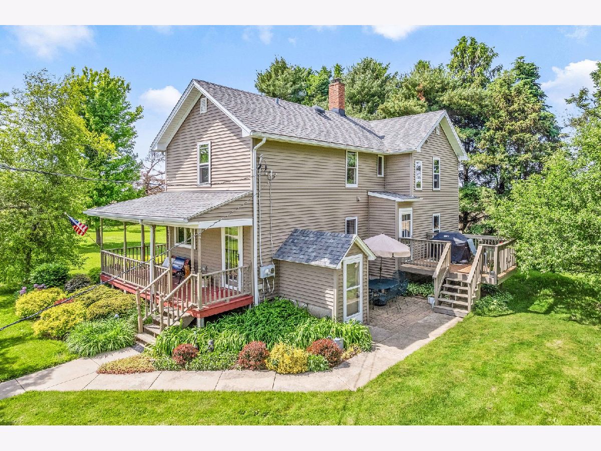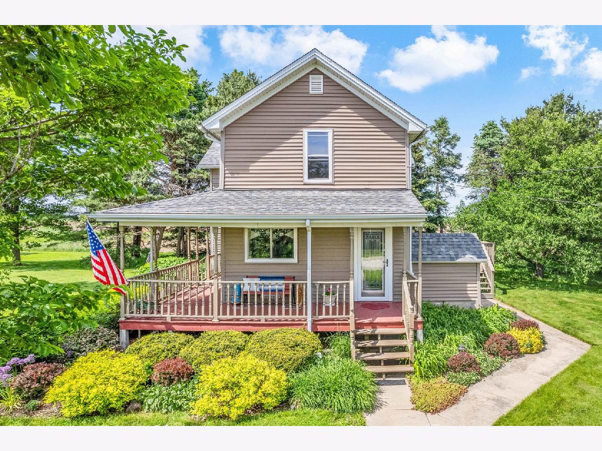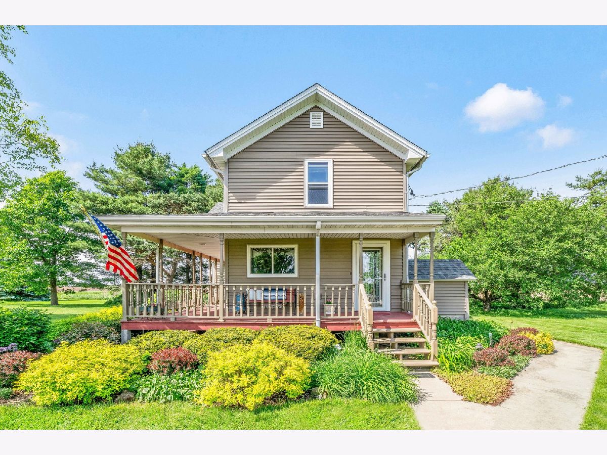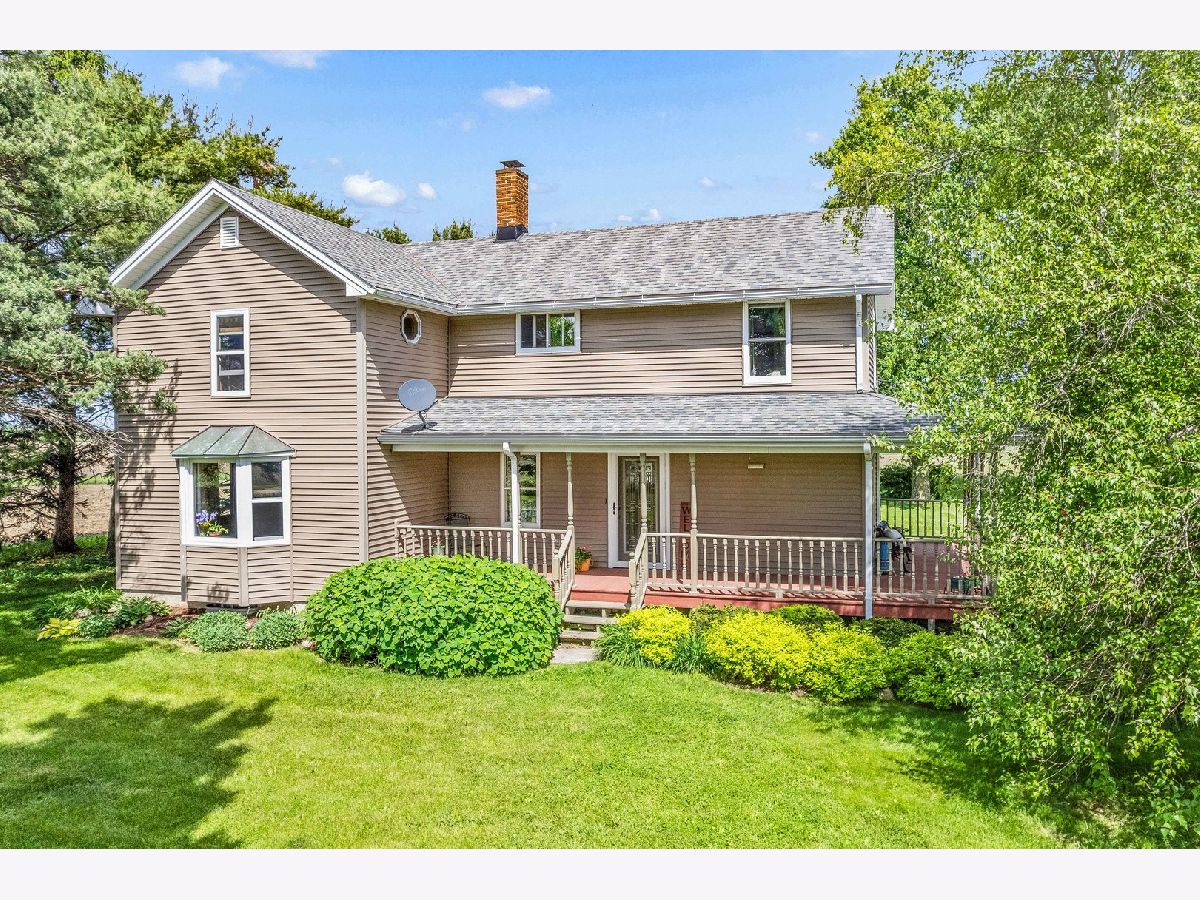 Nestled on a picturesque 5-acre lot, this charming country home offers breathtaking scenic views and an abundance of natural beauty. The home features a wrap-around porch perfect for enjoying the serene surroundings. Inside the 4 bedroom 2 bath home, you'll find maple hardwood flooring throughout the first floor and oak hardwood flooring in the kitchen, providing a warm and inviting atmosphere. The home includes a 32x28 Corn Crib and a 48x30 Machine Shed, along with a two-car garage, all boasting a new roof and vinyl siding installed in 2018. Outside, immerse yourself in the splendor of wildflowers, a flourishing hay field, and delicious produce from the golden delicious apple tree and wild raspberry bushes. Additionally, this idyllic retreat is within the esteemed HINCKLEY BIG-ROCK SCHOOLS district, making it the perfect place to call home