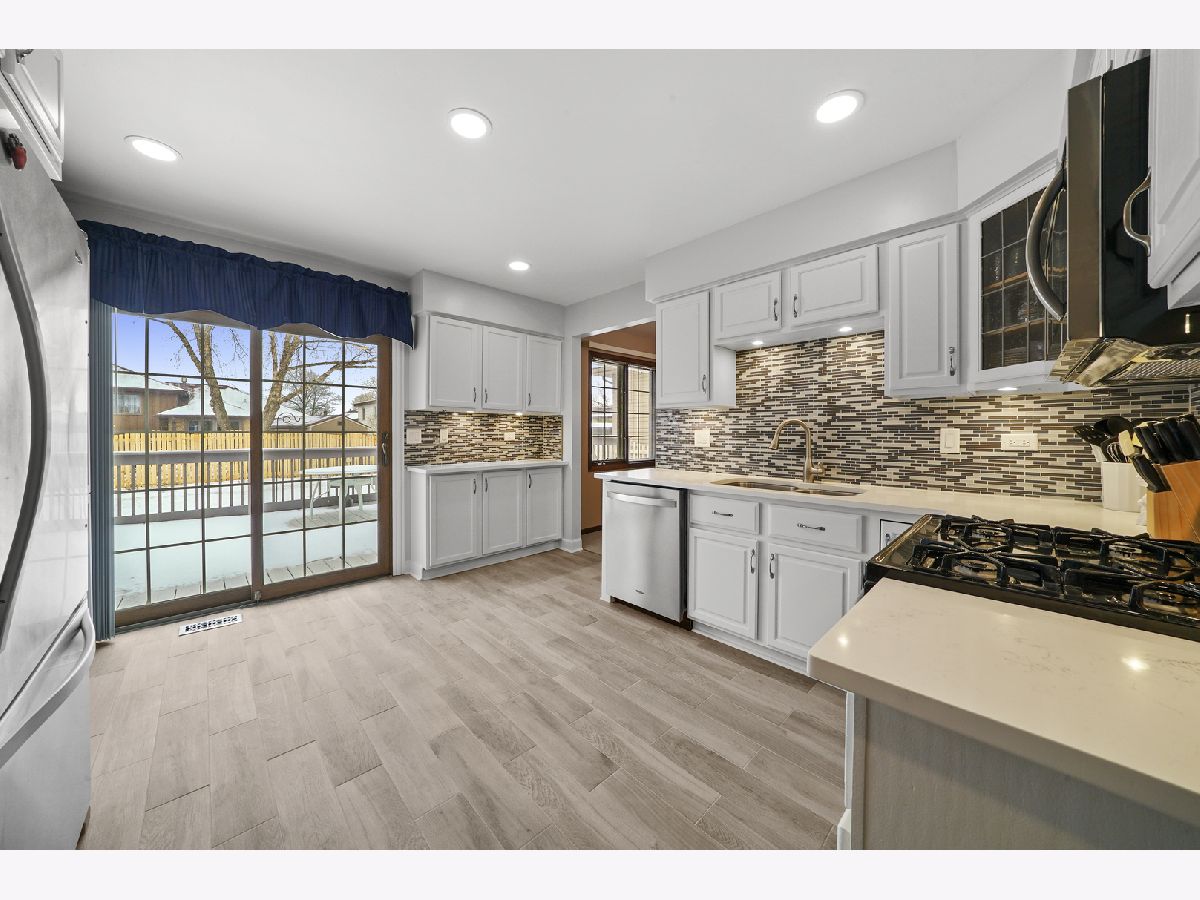 Don't miss this brick beauty with beautiful views of the Forest Preserve! This lovely home features big, sunny rooms, a gorgeous brand-new kitchen with quartz countertops and stainless steel appliances, 3 spacious bedrooms on the upper level, and on the lower level, an inviting family room with fireplace & plush new carpeting, plus a big, separate large laundry room with exterior access. The fenced backyard is beautifully landscaped and perfect for entertaining and relaxing. All the updates you need for care-free living have been done for you: Roof, gutters and downspouts 2014, Furnace and Central air 2014, Hot water heater 2013, Ejector pump 2013, Kitchen 2019, downstairs Shower 2013, Sump pump 2020, new can lights 2019, Washer & Dryer 2016, Upstairs Window 2018, Kitchen Sliding Door 2011, Deck restained 2020. This home is centrally located to I-294, I-80, Metra trains, shopping and dining, parks and schools. This warm and inviting home is sure to make your family happy for years to come, make your appointment to see it!