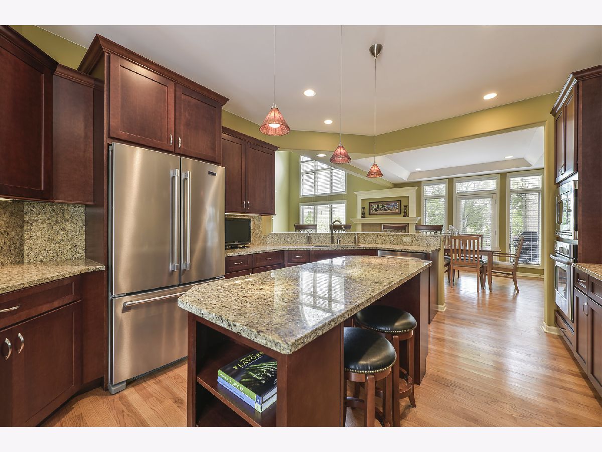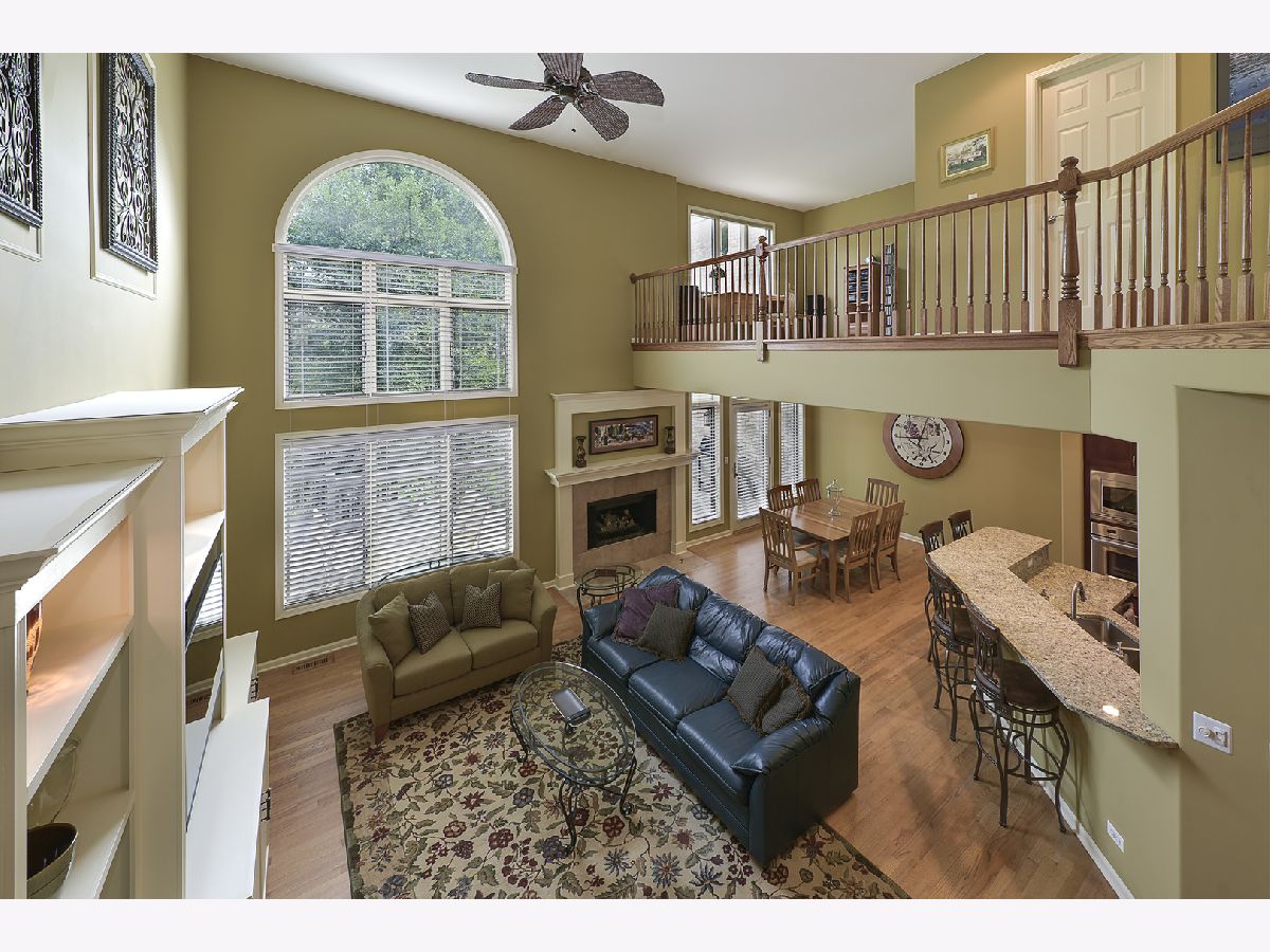 Outstanding premium naturescape location within the beautiful and sought after gated community of Maison Du Comte! This meticulously cared for townhome, boasting over 2,800 sq ft of living space, offers an abundance of desirable features. The main level includes an impressive great room with a soaring 2-story ceiling, ample windows allowing for natural light, and a gas fireplace. Hardwood floors run throughout the main level, and 9 foot ceilings create that more opulent feel. The generous size island kitchen includes rich cabinetry draped in granite countertops and stainless steel appliances. You will also find access to the large deck overlooking the serene setting beyond. This space can be enjoyed by yourself or while entertaining with guests. The primary suite is truly impressive. Beautiful windows rising up to the 14 foot ceiling is a real wow factor. The luxury primary bath includes a soaking tub, separate shower, water closet and double sink vanity. The secondary bedroom is connected to the hall bath and also offers its own more modest ceiling detail. The second level is completed by the large laundry room and spacious loft overlooking the great room. This space can serve as a home office, entertainment area or could even potentially be converted to a third bedroom. When you descend to the finished walk-out lower level, the quality and attention to detail follows you down. With above grade windows and sliding door access to the lower level patio, natural light flows into this space. The inviting family room area includes a second gas fireplace, built-in shelving and a rich wood wet bar. In addition you will also find a full bath and storage or workshop area. This community is just minutes away from both Fremd High School & Harper College. Easy access to I-90, O'Hare and Chicago. Convenient location for golfing, shopping, and restaurants. This extraordinary property is an easy choice!