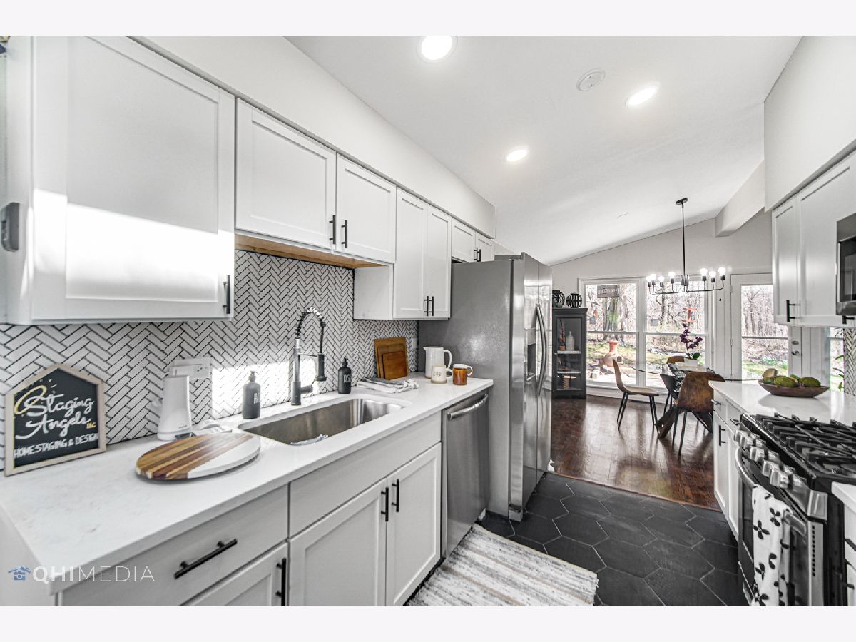 You won't want to miss this totally updated 4 bed, 3 bath tri-level home backing to greenspace. Attention to detail in every inch of this light-filled spacious home including an eat in kitchen with quartz counters, ss appliances, new cabinetry and skylights that continue throughout the main level into the dining room and sizeable living room, both with hardwood flooring. Upstairs is a large primary bedroom with attached onsuite full bath with custom tiled walk in shower, 2 additional bedrooms and another remodeled full bath. The lower English level has a family room, storage area, another bedroom and an attractively updated full bath with walk-in shower. Attached 2 car garage. Amazing location backing to Murphy Park, Sauk Trail and walking distance to schools. All new lighting, painting, appliances and flooring throughout