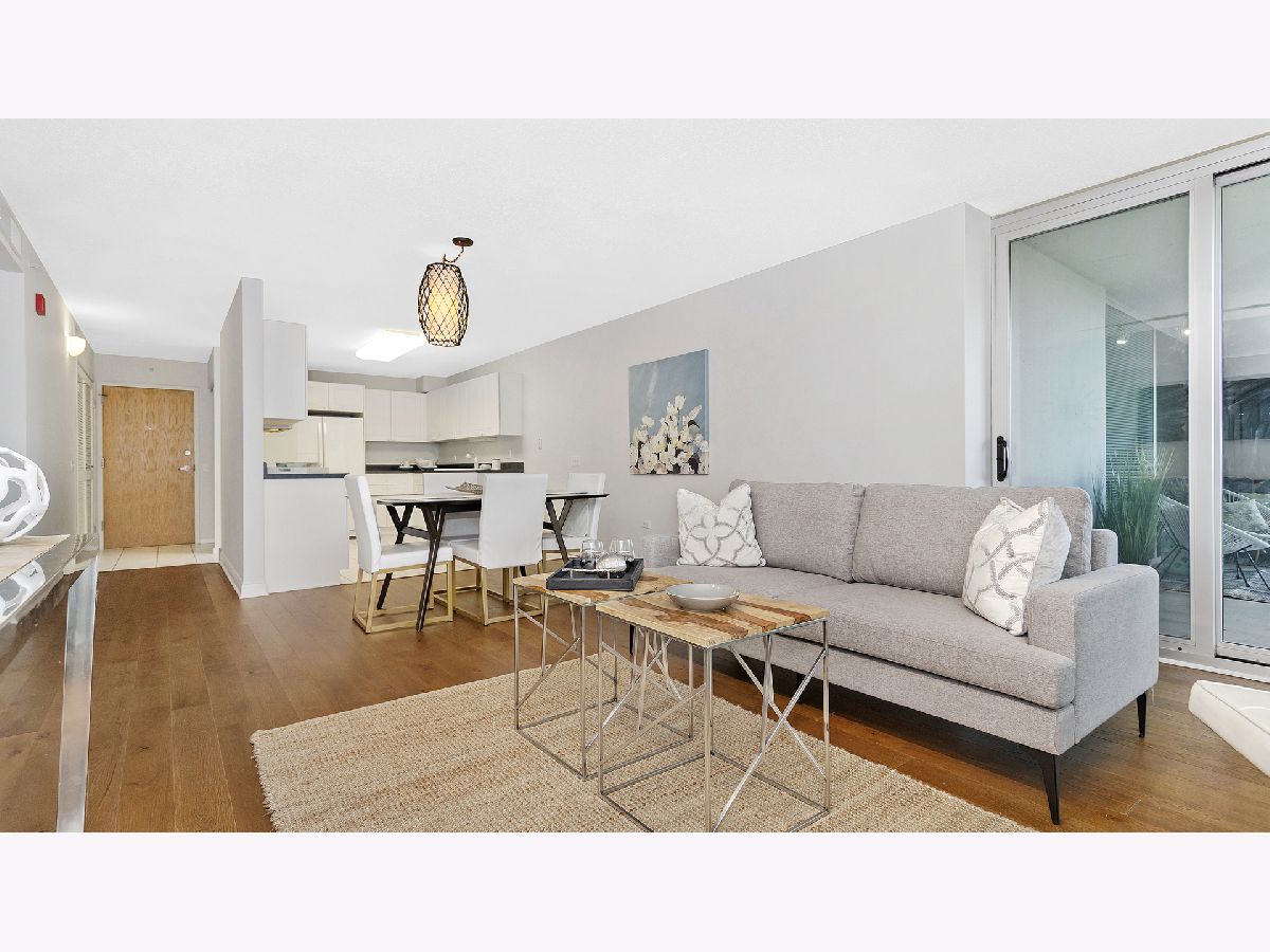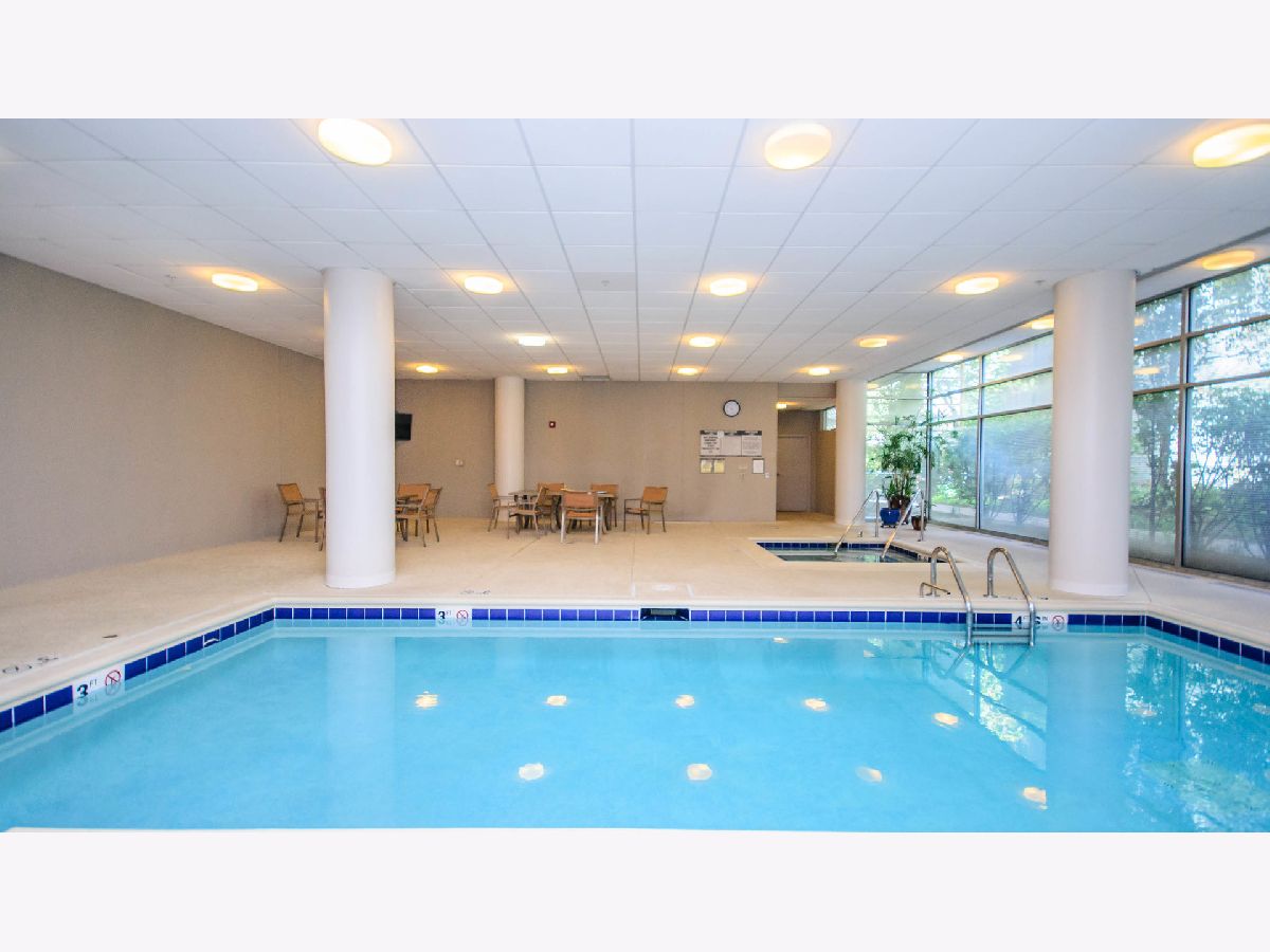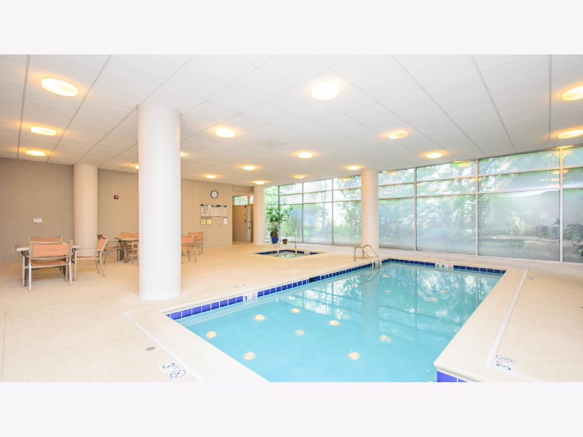 Spacious 2 bedroom, 2 bath condo in perfect downtown Evanston location! The open floor plan features a large living dining room which opens to the amazing, room sized balcony (22x8). Generous eat-in kitchen with ample cabinet and counterspace. Oversized primary suite with large walk-in closet and en-suite bathroom. 2nd bedroom and full bathroom. Newer side by side washer/dryer. Garage parking! Building amenities include heated indoor pool, hot tub and exercise room. Assessments include heat, water, gas & hi-speed internet. Fabulous location-step out your door to all downtown Evanston offers, including shops, both Metra and "el" train and restaurants. Walk to Lake Michigan, parks, library post office, Northwestern University and grocery stores.