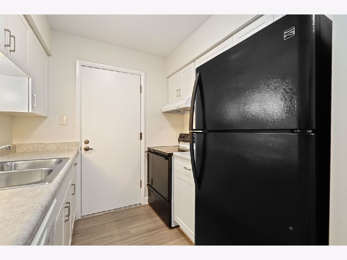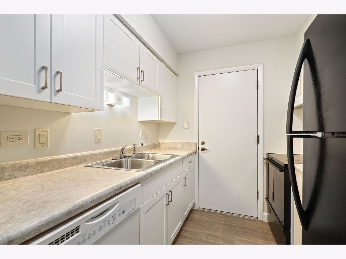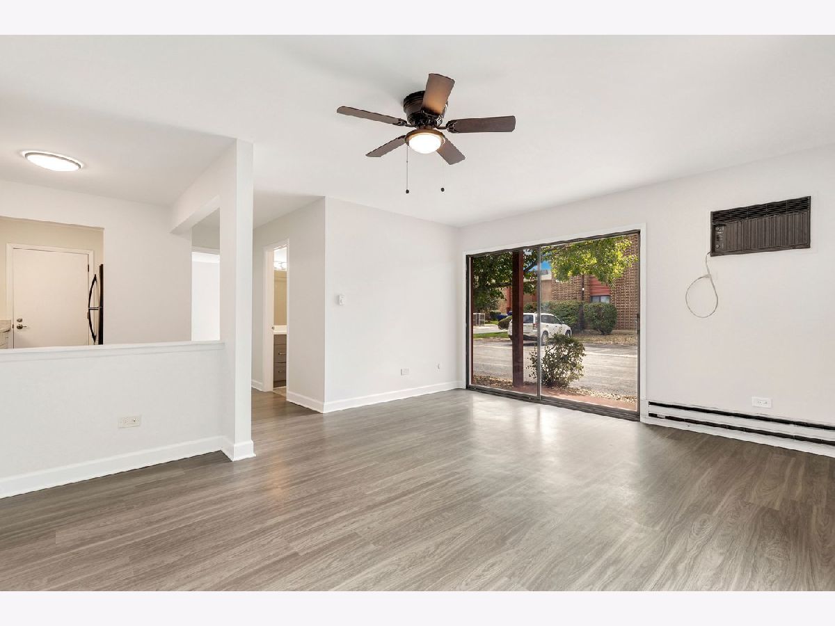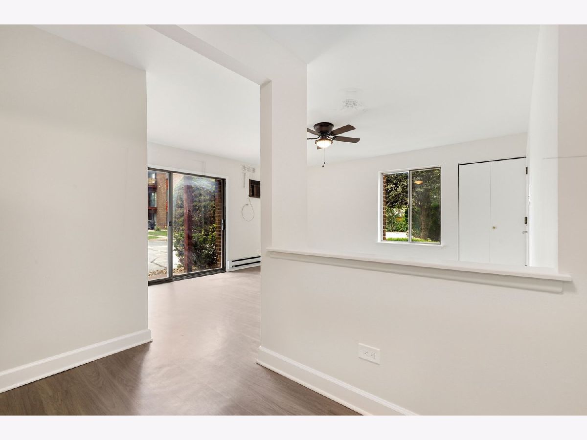 Beautifully updated FIRST FLOOR condo. No stairs! Move in ready with NOTHING to do! Condo was freshly painted with new flooring! Spacious, open unit with large living room and sliding patio door to private patio with assigned parking spot just steps away. ALL NEW KITCHEN! Kitchen was updated from drywall, electric, flooring, cabinets, countertops, sink and disposal. BATHROOM UPDATED. Location is great with party room and outdoor pool for residents. Close to all shopping, interstate and Metra. Water and garbage included in association fees. Common Washer Dryer on same level. Extra . storage is walk up attic space which you access on 3rd floor by a pull down ladder. These condos are highly desirable and will not last long! A preferred lender offers a reduced interest rate for this listing. Can rent after owner occupancy for 3 year term.