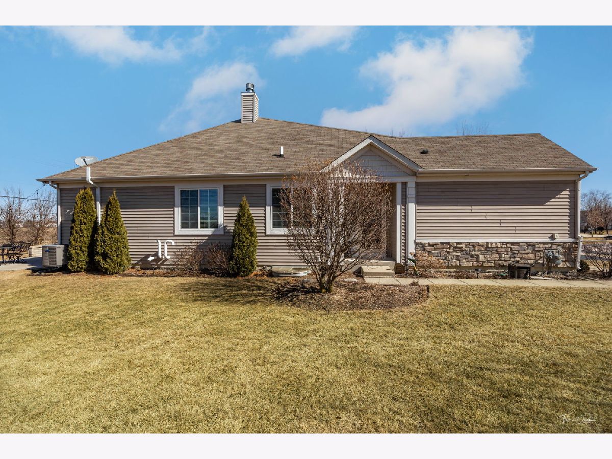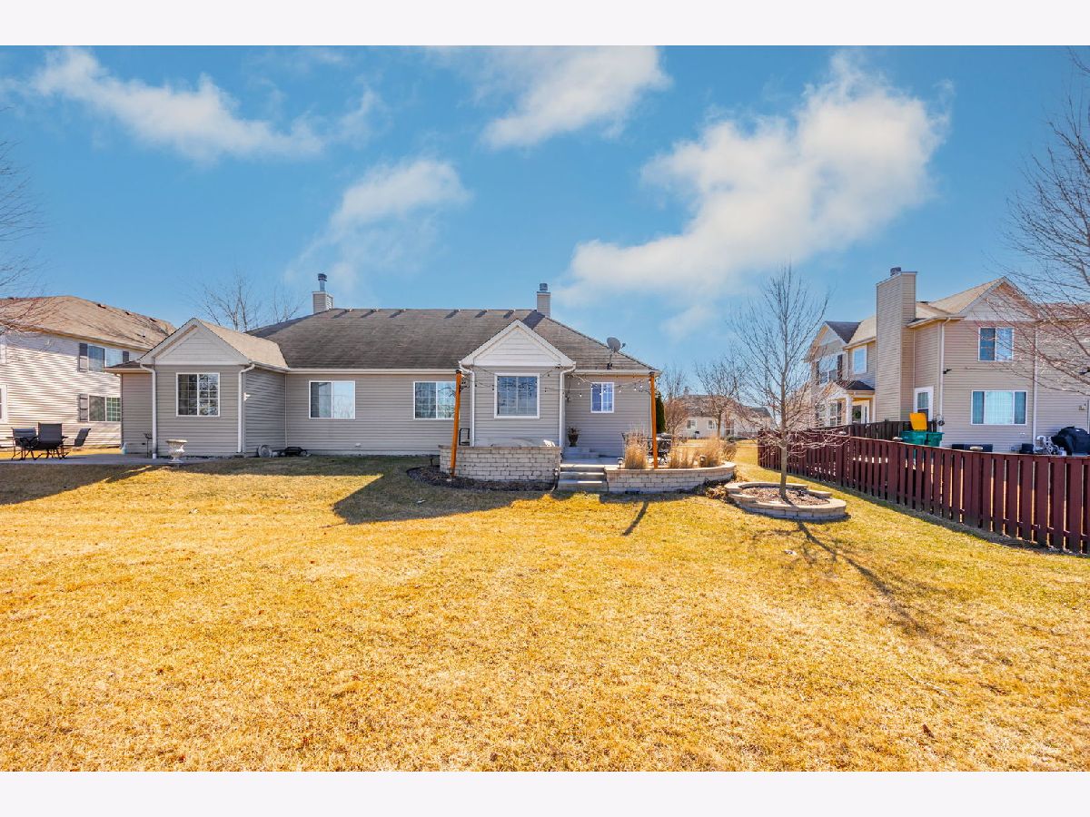 Stunning 3-bedroom, 2-bath ranch duplex with a finished basement and maintenance-free living! This move-in ready home has been beautifully updated throughout and offers lawn care and snow removal included for stress-free living. The kitchen features maple cabinets, quartz countertops, recessed lighting, newer appliances, and a generous eating area. A sliding glass door leads to a huge concrete patio, perfect for entertaining or simply relaxing while watching the beautiful sunsets. The yard is beautifully landscaped, adding to the home's charm. The primary suite boasts a vaulted ceiling, walk-in closet, and an updated bath with a separate shower and soaking tub. The laundry room has been remodeled with added cabinetry and a sink for extra convenience. The living room features a cozy fireplace, while the large dining room offers space for a hutch. The finished basement includes two large rec areas, a spacious 3rd bedroom with a huge walk-in closet, and plenty of storage. With nothing to do but move in and start enjoying, this home is a must-see!
