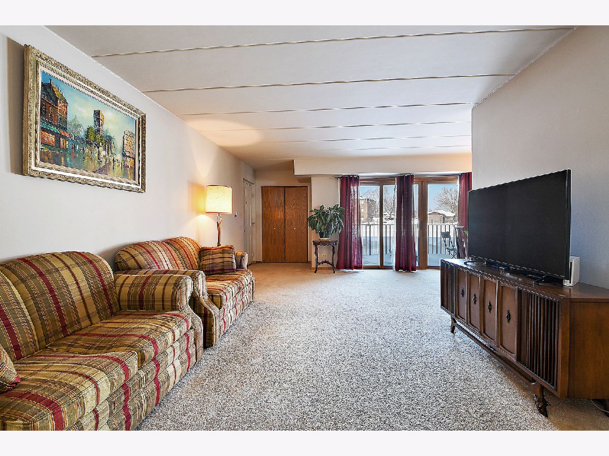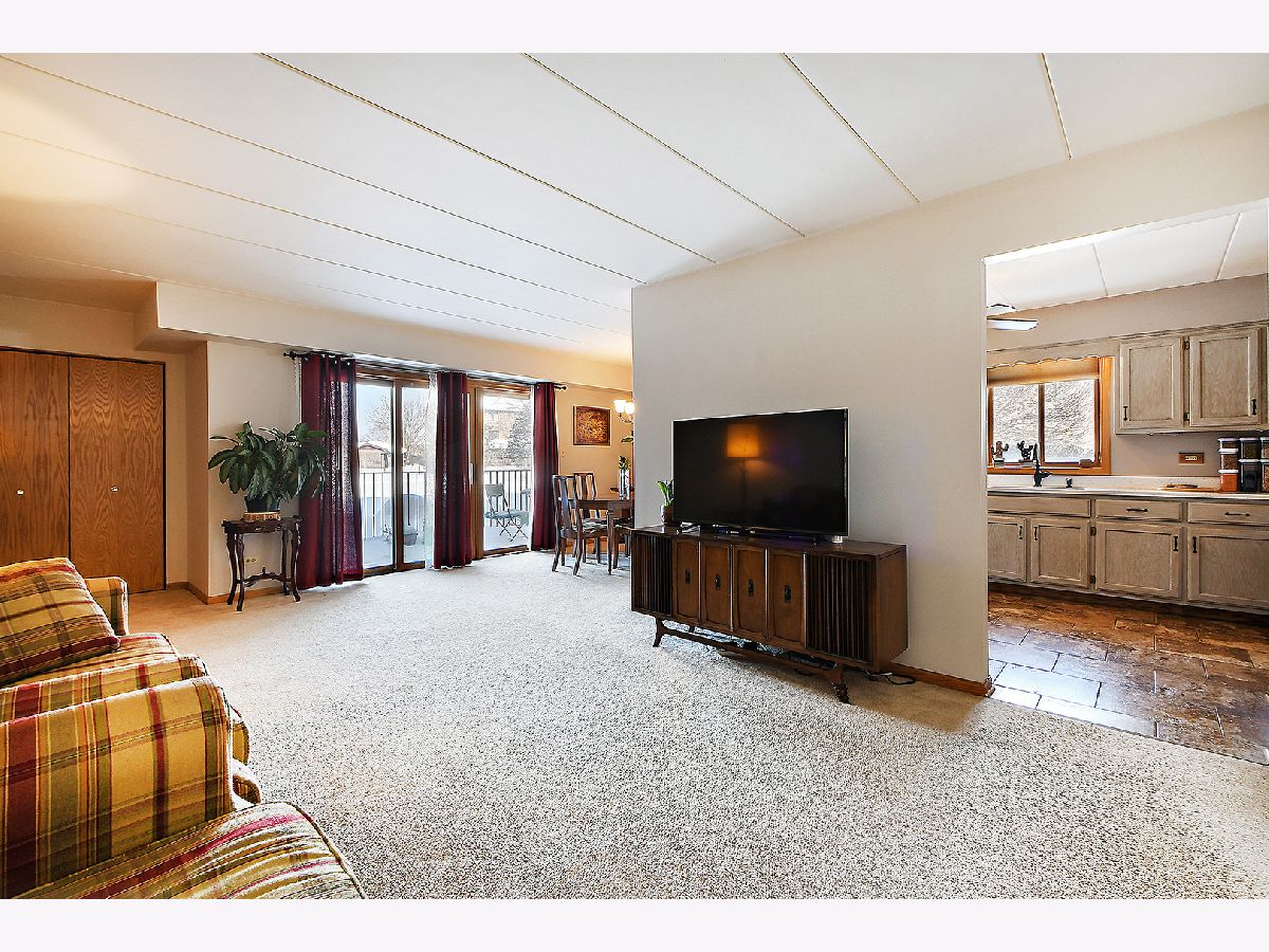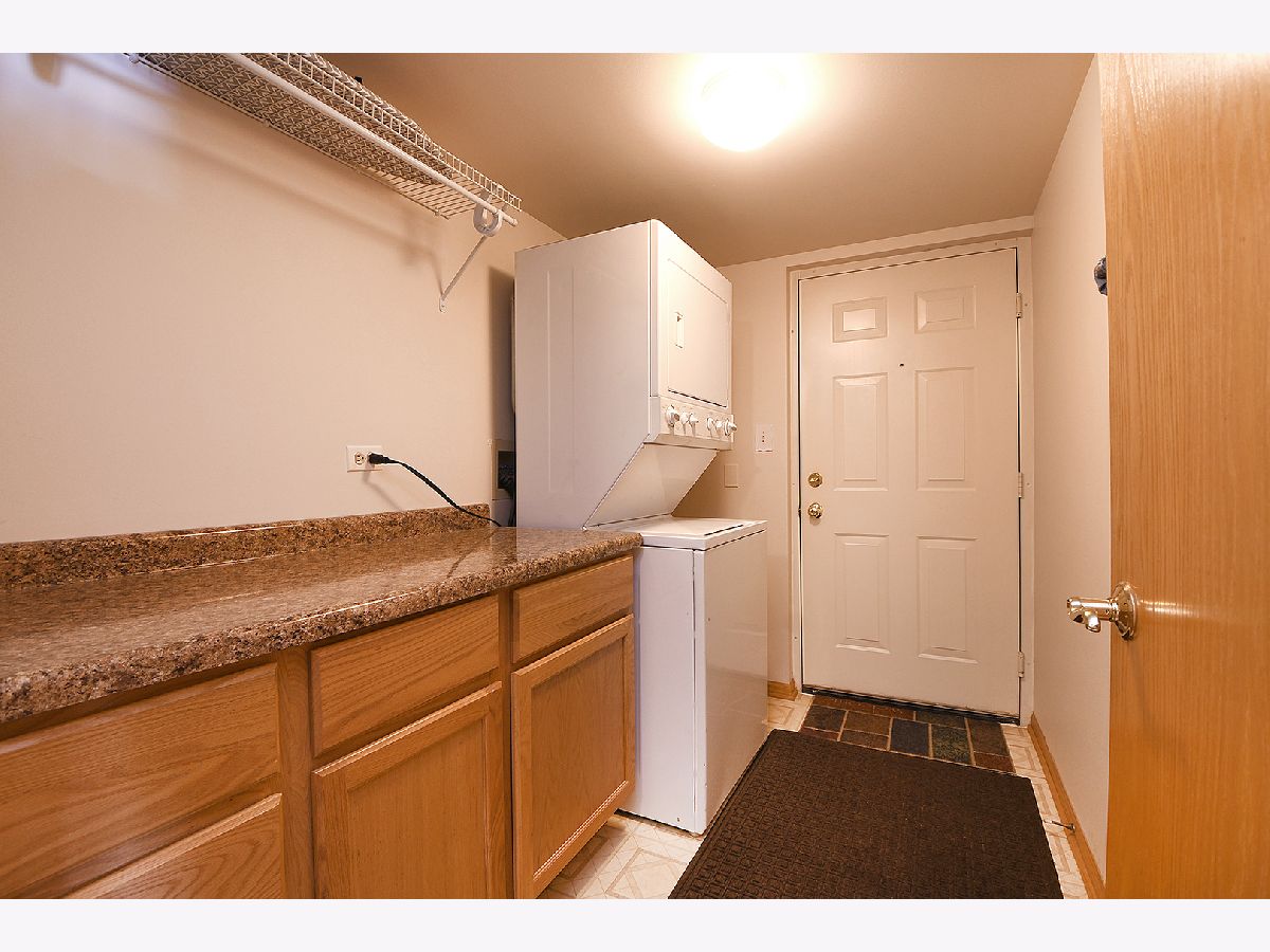 Beautiful 1st Floor 2 Bedroom, 2 Bath End Unit Condo in Quiet Building with Rarely found 2 Car Garage located in Orland Park. Features include Large Welcoming Living Room, Separate Dining Area, Eat-in Kitchen with Quartz Countertops, Breakfast Bar & Plenty of Cabinet Space and 2 Large Bedrooms with a Private Master Full Bath. The Sliding Glass door from the Living Room leads to a Large Private Patio with Views of the Spacious Landscaped Courtyard and Mature Trees. Other features include Flexicore Ceilings, Spacious 2 Car Garage for extra storage space, New Garage Door and Opener (2019), In-unit Laundry Room, Freshly Painted (2020), Newer A/C (2019), Newer Dishwasher and Fridge (2019), Updated Bath, and Nest Thermostat. This Well-Maintained building has a New Roof and Repaved Driveway, both in 2020. Conveniently Located walking distance to Public Transportation, Restaurants, Shopping and Bank.