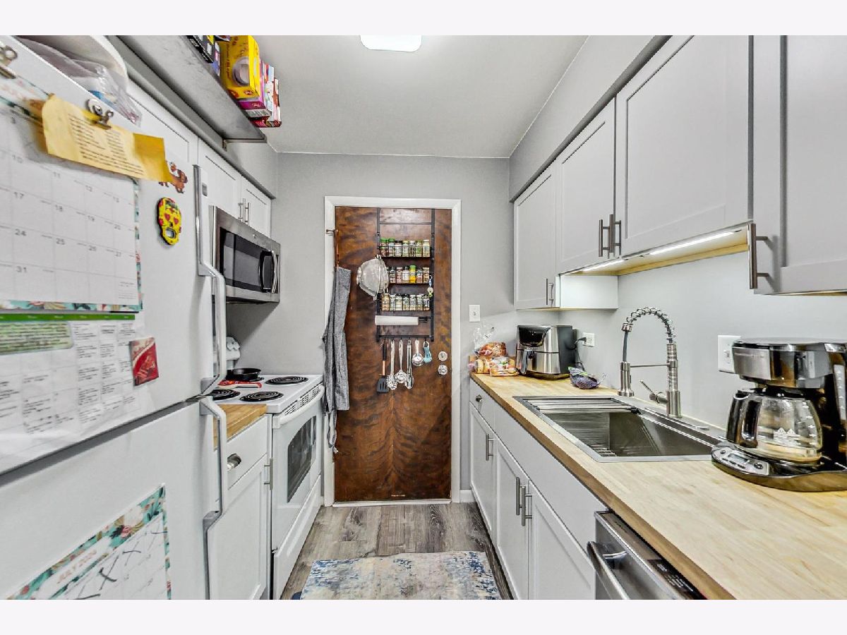 Welcome to this bright and spacious one bedroom/one bath condo in a prime Oak Forest location! The unit has been tastefully updated with all new floors, a completely remodeled kitchen, new trim, and fresh insulation between units. The kitchen boasts new cabinetry, sink, and butcher block countertops. Plush soft carpeting has been added to the cozy bedroom which also features ample closet space. Enjoy meals and entertaining with the separate dining space. Front and back doors have been updated with new hardware. The unit includes attic storage space and an assigned exterior parking space. The property includes access to the fantastic outdoor pool. Coin laundry is readily available on building premises. Schedule your private showing before it's gone!