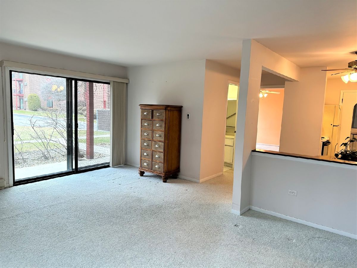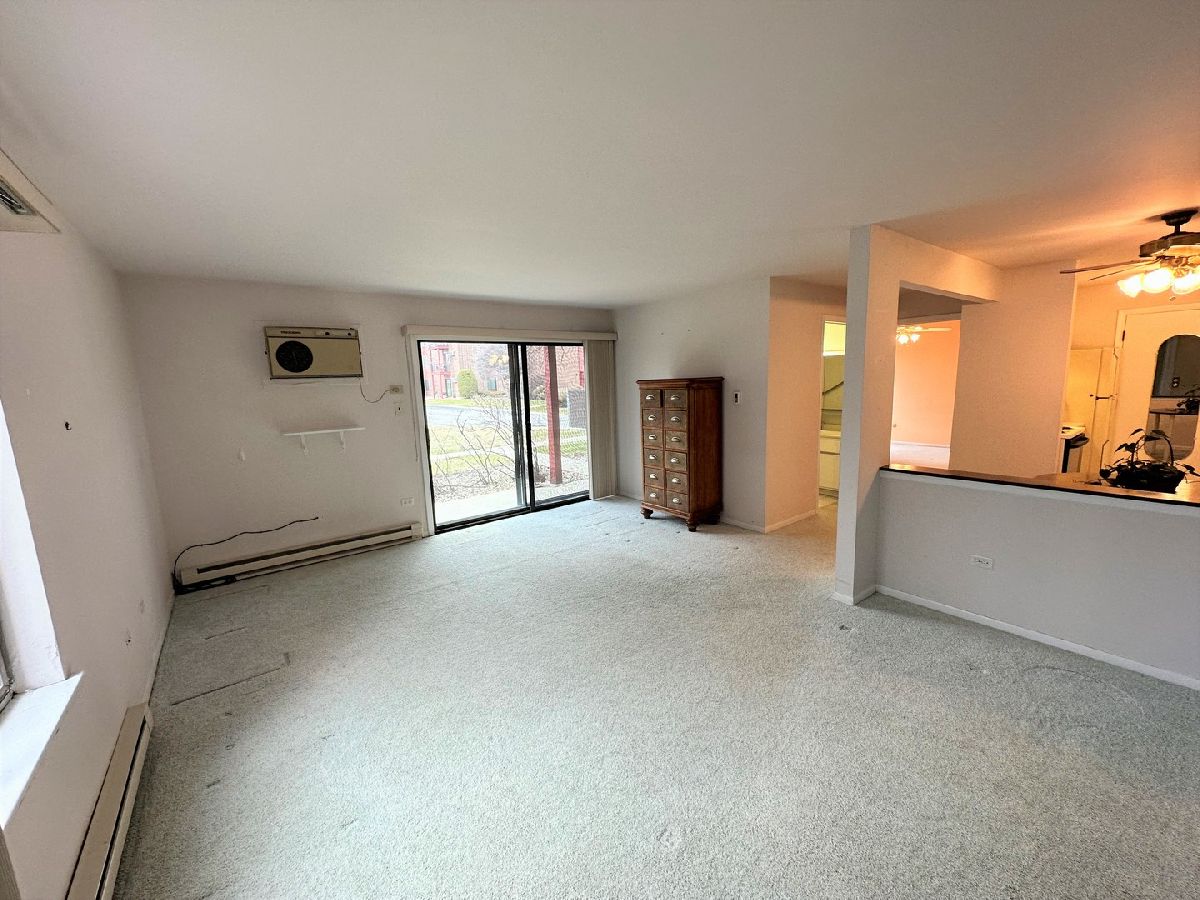 Great location for this super convenient 1st floor unit! No stairs! This condo offers an efficient galley kitchen and an open quaint dining room. The living room offers plenty of space and sliding doors to your own patio. Bedroom is very spacious and has ample closet space with mirrored doors. Convenient grab bars in bathroom for safety if needed. Common first floor laundry room just steps from the unit. Relax by the pool this summer when the weather heats up! Water included in assessments as well as pool and clubhouse. Electric baseboard heat. Storage space in attic with pull down stairs in common are hallway on 2nd floor. No rentals are allowed. Not FHA approved.