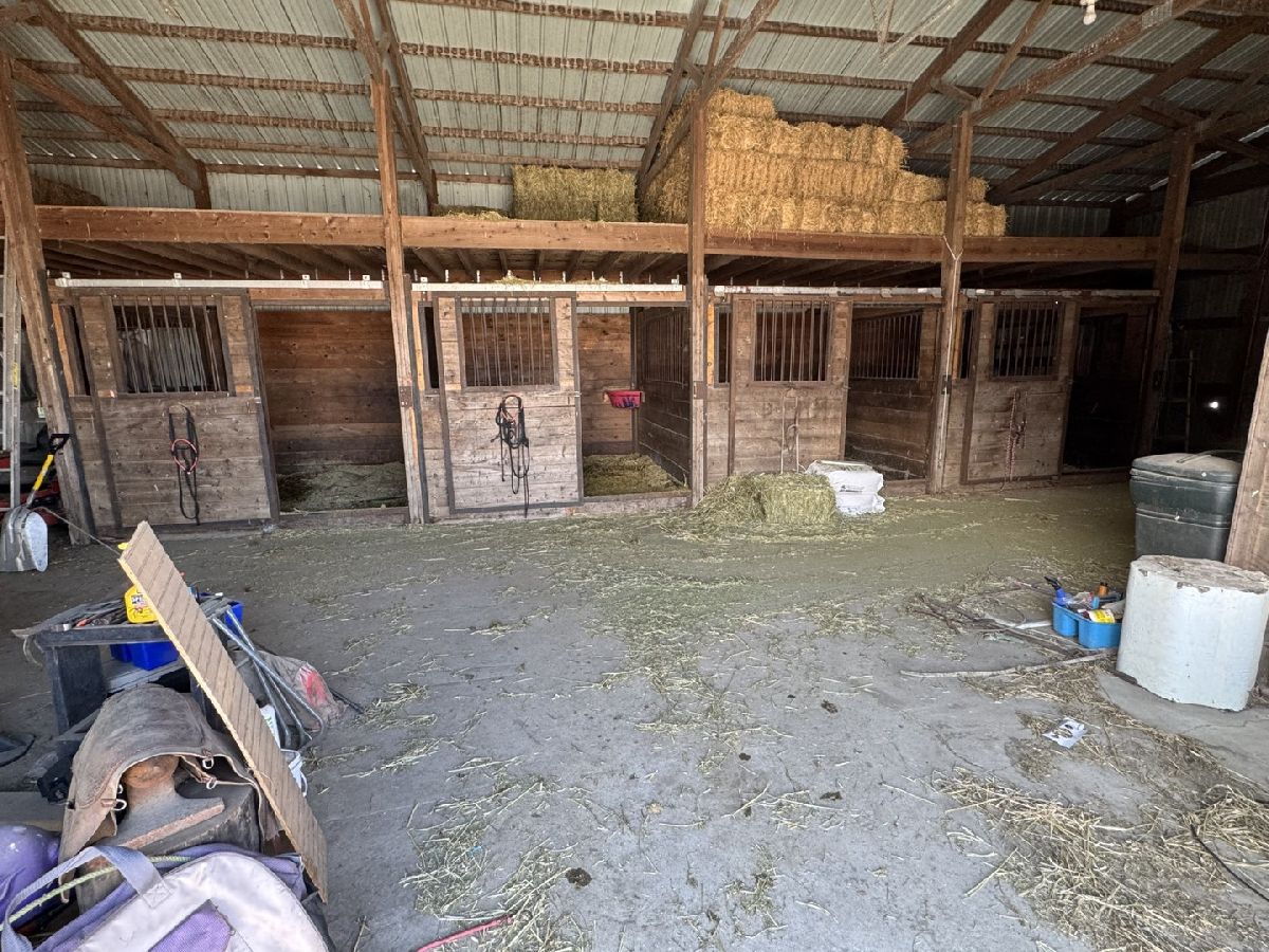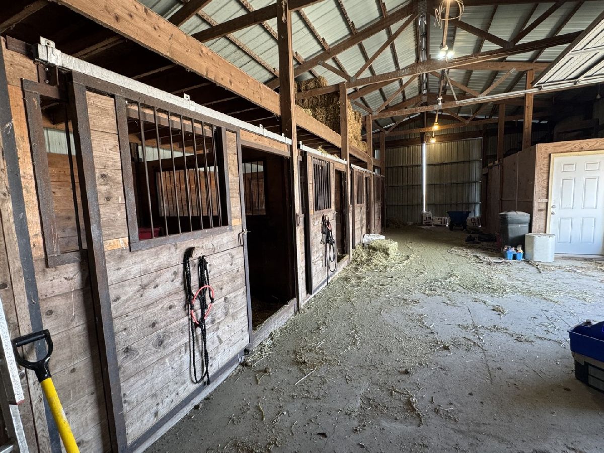 Discover the charm of rural living with this spacious 5-bedroom, country house nestled amidst 4 scenic acres. Step inside to a cozy galley kitchen equipped with new refrigerator, stove, and a reverse osmosis system. The dining room awaits family dinners, while a versatile room on the first floor can serve as either a bedroom or an office. Washer and dryer and freezer in basement included. (windows 2022) (roof 2024)Outdoor amenities, feature 2-car detached garage with a recently updated roof in 2021, a separate Gambrel studio built in 2017 complete with heating, air conditioning, and plumbing-ideal for an artist's retreat or a private workshop. Horse enthusiasts will be thrilled with the 30 X 60 horse barn/shed built 1999. This structure includes a concrete floor, a workshop, four horse stalls (stalls can be easily removed) an insulated tack room, ample loft space for hay and storage, 10' overhead door and two 14' sliding doors. 1000-gallon propane tank owned. Red mobile corral fencing does not stay. Please remove shoes on porch before entering home. Discover your dream country retreat!