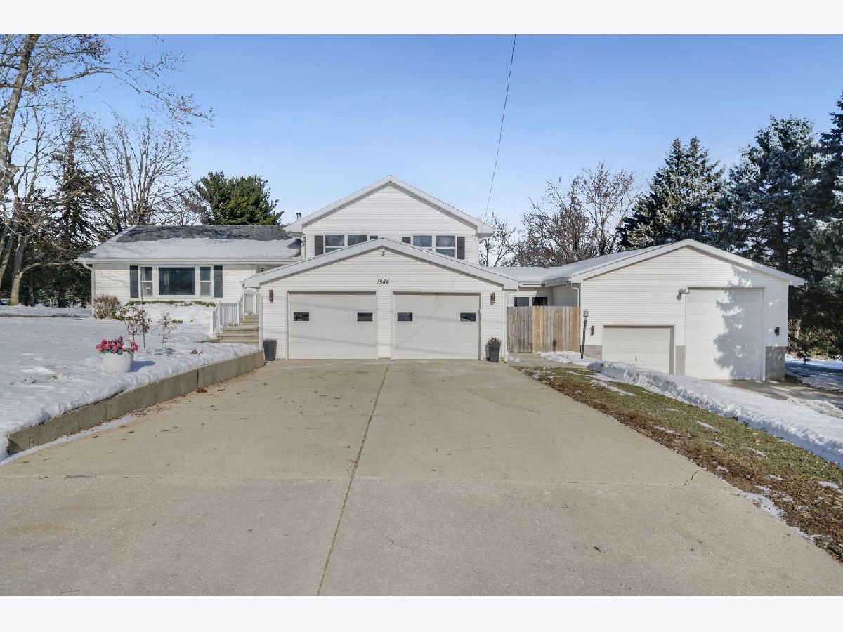 Set on a 1 acre lot, this well maintained 4 bedroom, 2.5 bath home offers the perfect blend of space, privacy, and modern updates, located just north of Freeport on a quiet rural road. Thoughtfully designed for both everyday living and entertaining, the home features multiple living spaces and impressive upgrades through out. The updated kitchen boasts durable LVT flooring, new appliances, and a convenient eat in area. It opens seamlessly to the dining room and main living room, creating a welcoming, open flow. Sliding doors lead to the expansive backyard, where you'll find numerous recent improvements ideal for outdoor enjoyment. Upstairs offers three bedrooms and a full bathroom. The walk out lower level serves as a private retreat, with the primary bedroom with an en suite bathroom, along with a bonus room complete with a large wet bar. Perfect for entertaining or hosting gatherings. Recent updates include a new roof (2020) and new attic insulation (2025) for enhanced energy efficiency. The attached 2 car garage includes leads to rec room and large mudroom connected to the oversized garage and workshop area with an impressive 14 foot door, ideal for hobbyists or extra storage. Both garages are heated for year round comfort. Additional highlights include a fenced in dog area, backyard 1.5 stall garage, composite deck with aluminum railing completed this year, hot tub hookup, and programmable LED outdoor lighting, no need to hang Christmas lights. The home also features a new 200 amp electrical service panel, 240 volt wiring to the smaller garage for electric vehicle charging, additional backyard electrical service, and hot water run to the backyard with a spigot conveniently located on the deck. Each floor has its own heat zone for added comfort and efficiency. With extensive updates already completed and a peaceful 1 acre setting, this move in ready home offers exceptional value and versatility.
